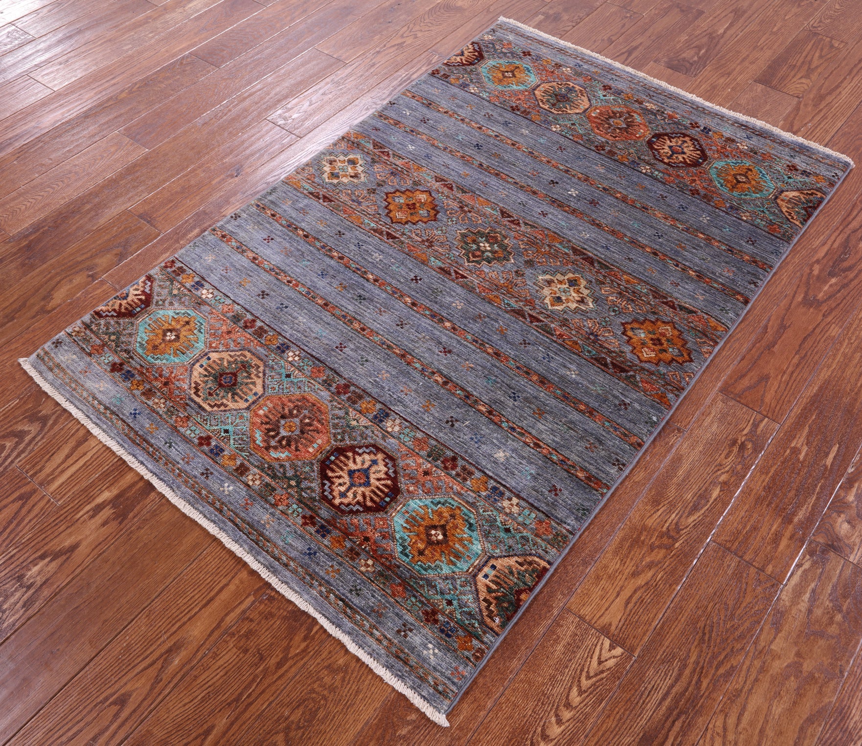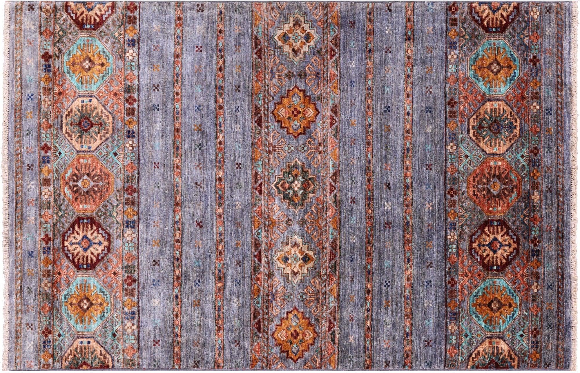 Grey Super Kazak Khorjin Hand Knotted Rug 3' 4" X 5' 1" - Q17797