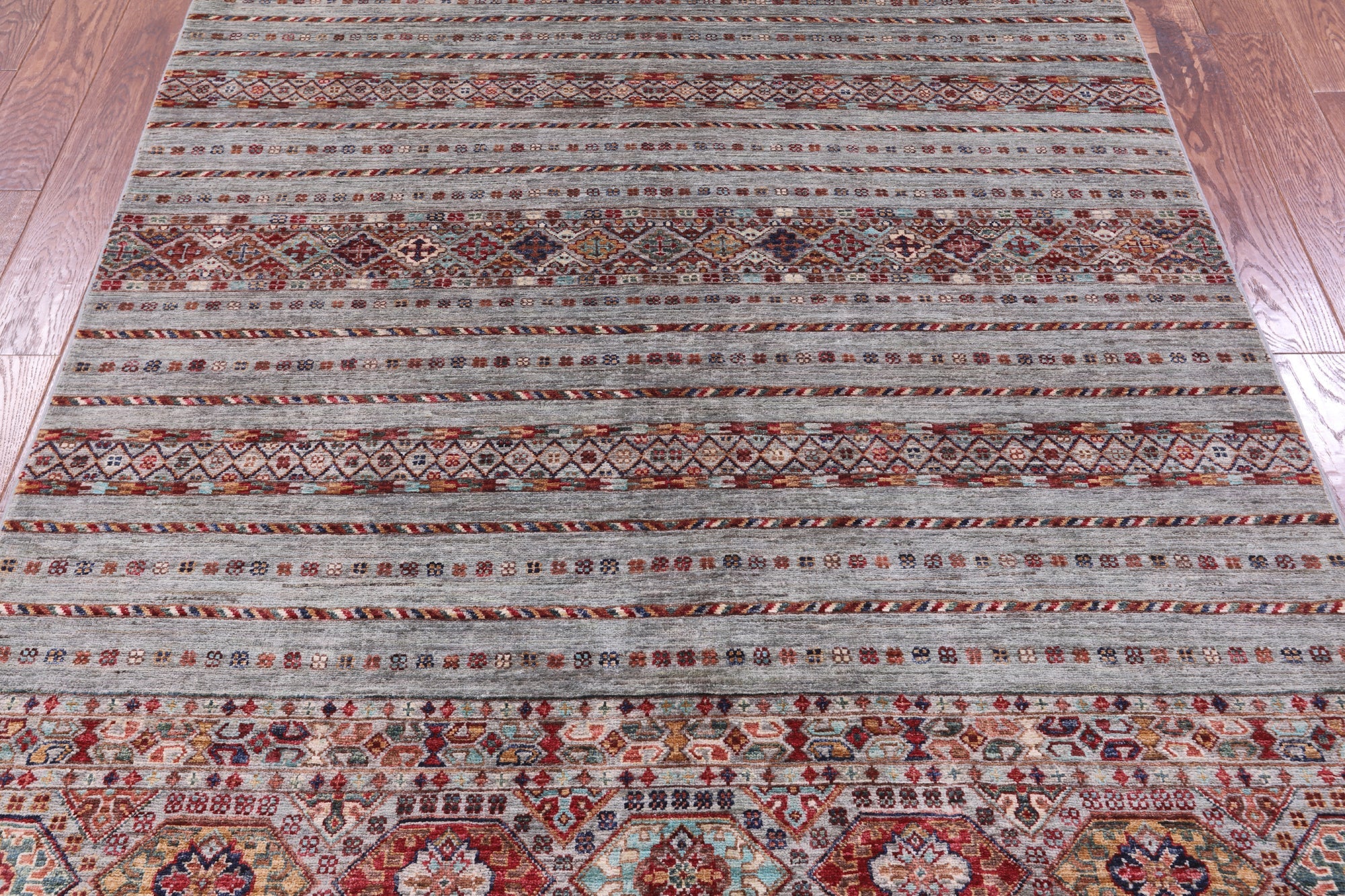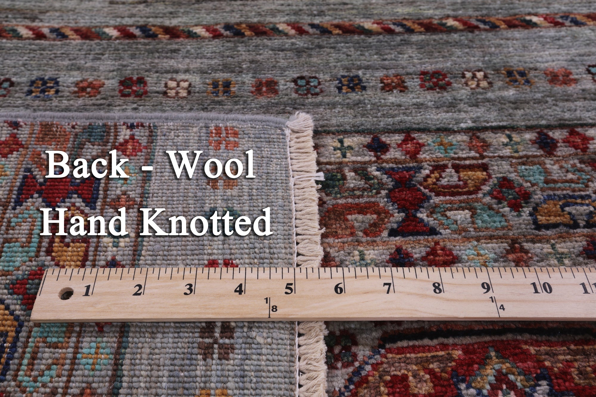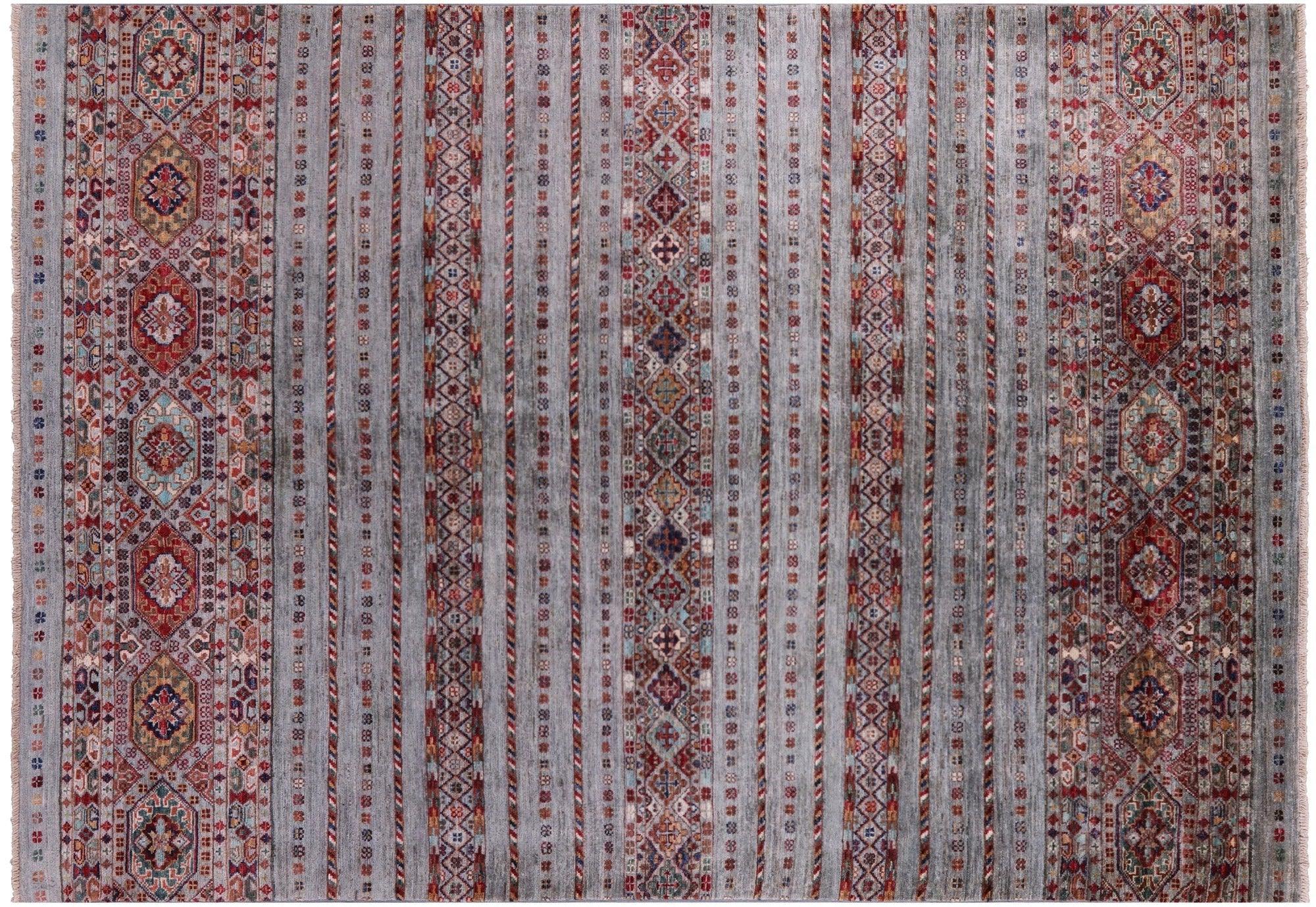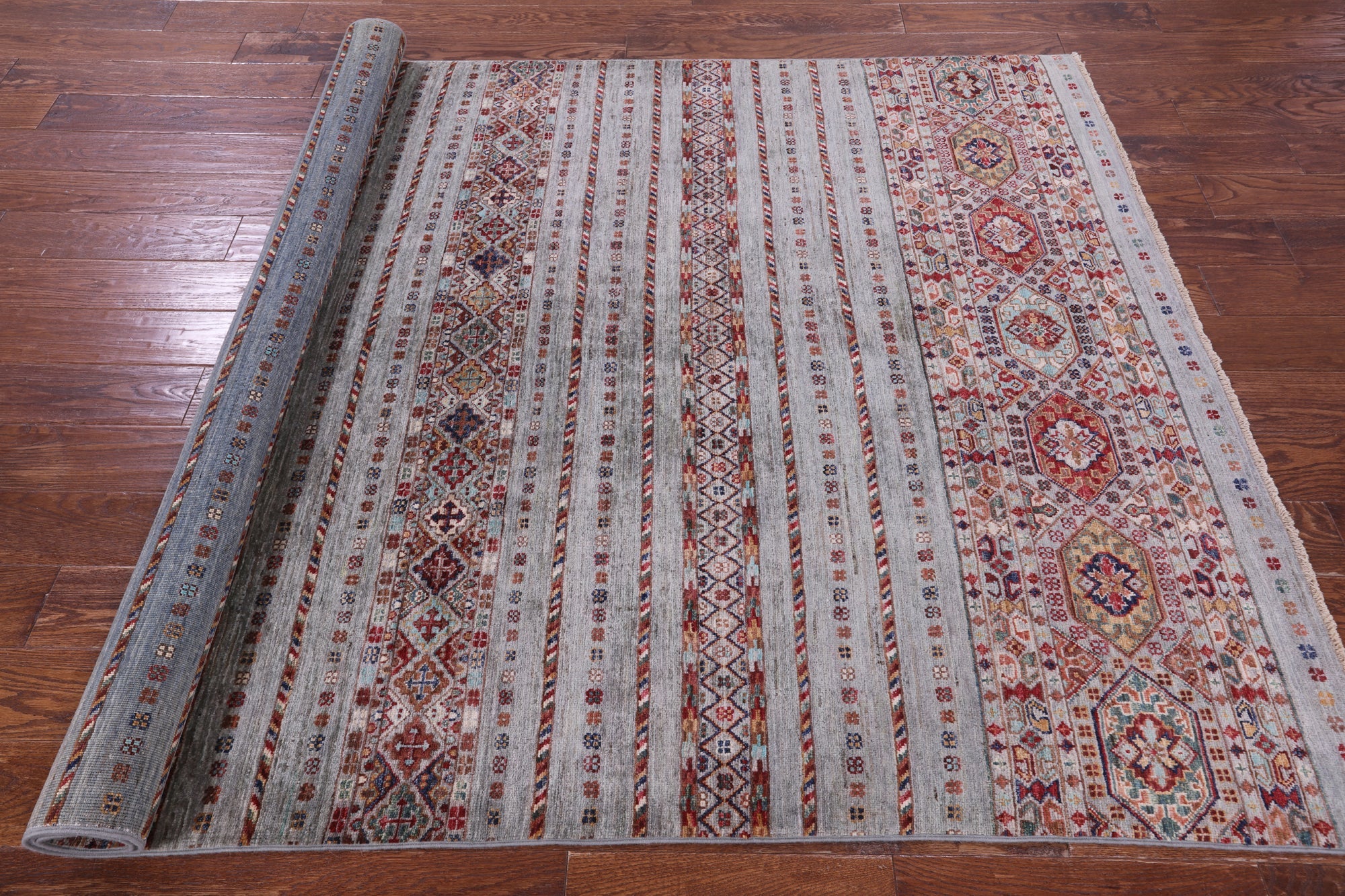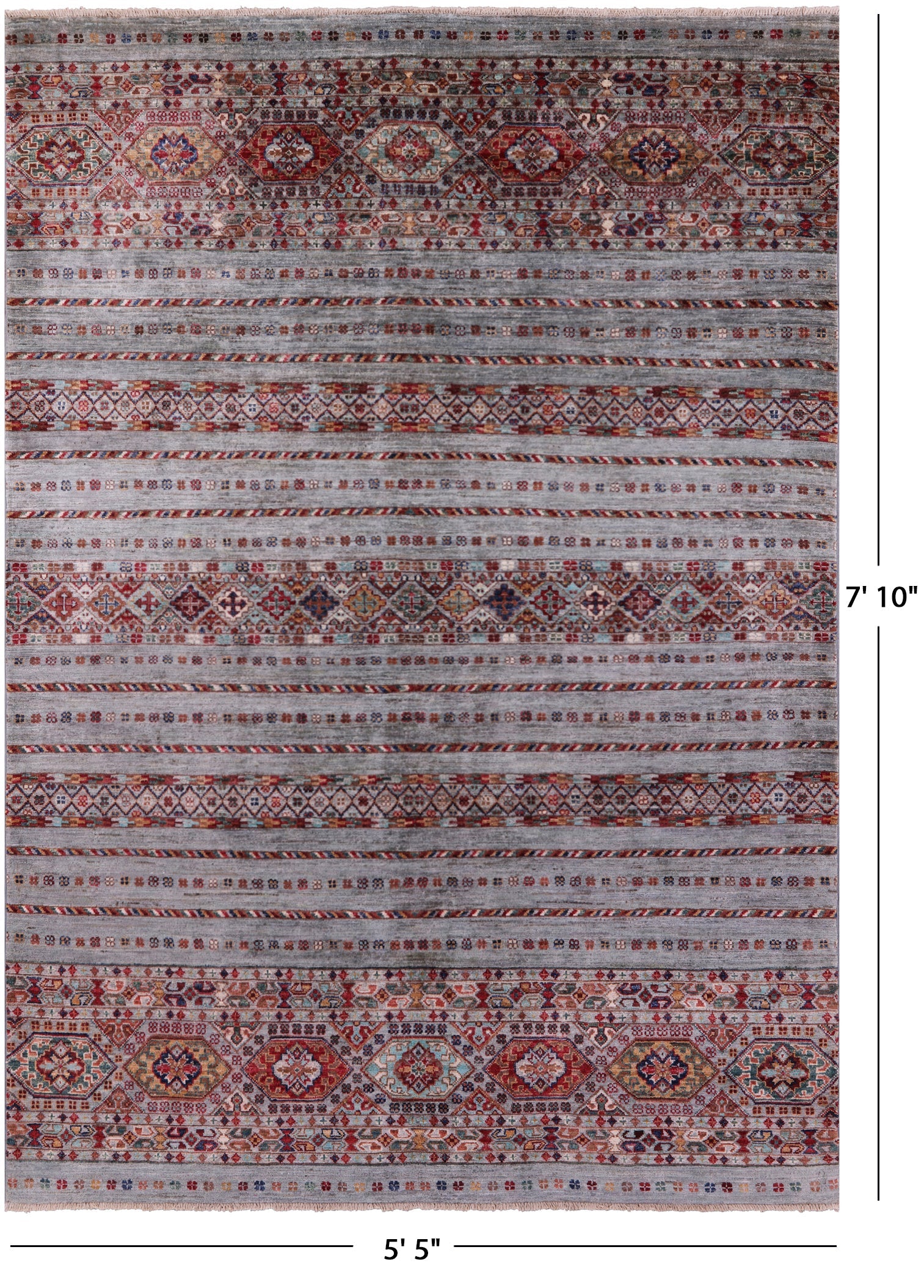 Grey 5' 5" X 7' 10" Super Kazak Khorjin Hand-Knotted Wool Rug - Q20621