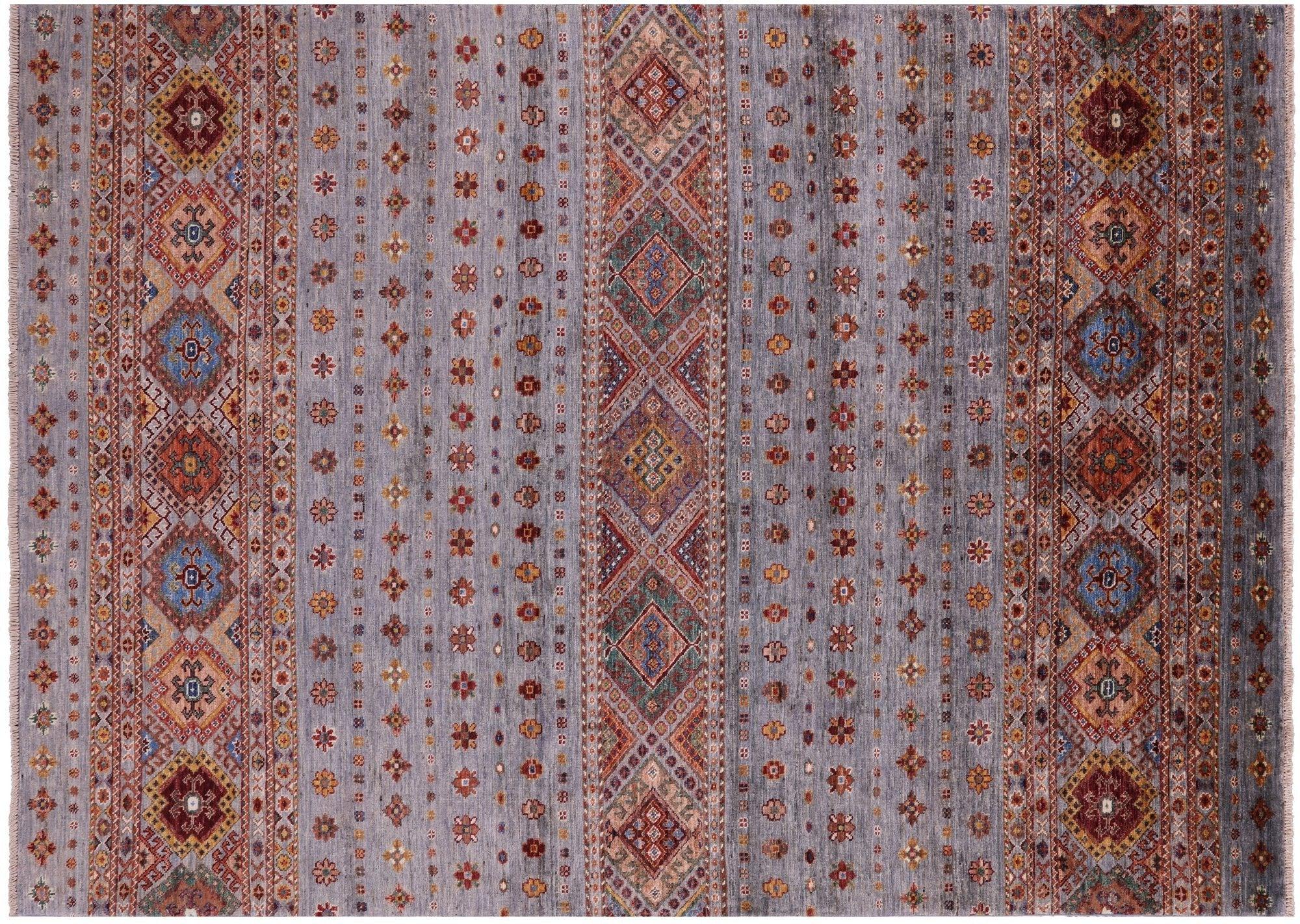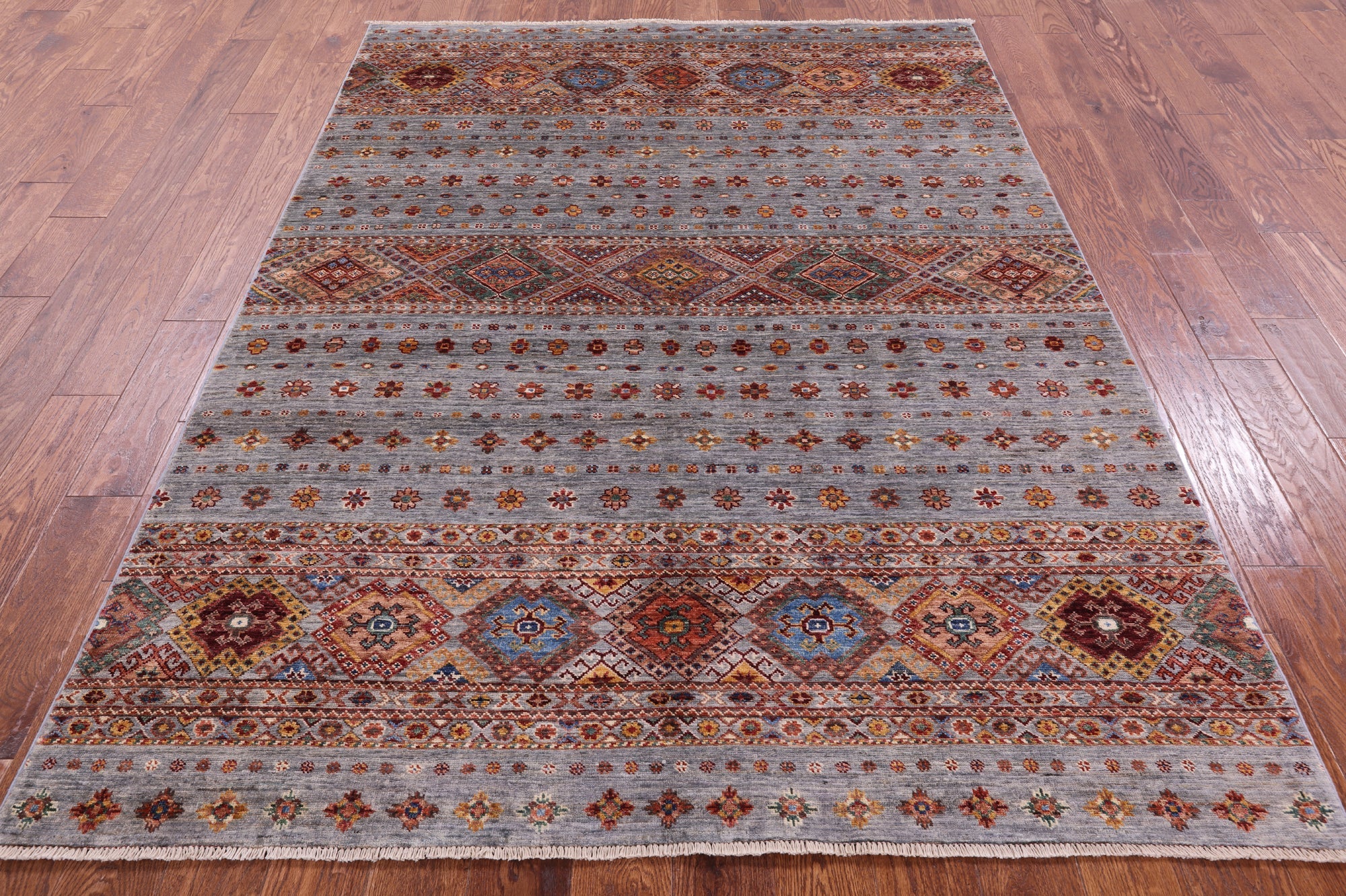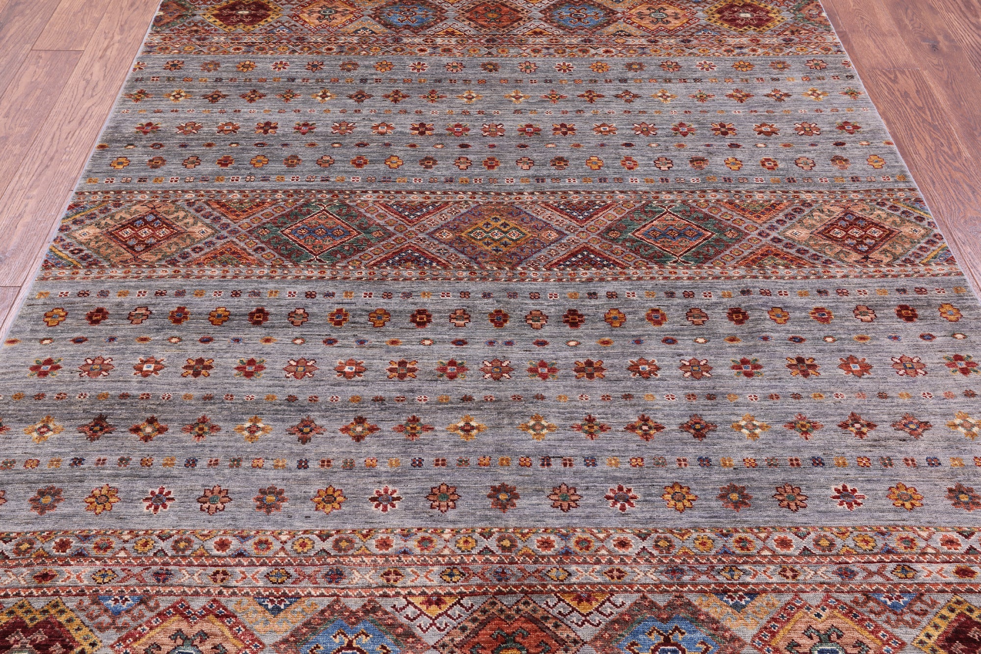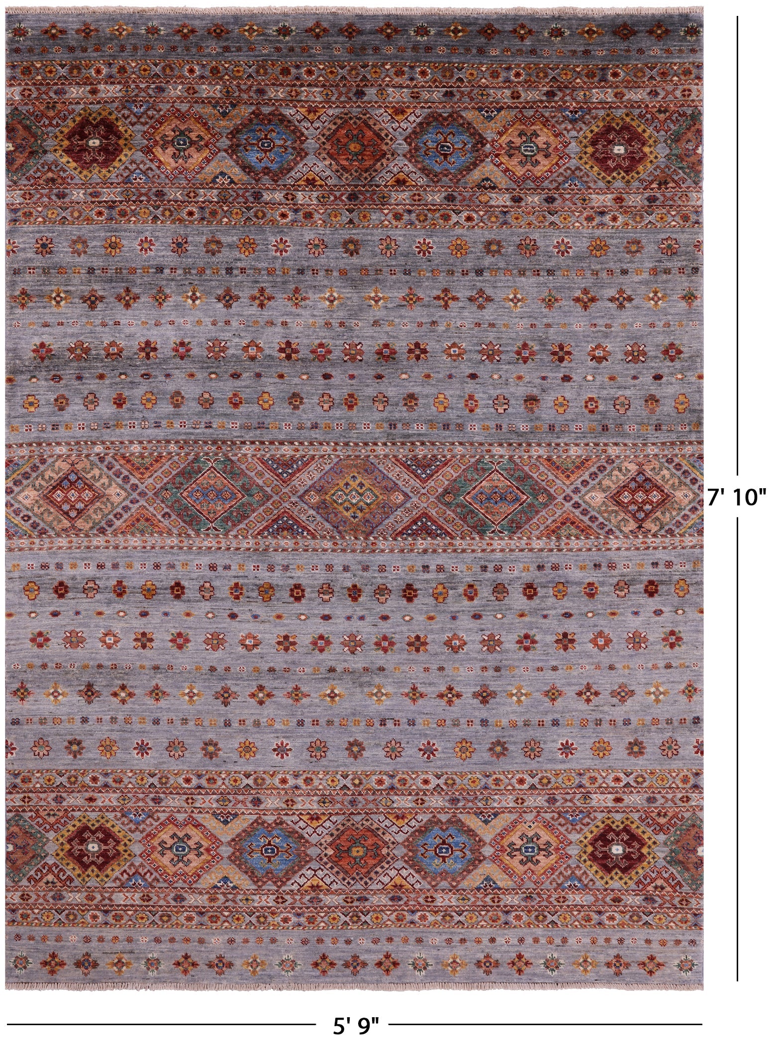 Grey Super Kazak Khorjin Handmade Wool Rug 5' 9" X 7' 10" - Q12387