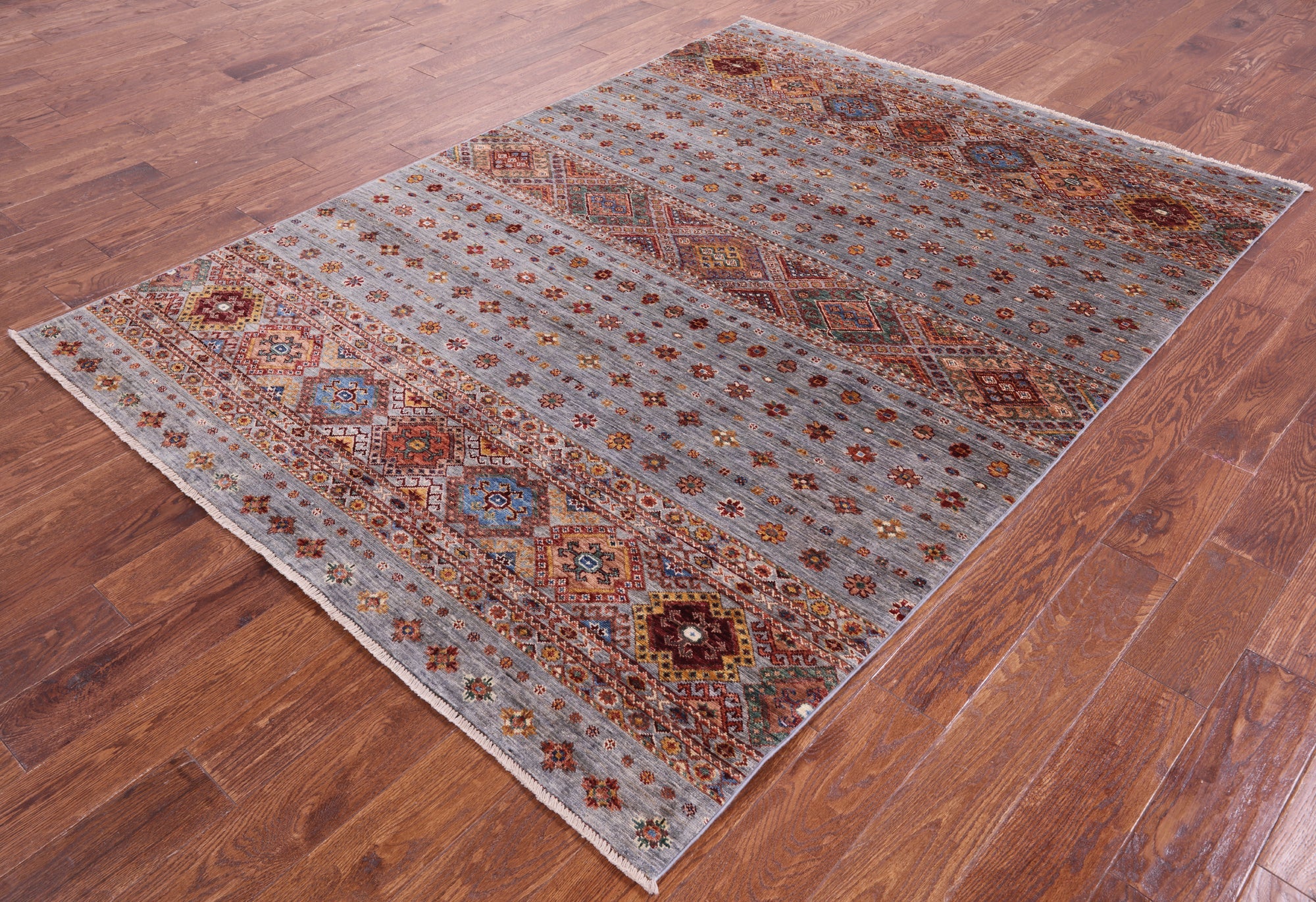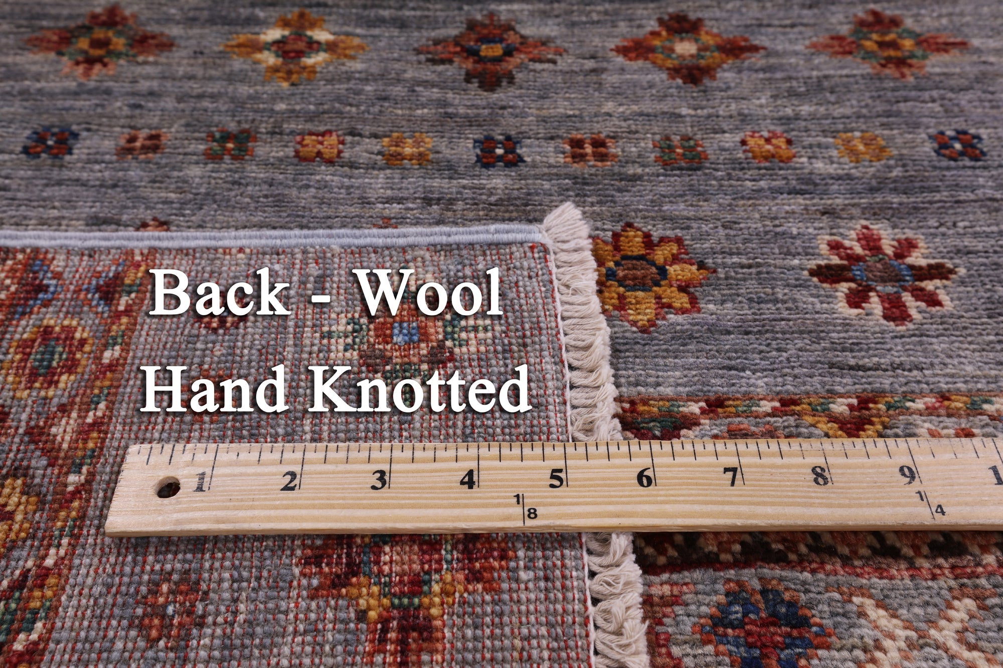 Grey Super Kazak Khorjin Handmade Wool Rug 5' 9" X 7' 10" - Q12387 is backordered and will ship as soon as it is back in stock.