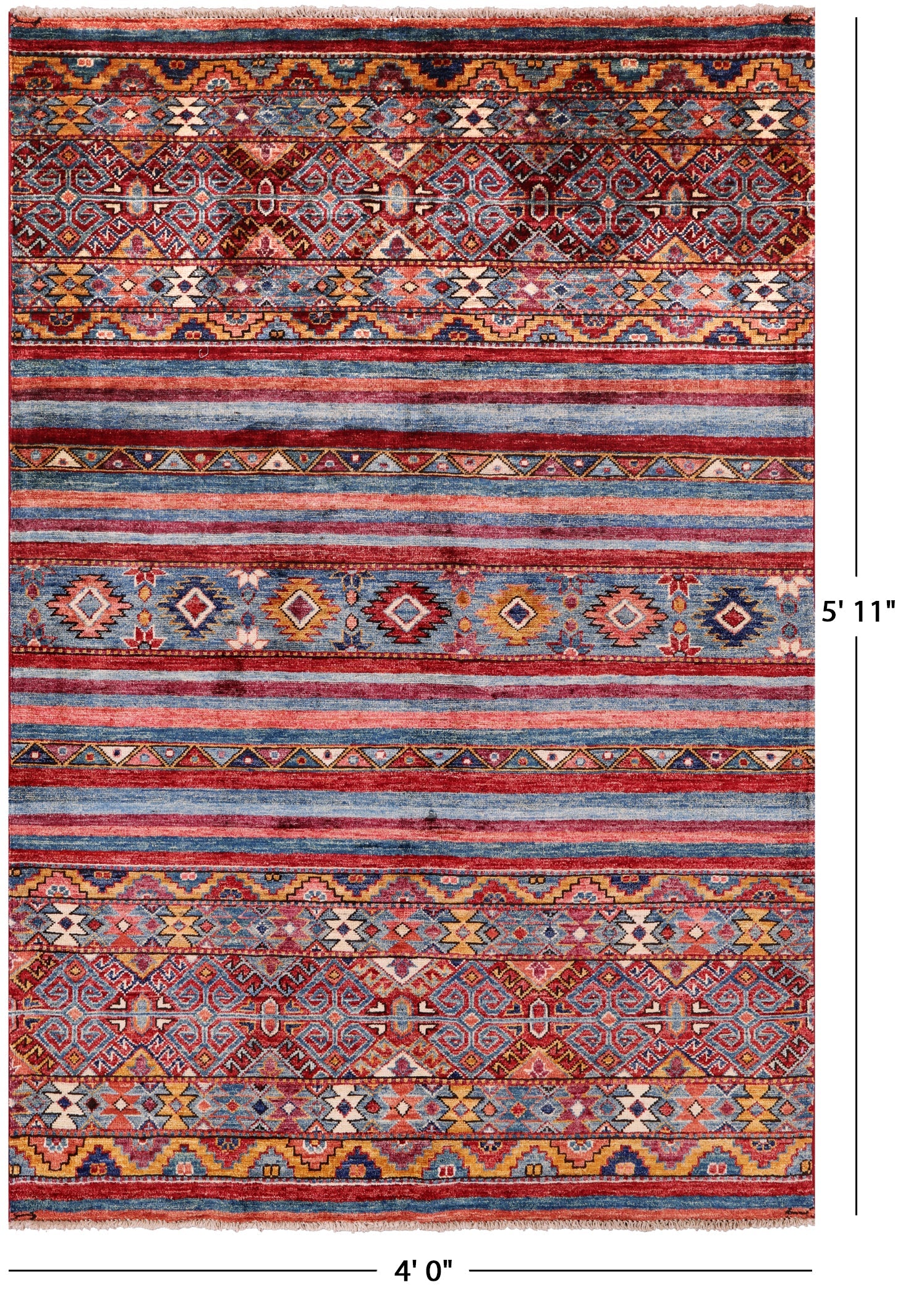 Hand-Knotted Khorjin Super Kazak Rug 4' 0" X 5' 11" - Q14017