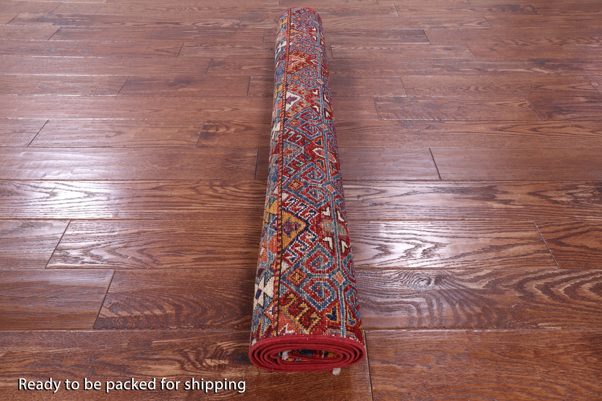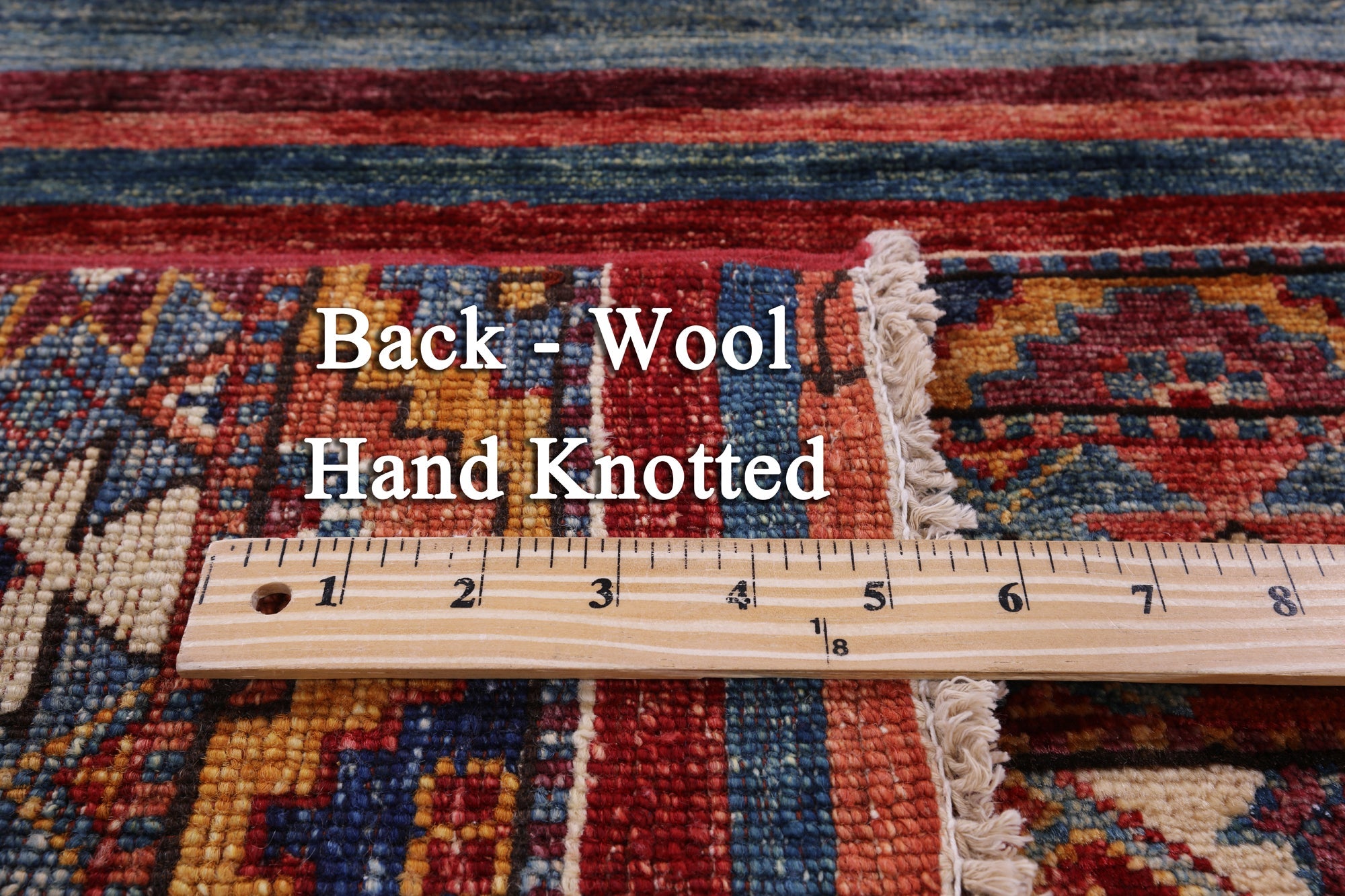 Hand-Knotted Khorjin Super Kazak Rug 4' 0" X 5' 11" - Q14017 is backordered and will ship as soon as it is back in stock.