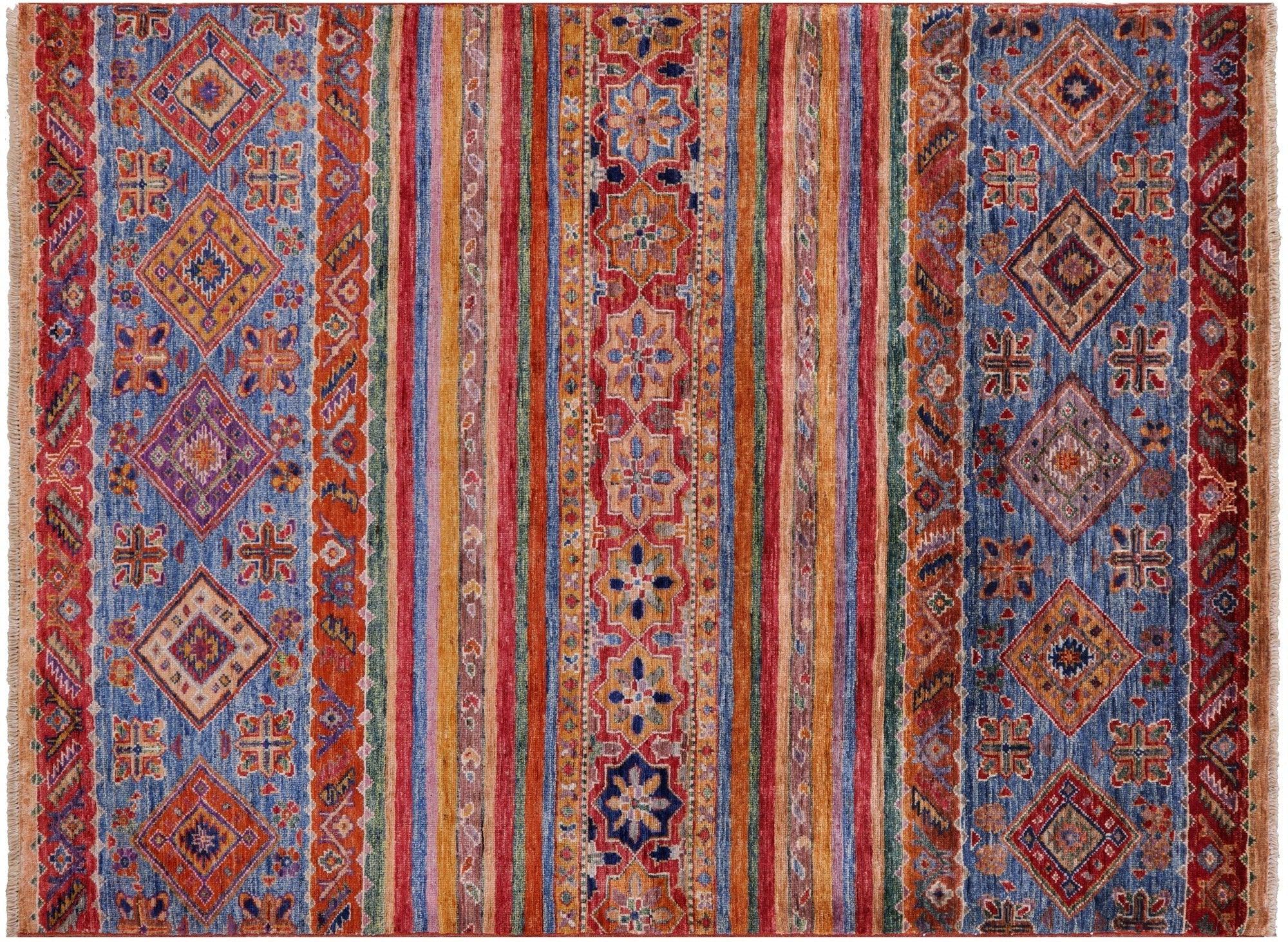 4' 1" X 5' 7" Hand Knotted Khorjin Super Kazak Rug - Q7458 is backordered and will ship as soon as it is back in stock.