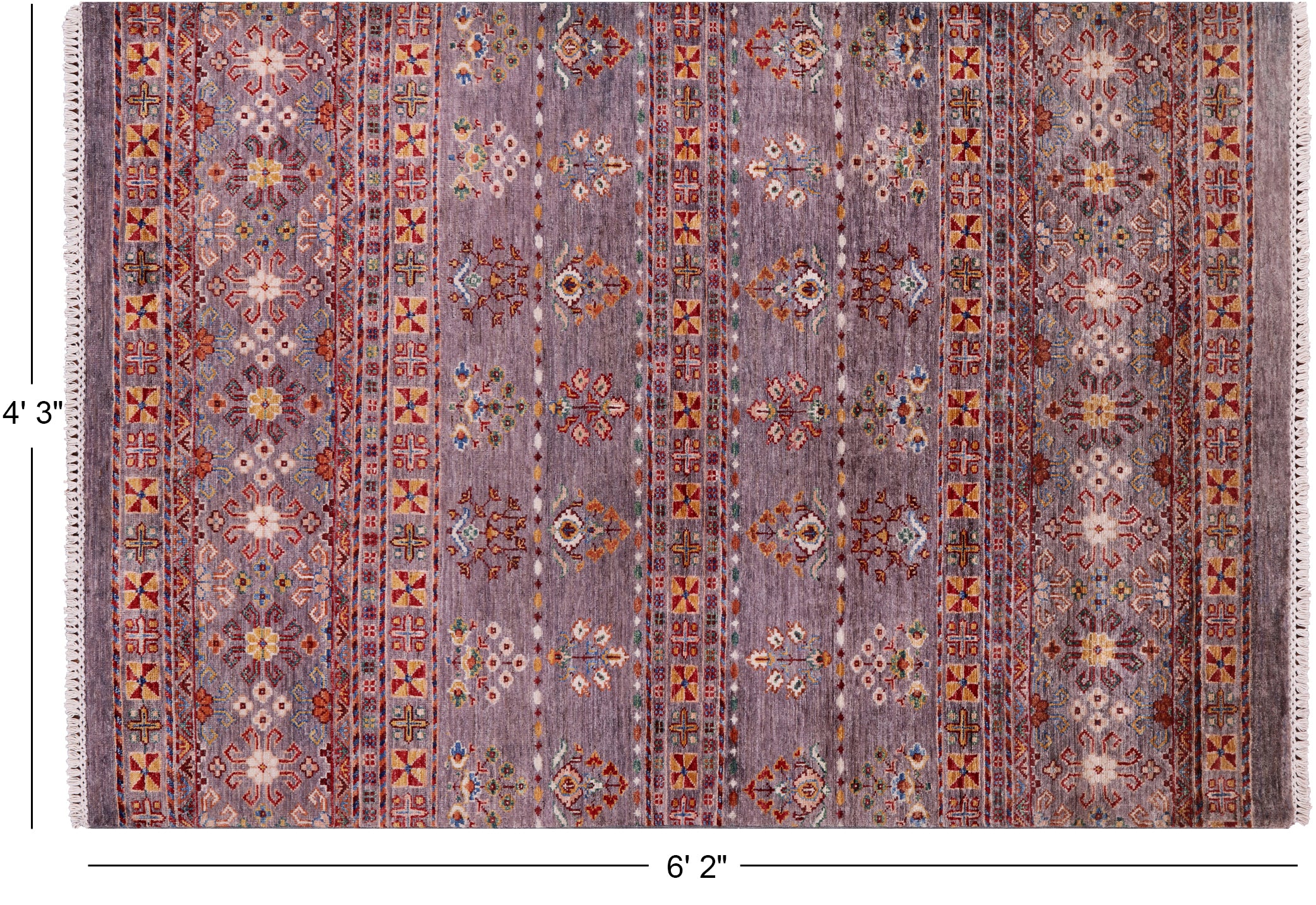 Hand Knotted Khorjin Super Kazak Wool Rug 4' 3" X 6' 2" - Q10086