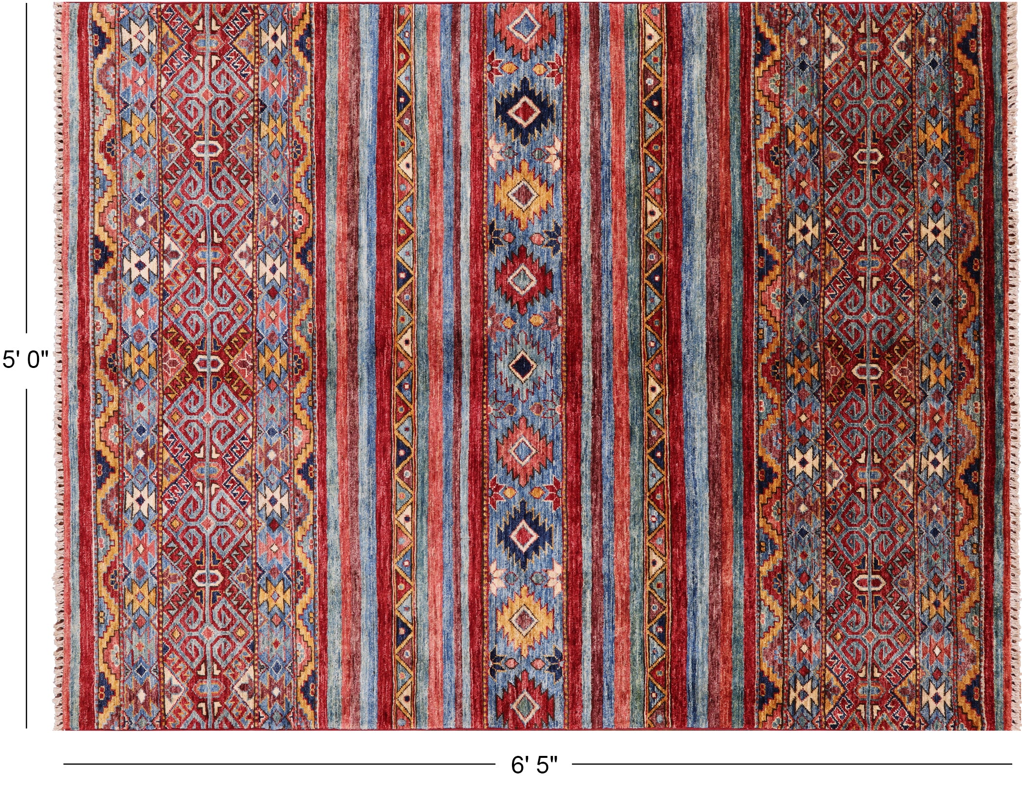 Hand Knotted Khorjin Super Kazak Wool Rug 5' 0" X 6' 5" - Q10768 is backordered and will ship as soon as it is back in stock.