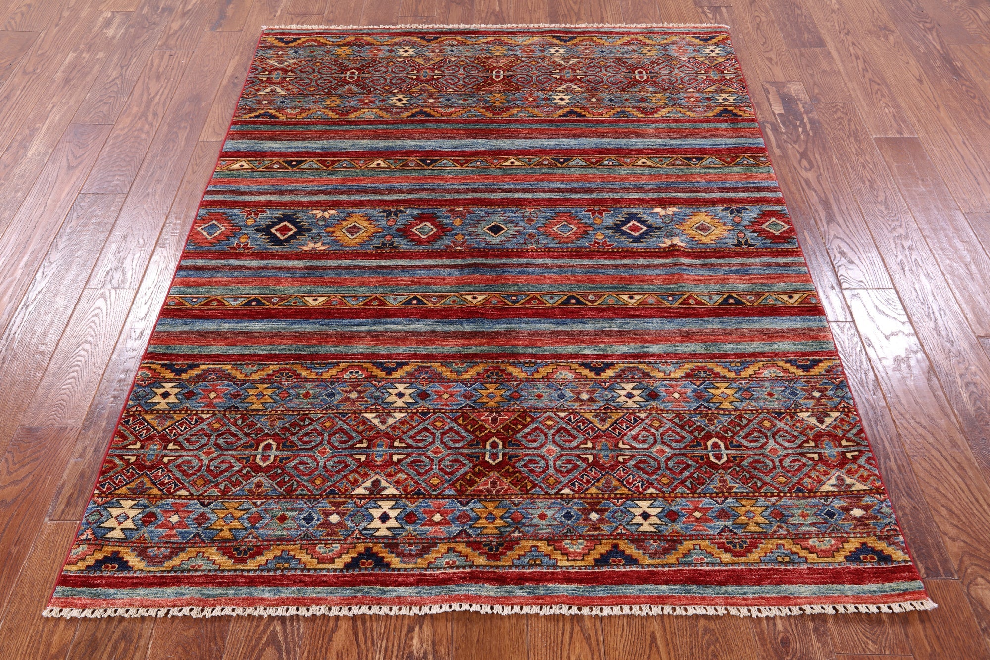 Hand Knotted Khorjin Super Kazak Wool Rug 5' 0" X 6' 5" - Q10768
