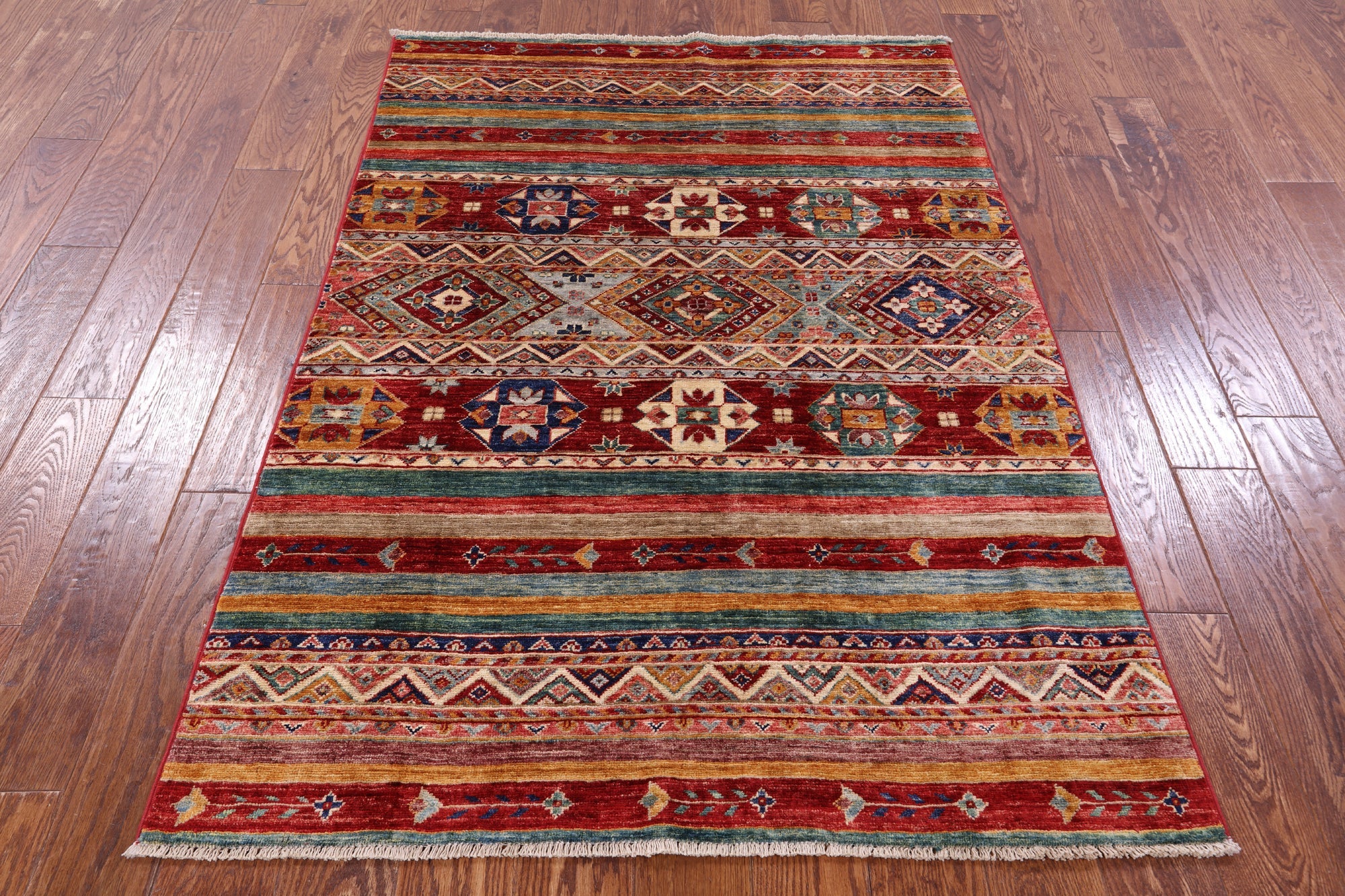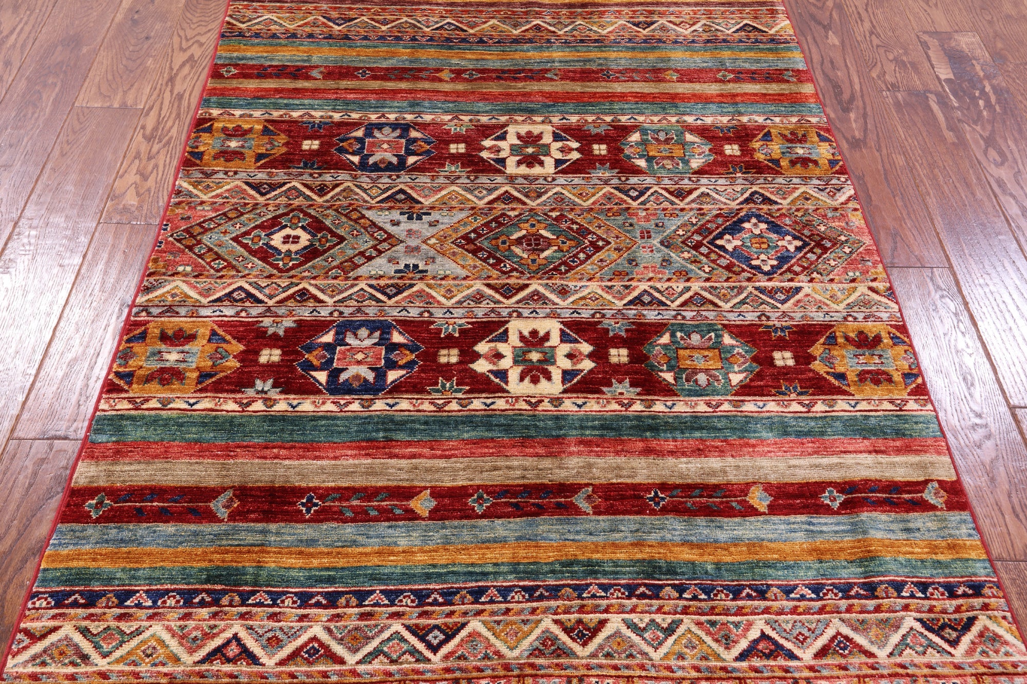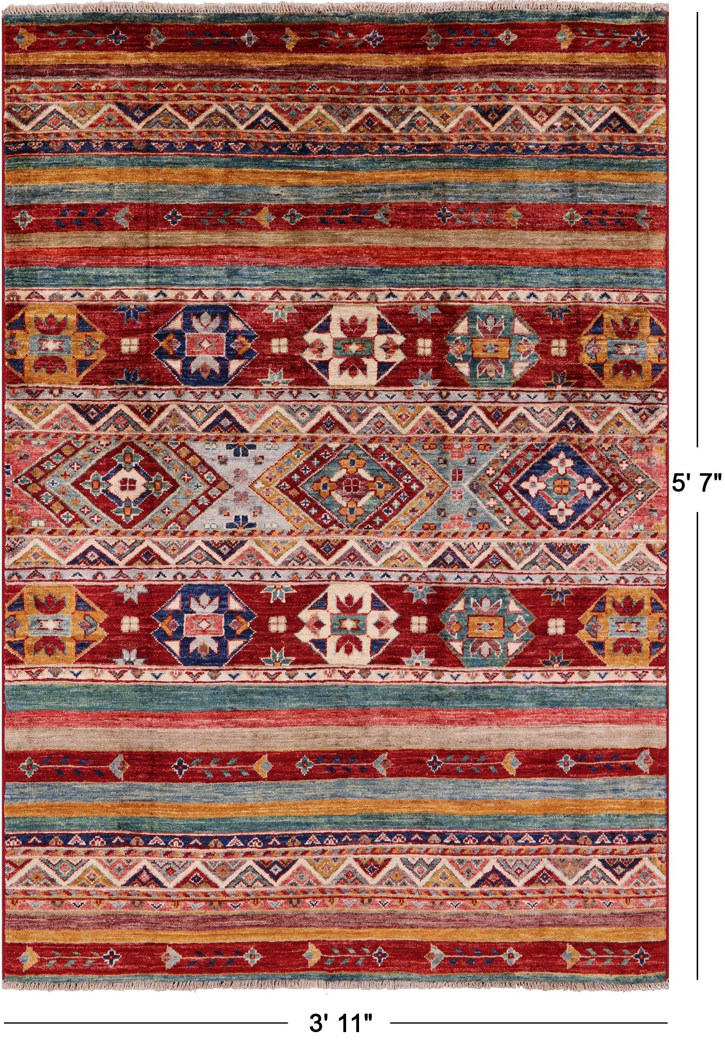 Hand-Knotted Khorjin Super Kazak Wool Rug 3' 11" X 5' 7" - Q12618