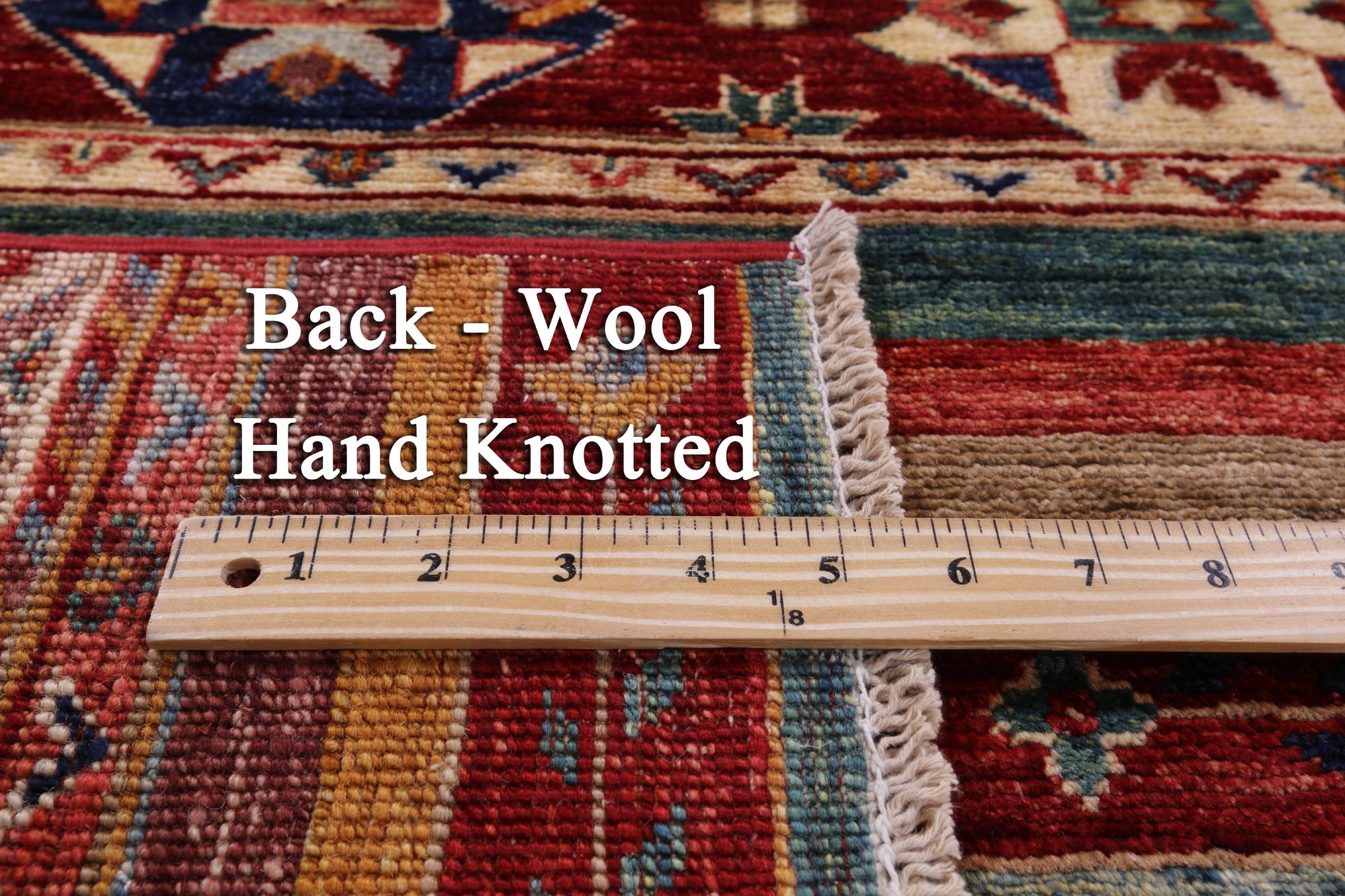 Hand-Knotted Khorjin Super Kazak Wool Rug 3' 11" X 5' 7" - Q12618 is backordered and will ship as soon as it is back in stock.