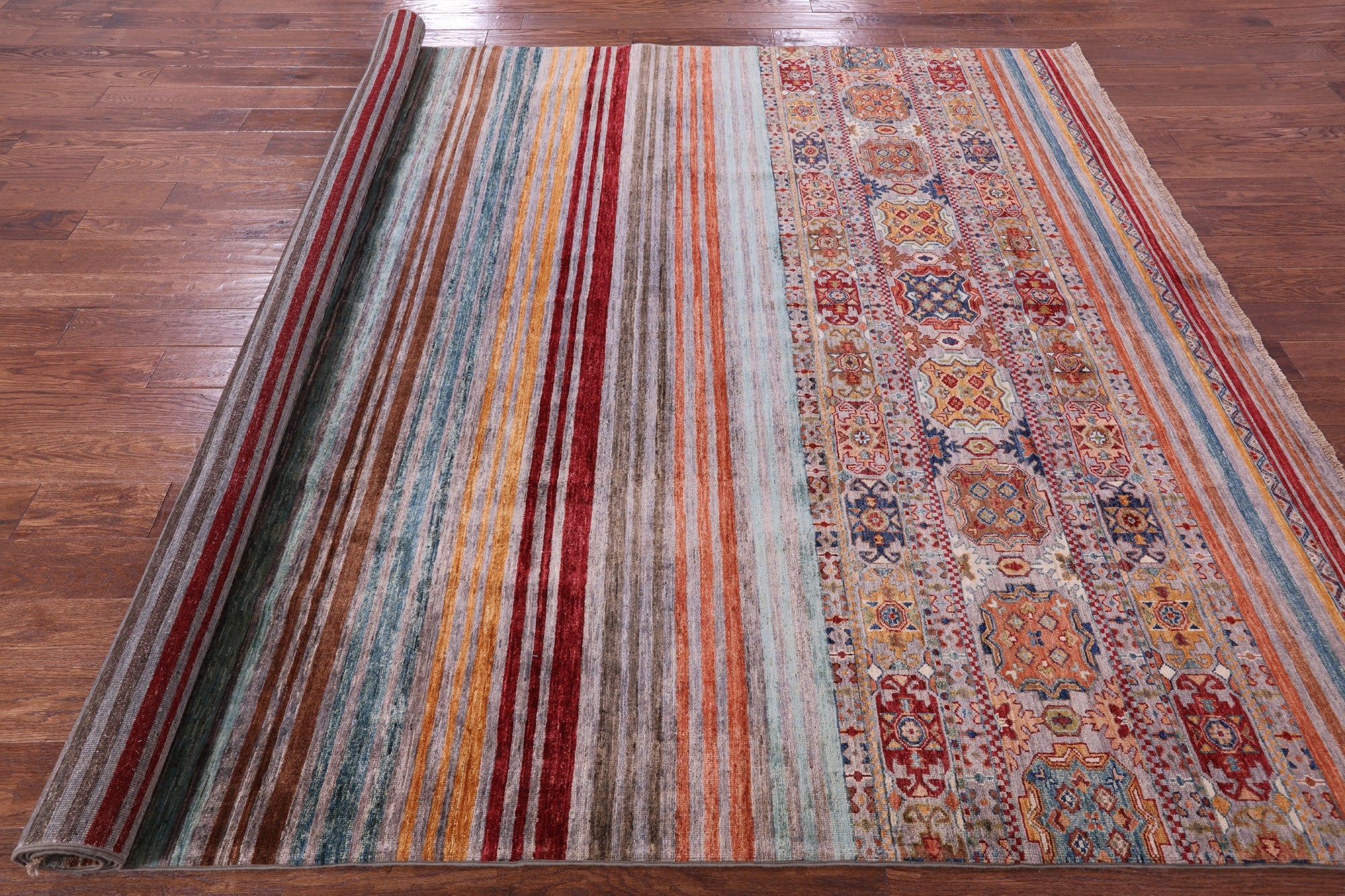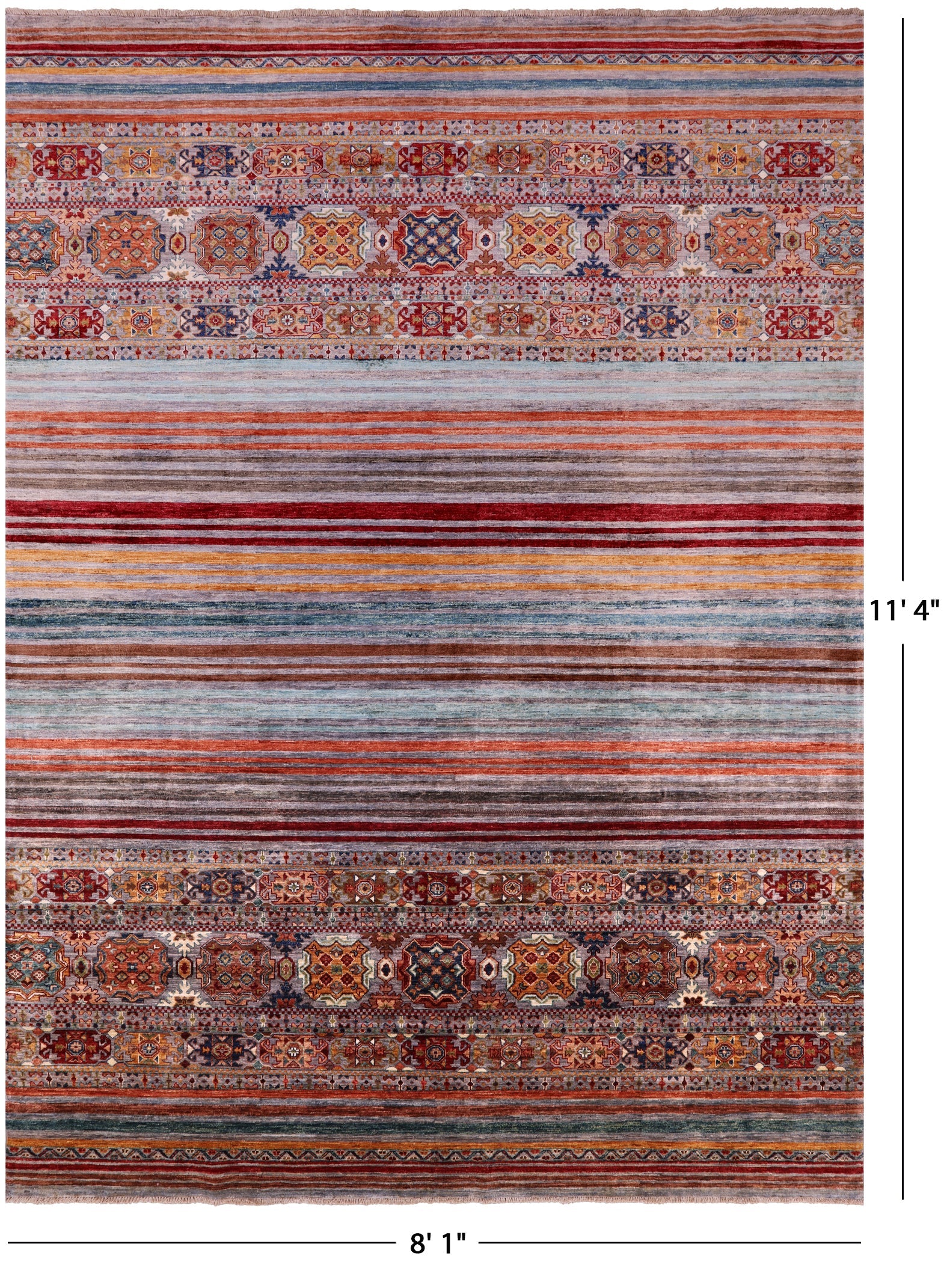 Hand Knotted Khorjin Super Kazak Wool Rug 8' 1" X 11' 4" - Q16943