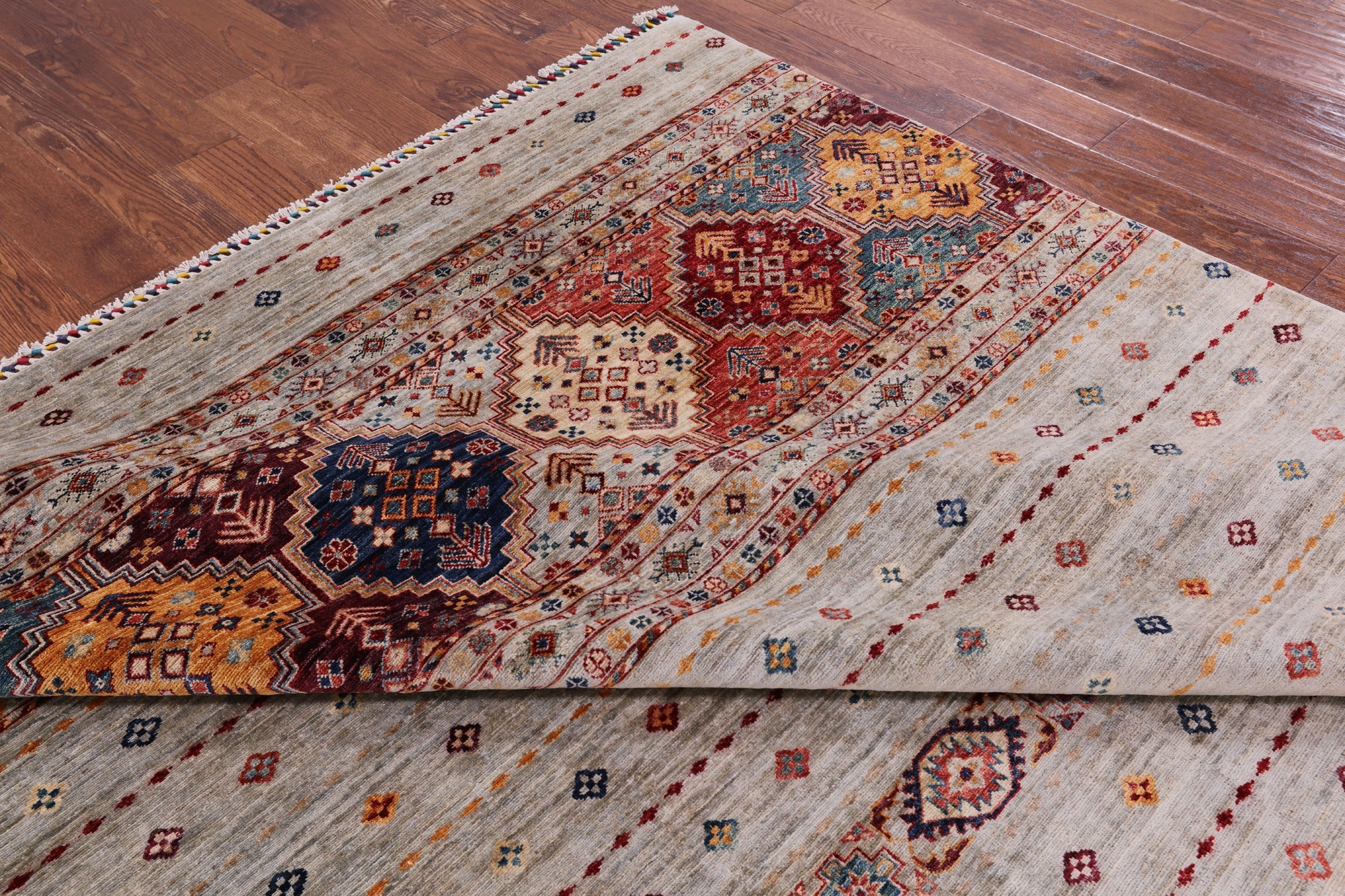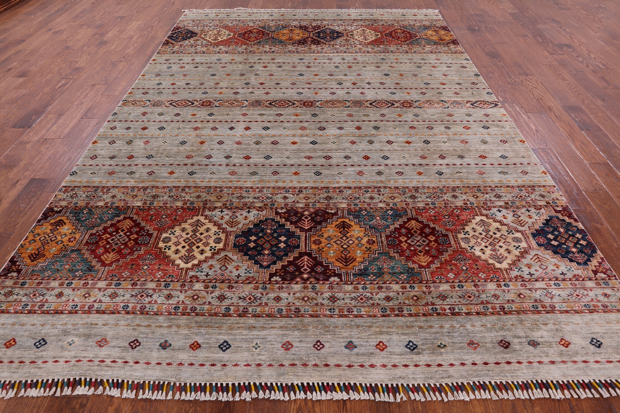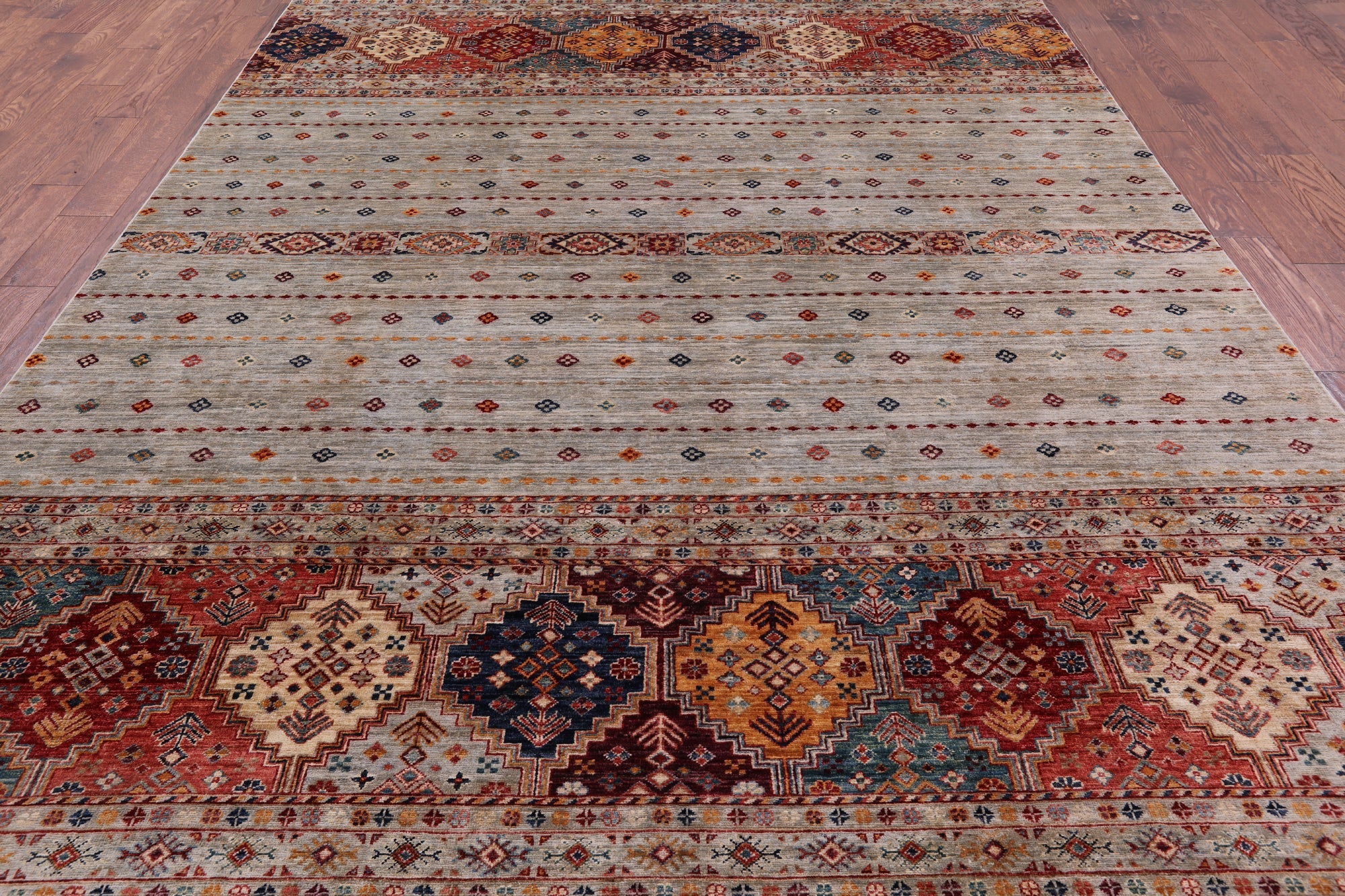 Hand Knotted Khorjin Super Kazak Wool Rug 8' 2" X 11' 2" - Q2877 is backordered and will ship as soon as it is back in stock.