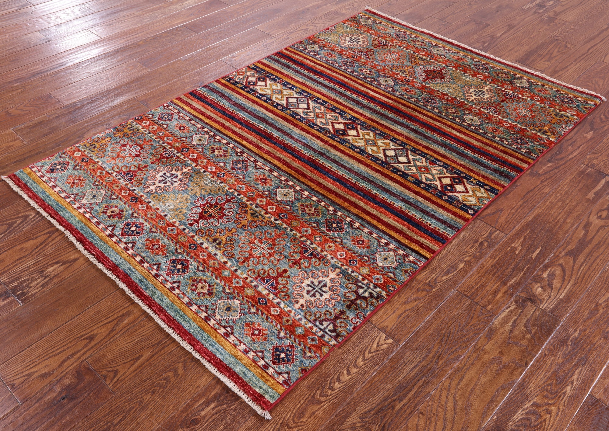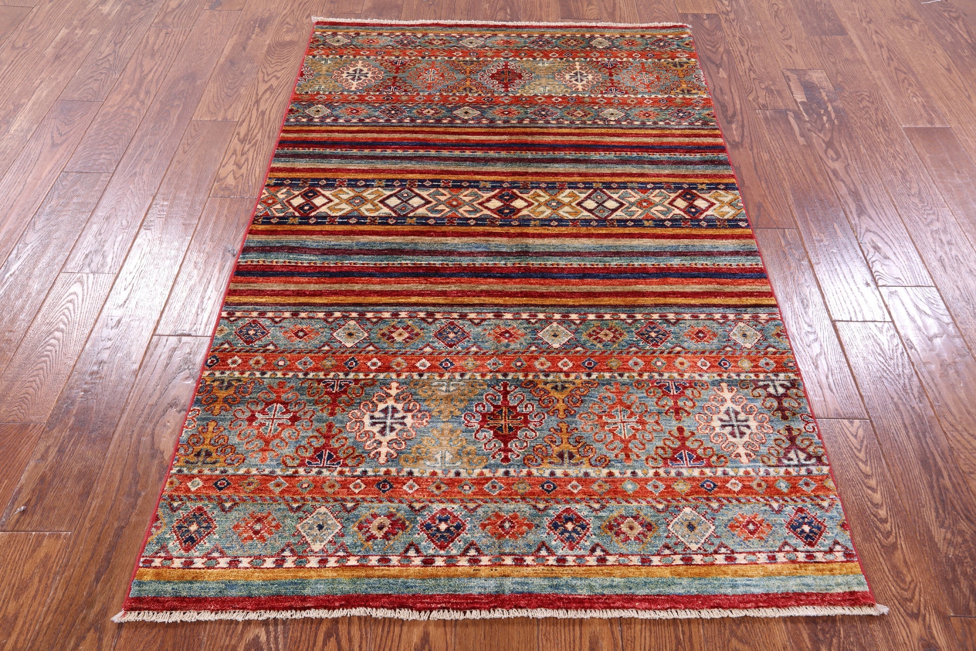 3' 10" X 6' 0" Hand Knotted Wool Super Kazak Khorjin Rug - Q12689 is backordered and will ship as soon as it is back in stock.