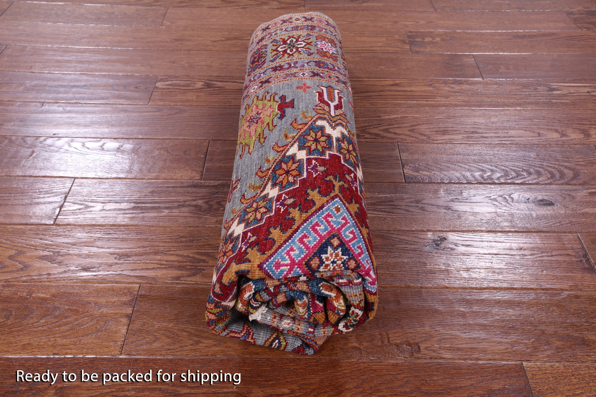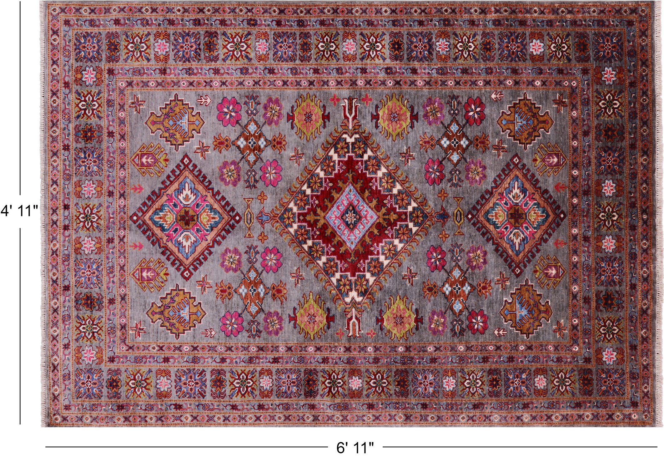 4' 11" X 6' 11" Handmade Geometric Super Kazak Wool Rug - Q10620