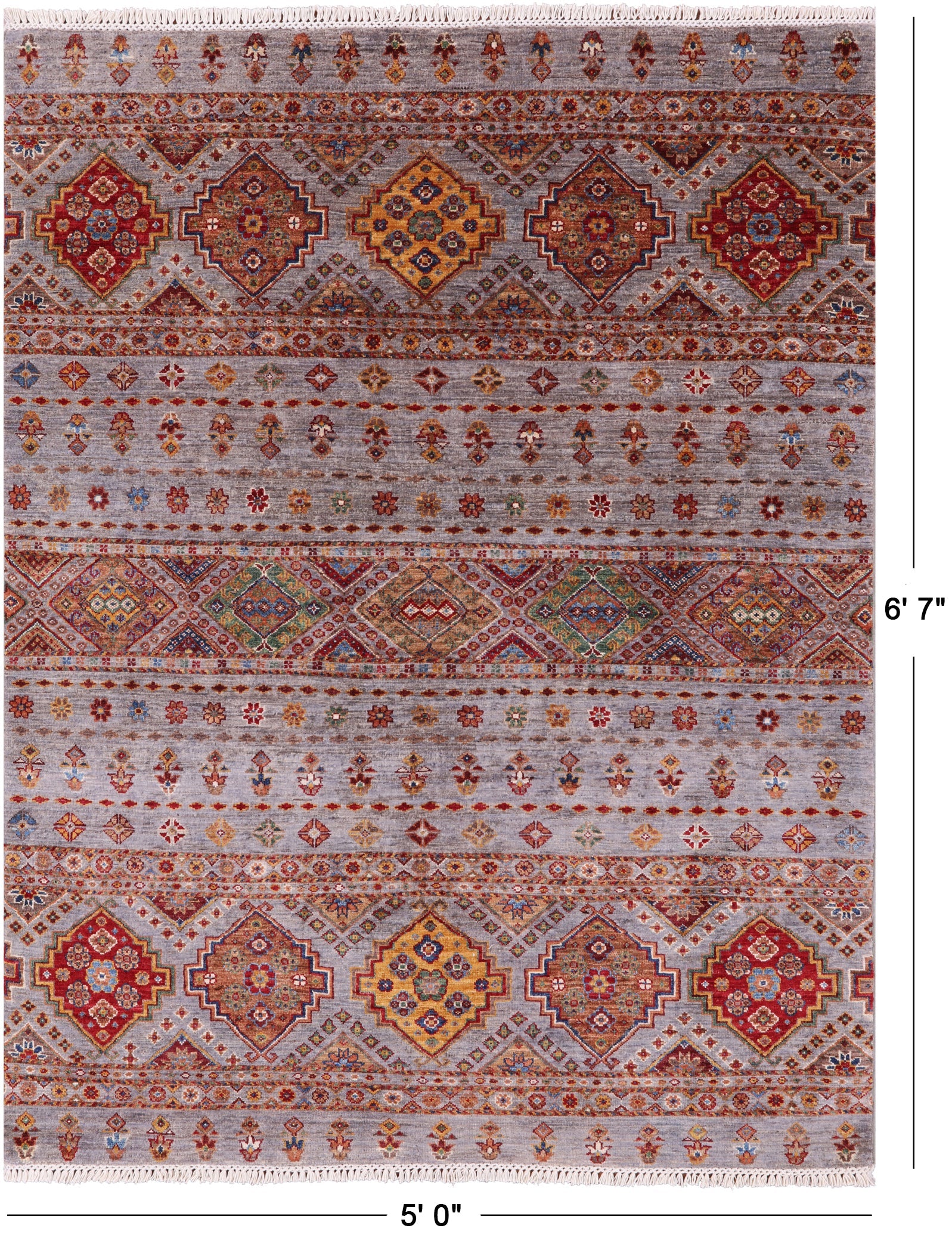 5' 0" X 6' 7" Handmade Khorjin Super Kazak Rug - Q11286
