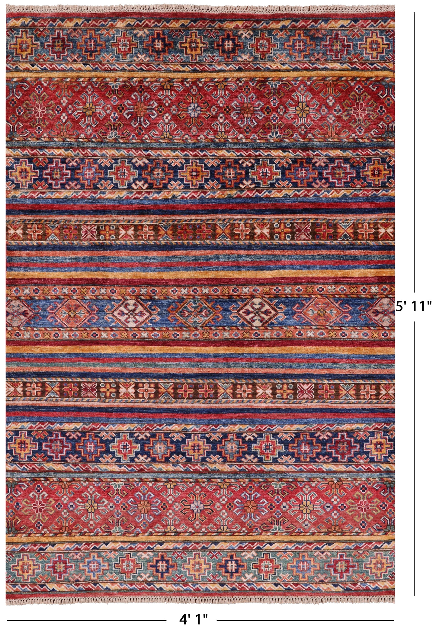 Handmade Khorjin Super Kazak Rug 4' 1" X 5' 11" - Q7679