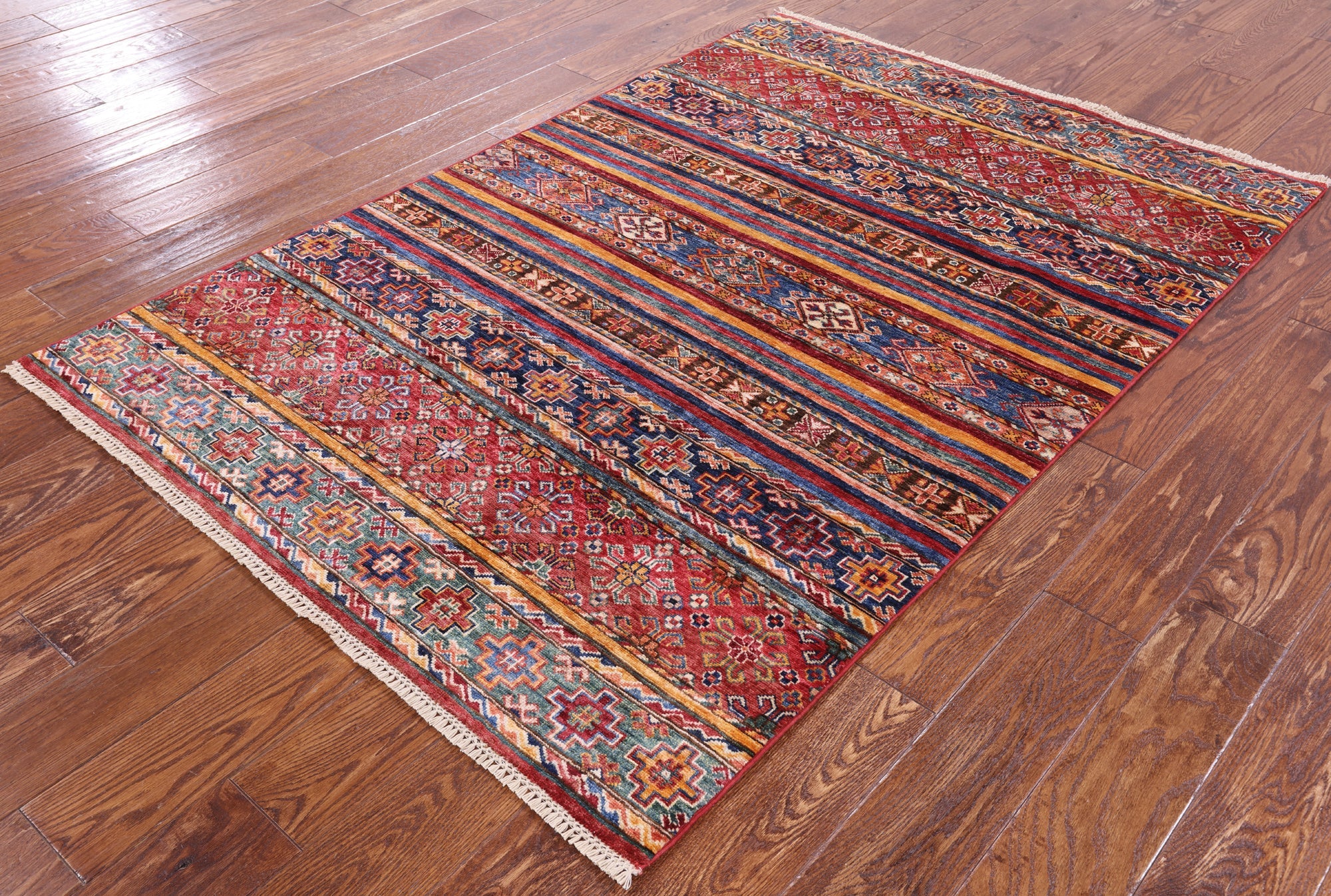 Handmade Khorjin Super Kazak Rug 4' 1" X 5' 11" - Q7679 is backordered and will ship as soon as it is back in stock.
