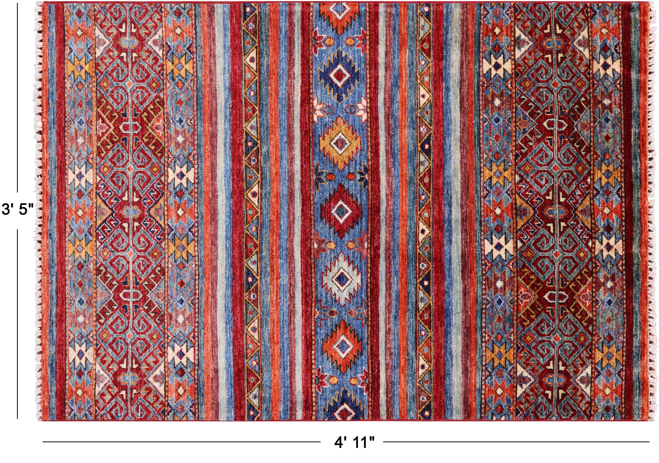 Handmade Super Kazak Khorjin Wool Rug 3' 5" X 4' 11" - Q10826