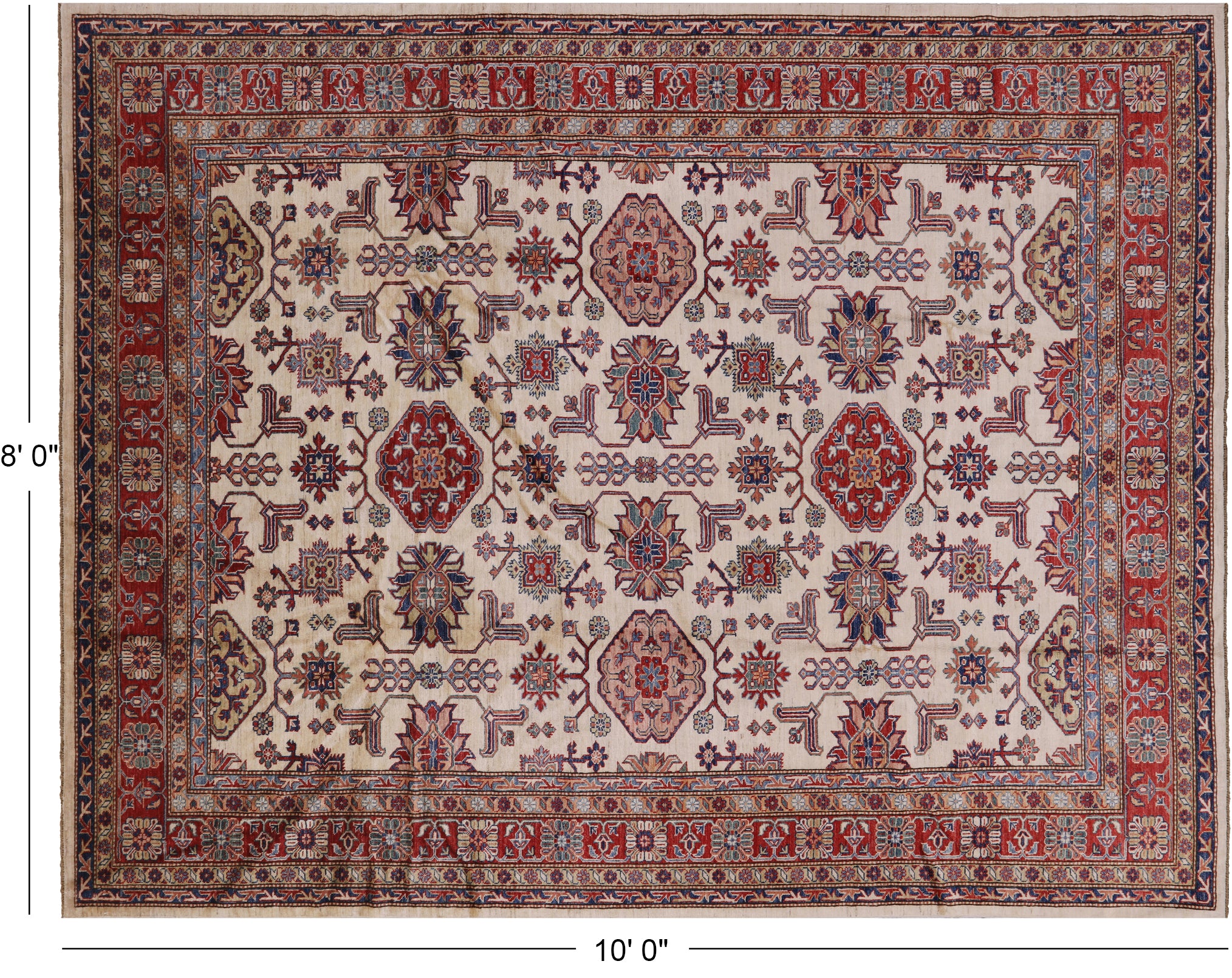 Ivory 8' 0" X 10' 0" Super Fine Kazak Hand Knotted Rug - P4834