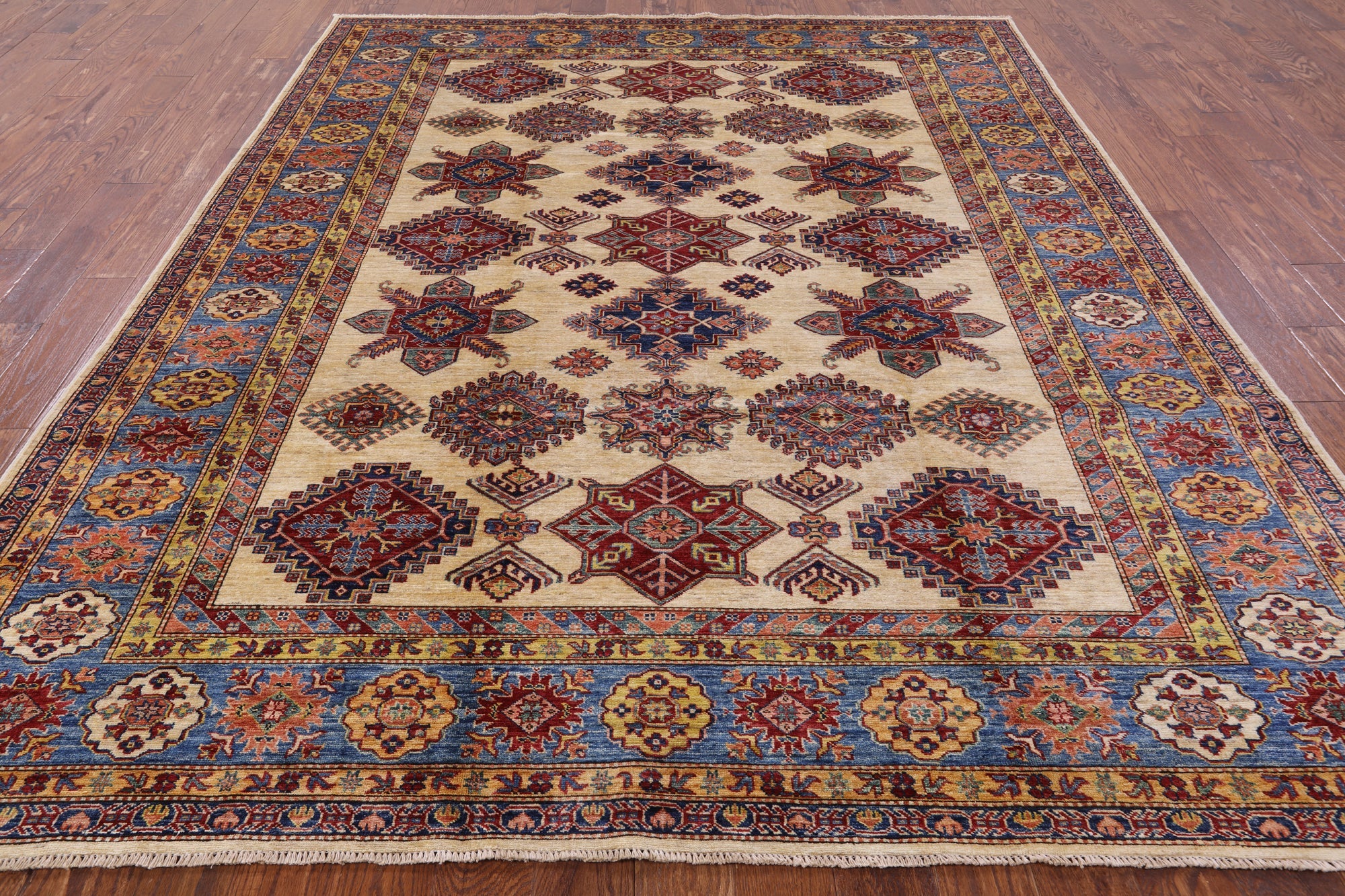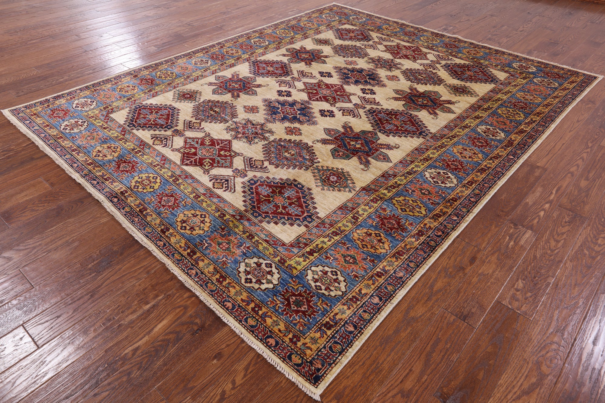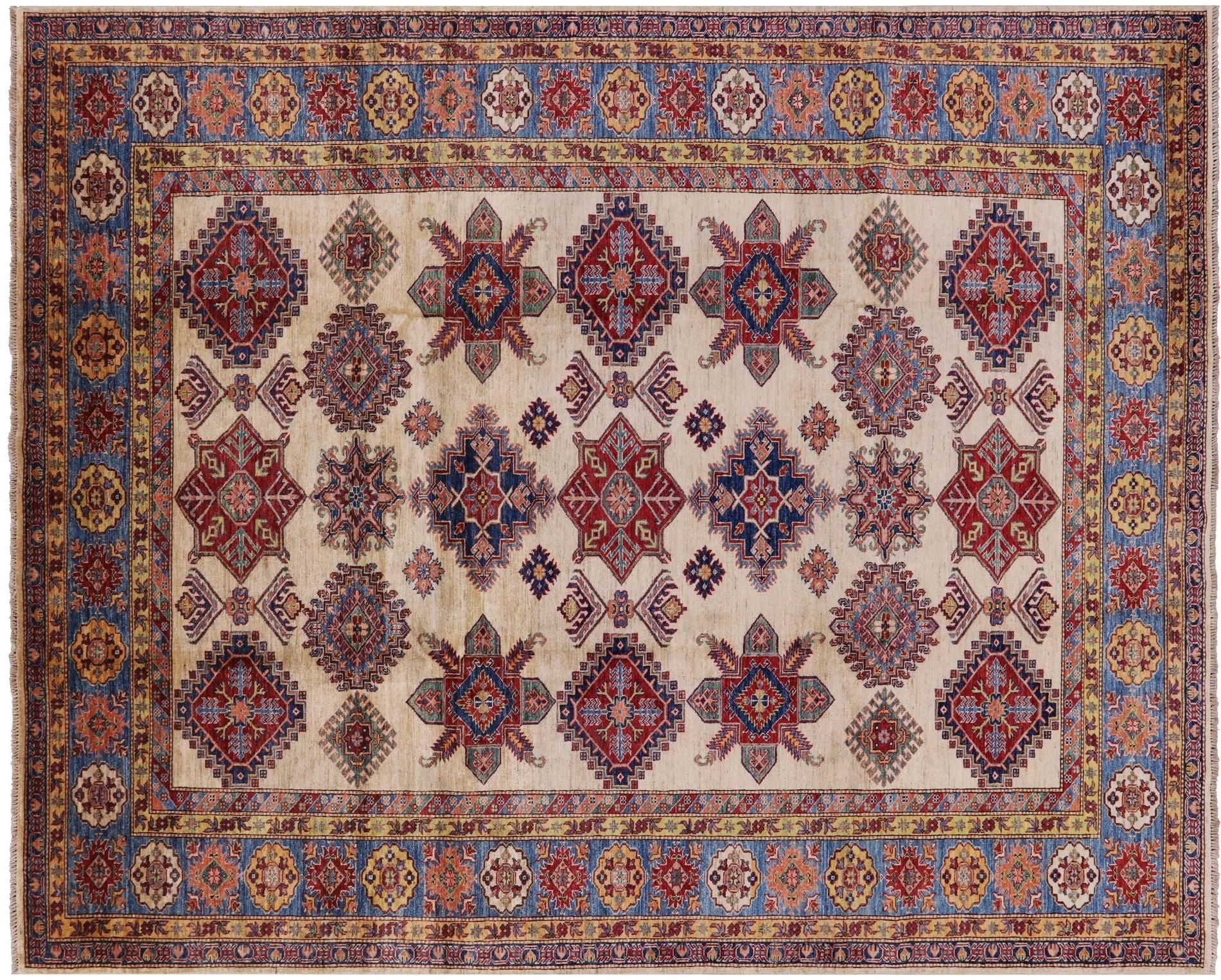 Ivory Super Fine Kazak Hand-Knotted Rug 7' 11" X 9' 10" - P7870