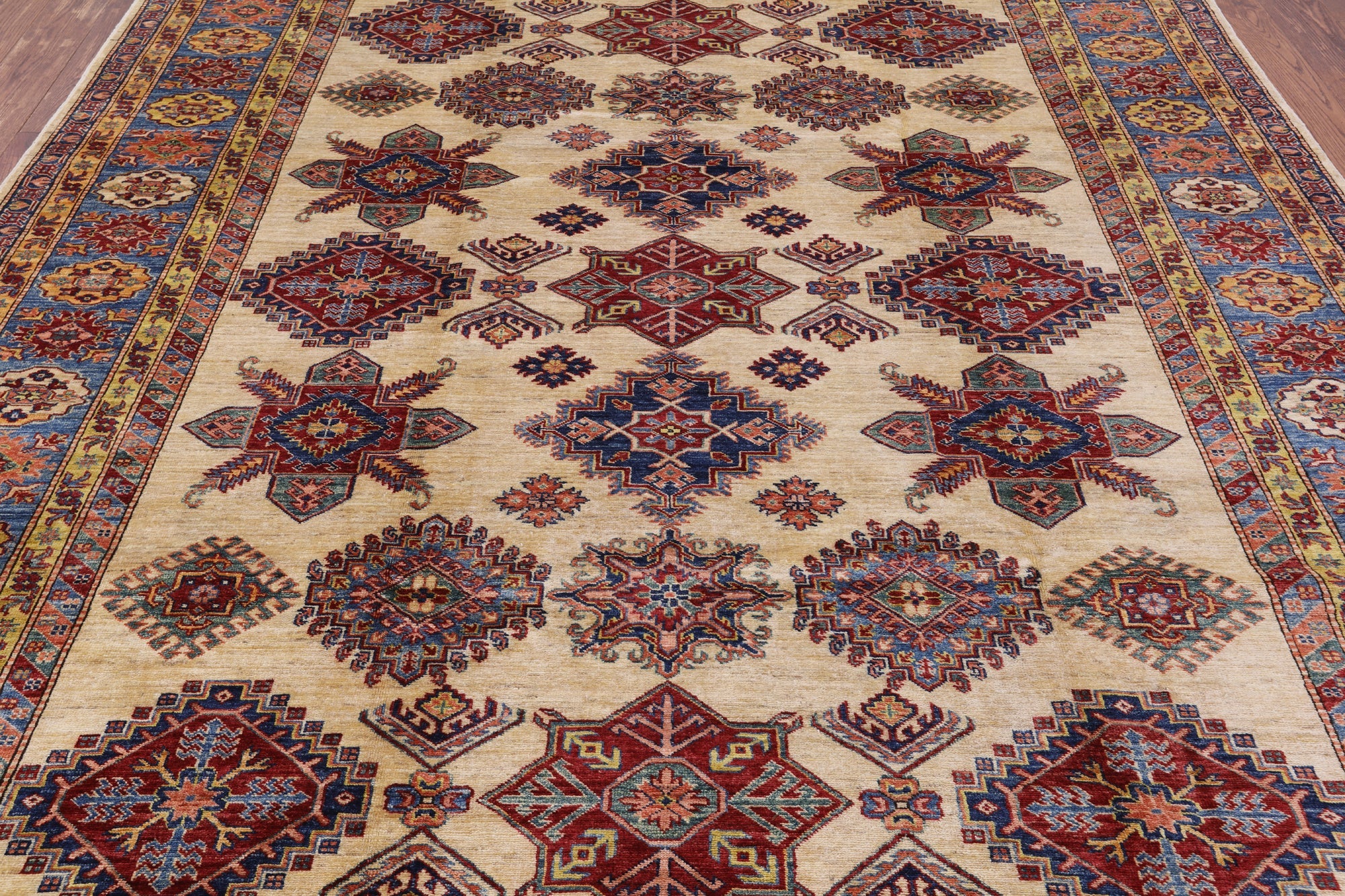 Ivory Super Fine Kazak Hand-Knotted Rug 7' 11" X 9' 10" - P7870 is backordered and will ship as soon as it is back in stock.