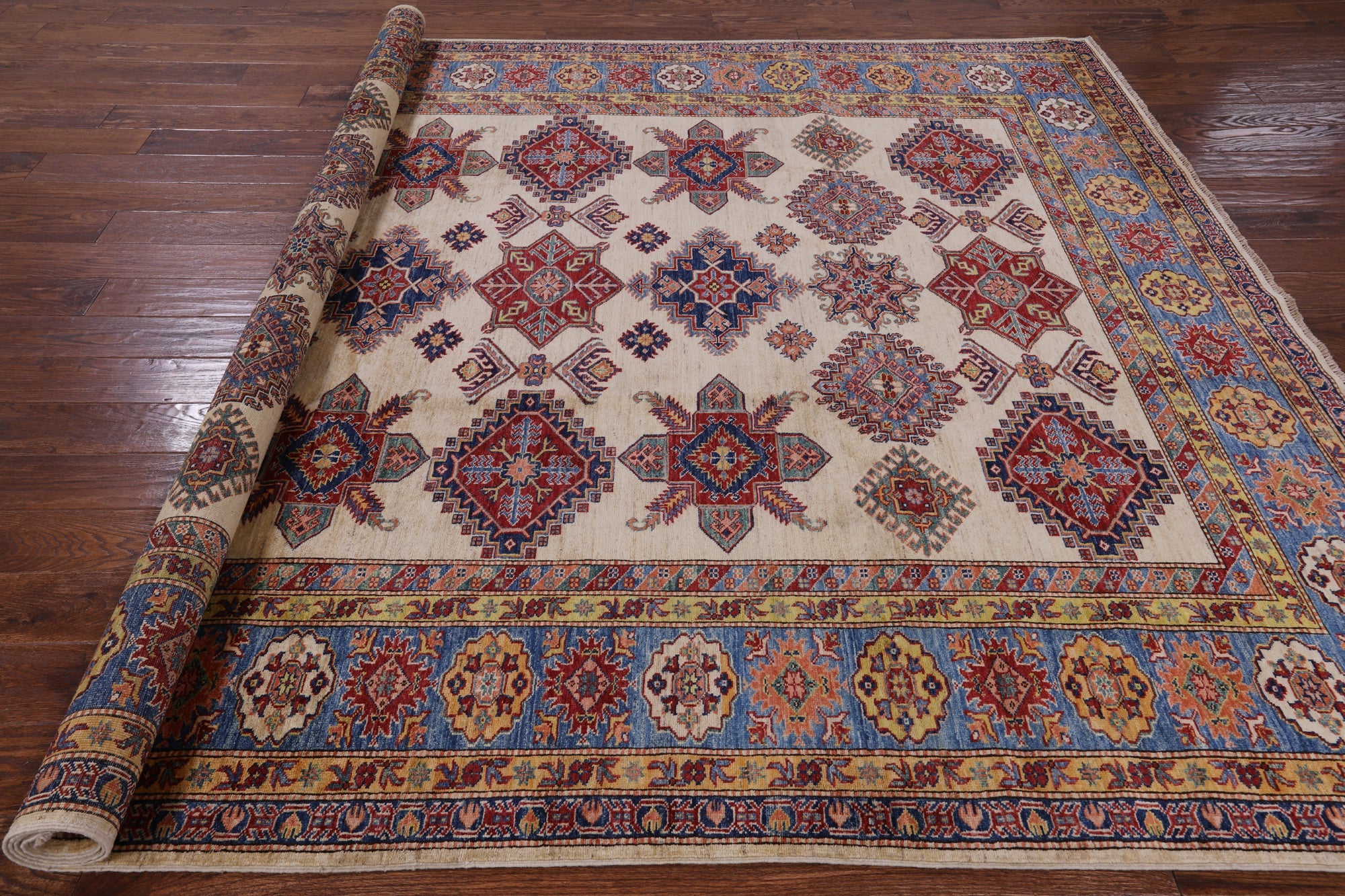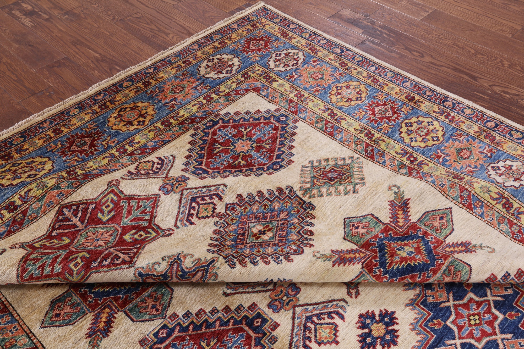 Kazak (Kazakh, Kasak, Gazakh, Qazax). These rugs are woven by settled Armenians as well as nomadic Kurds, Georgians, Azerbaijanis and Lurs. There are various designs that consist of medallions, diamonds, latch-hooked zig-zags and other geometric shapes. However, it is the wonderful rich colors which make them stand out from other rugs.