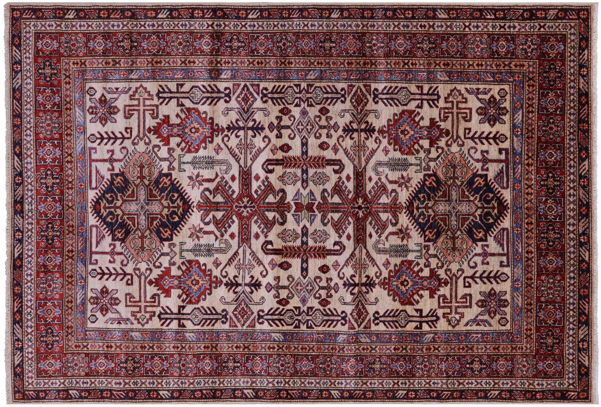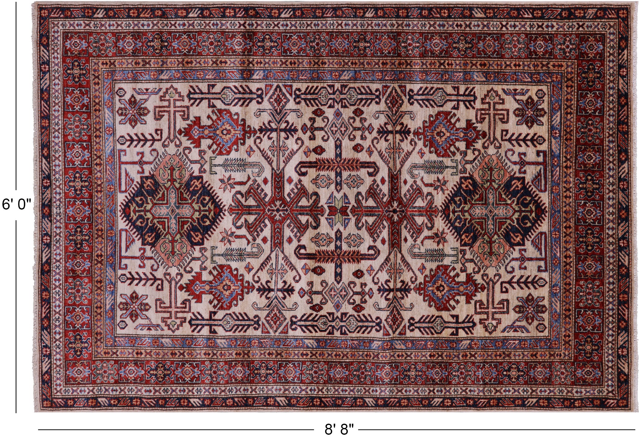 Ivory Super Kazak Hand Knotted Wool Rug 6' 0" X 8' 8" - Q10528
