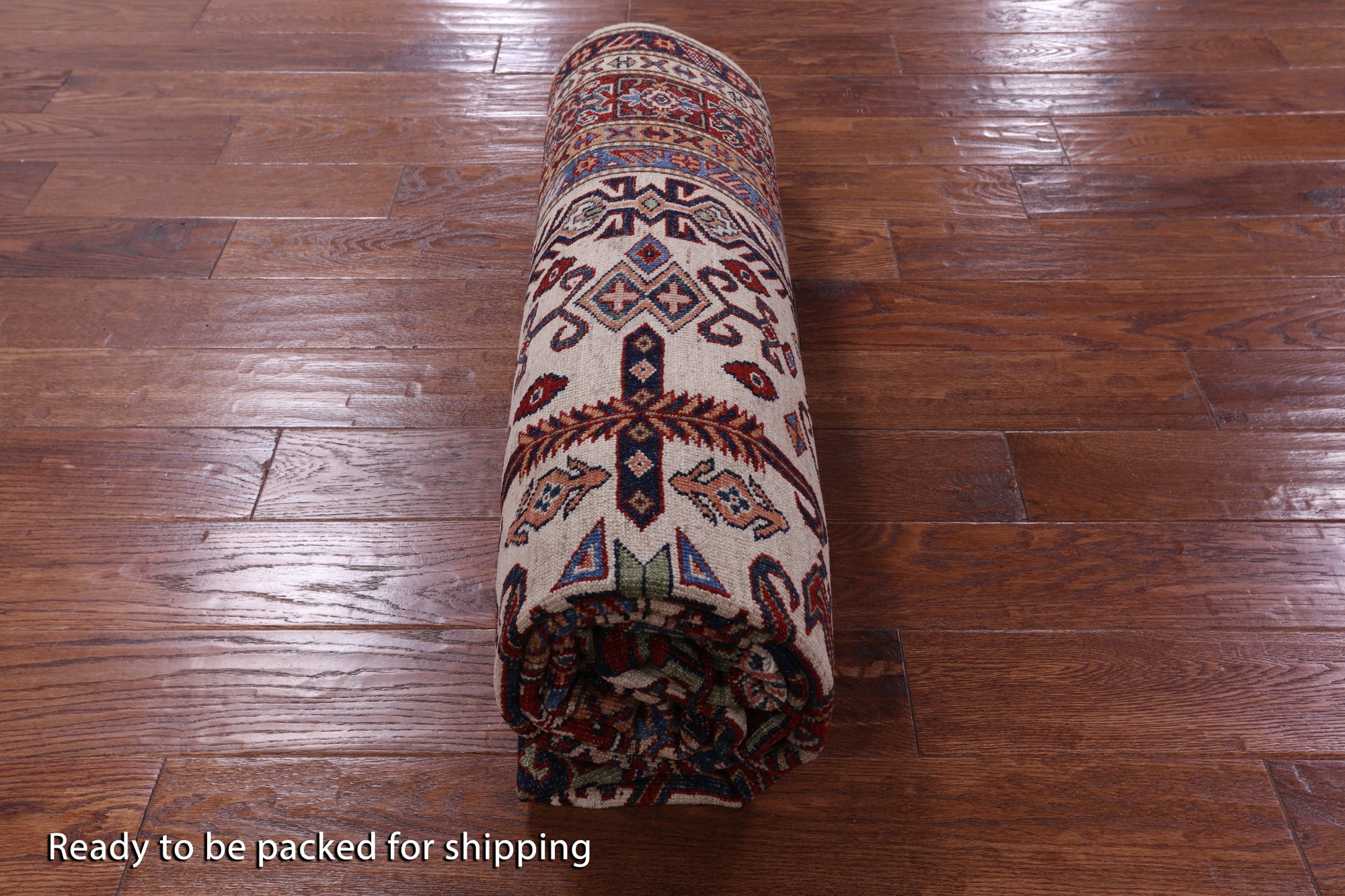 Ivory Super Kazak Hand Knotted Wool Rug 6' 0" X 8' 8" - Q10528 is backordered and will ship as soon as it is back in stock.