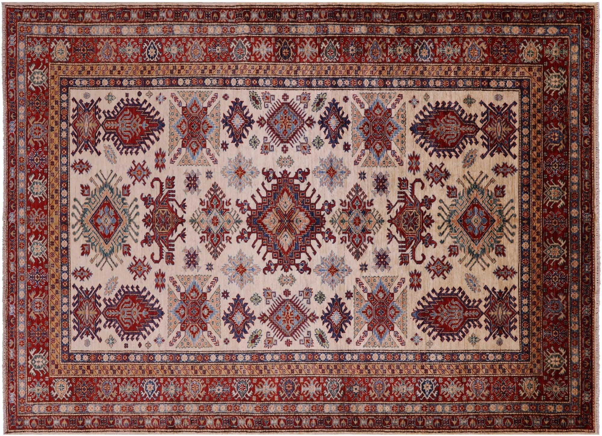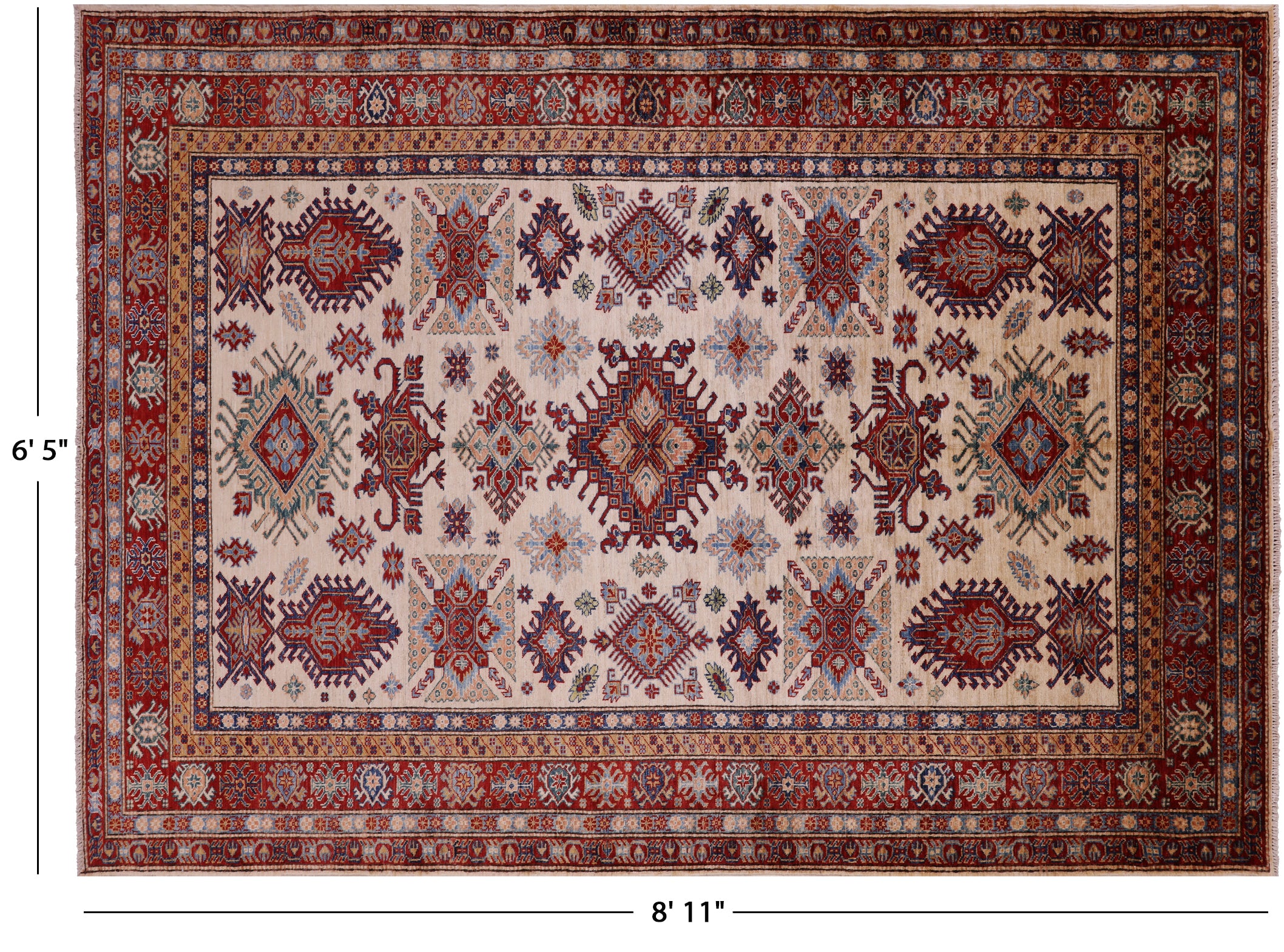 Ivory 6' 5" X 8' 11" Super Kazak Handmade Wool Rug - Q10627