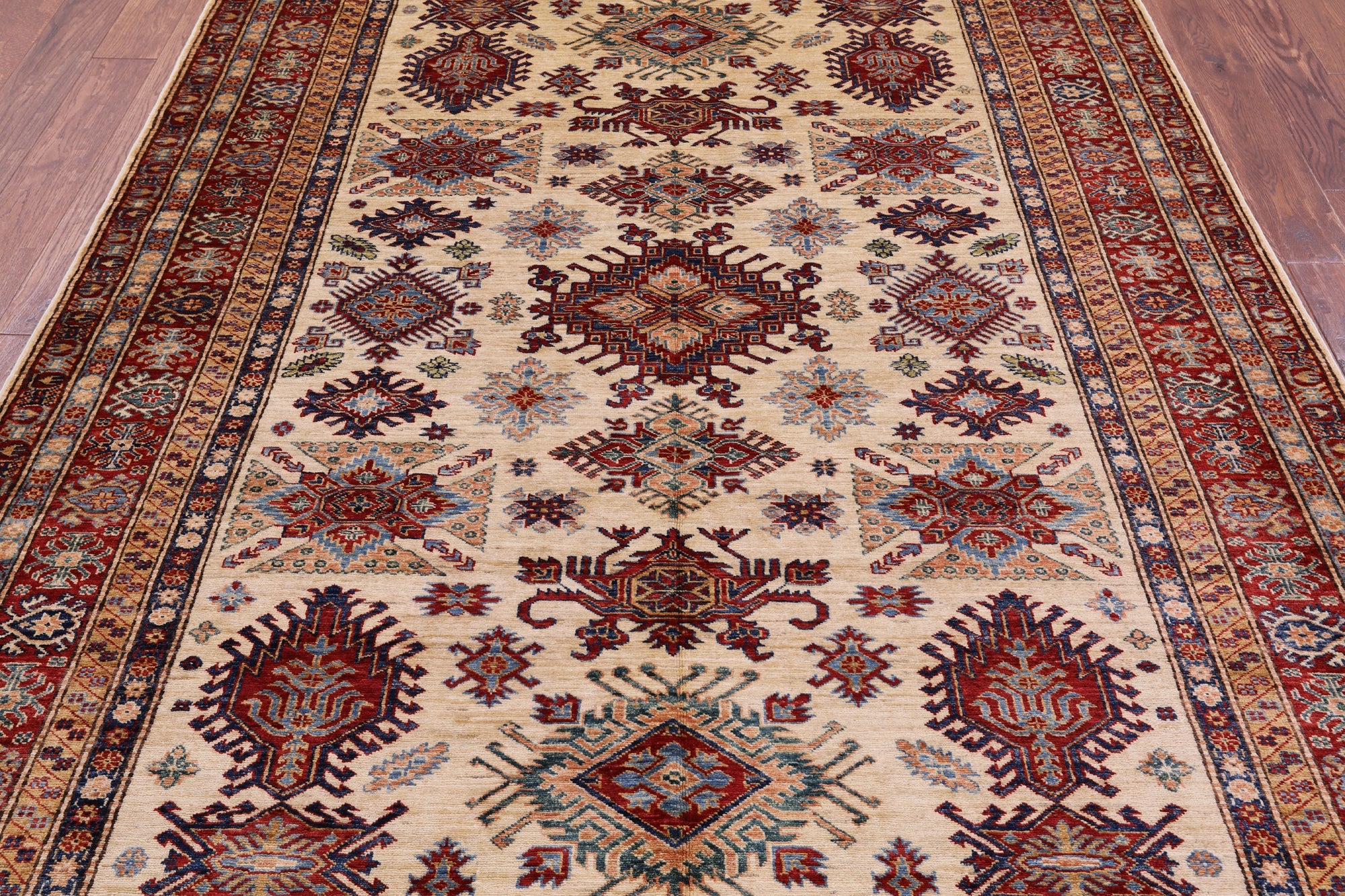Super Kazak rugs were woven in the south of Caucasus and are very regional in their designs. Super Kazak rugs are very traditional in look and the patterns can vary from geometric shapes, tribal designs like people and animals, and symbolic medallions. They are beautifully intricate and heavy in design. These rugs come in varieties of rich, warm, jewel tones that can liven up any space.