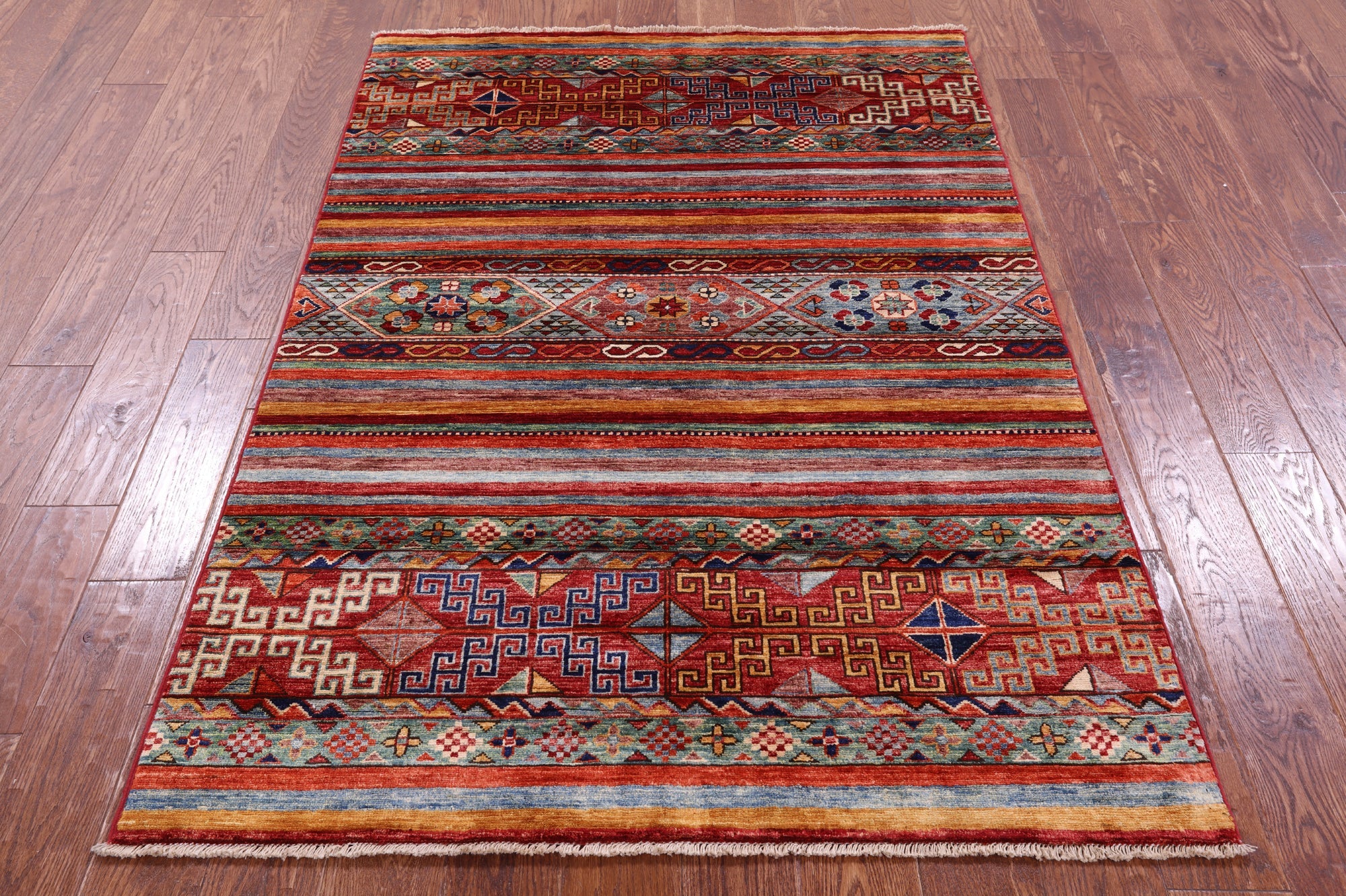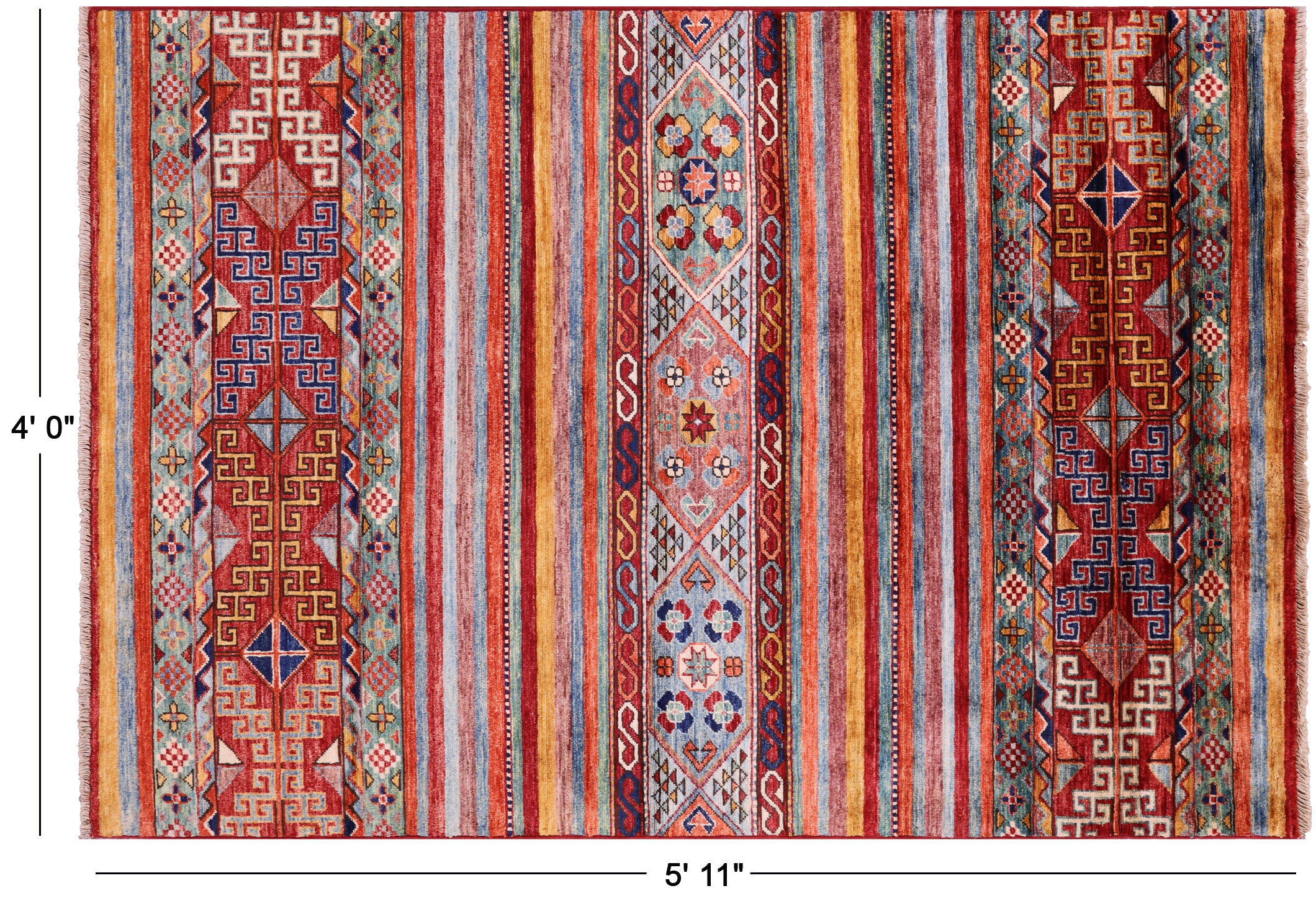 Khorjin Super Kazak Handmade Wool Rug 4' 0" X 5' 11" - Q16589