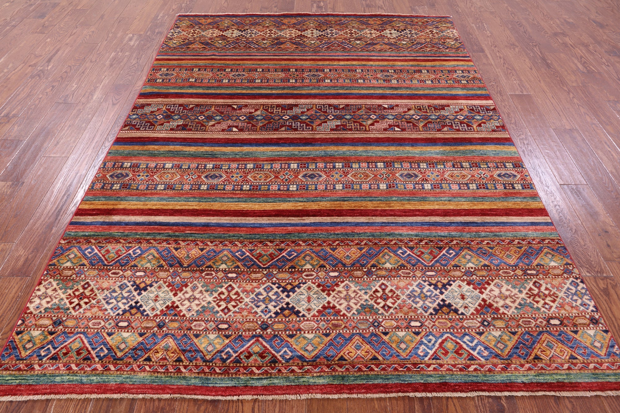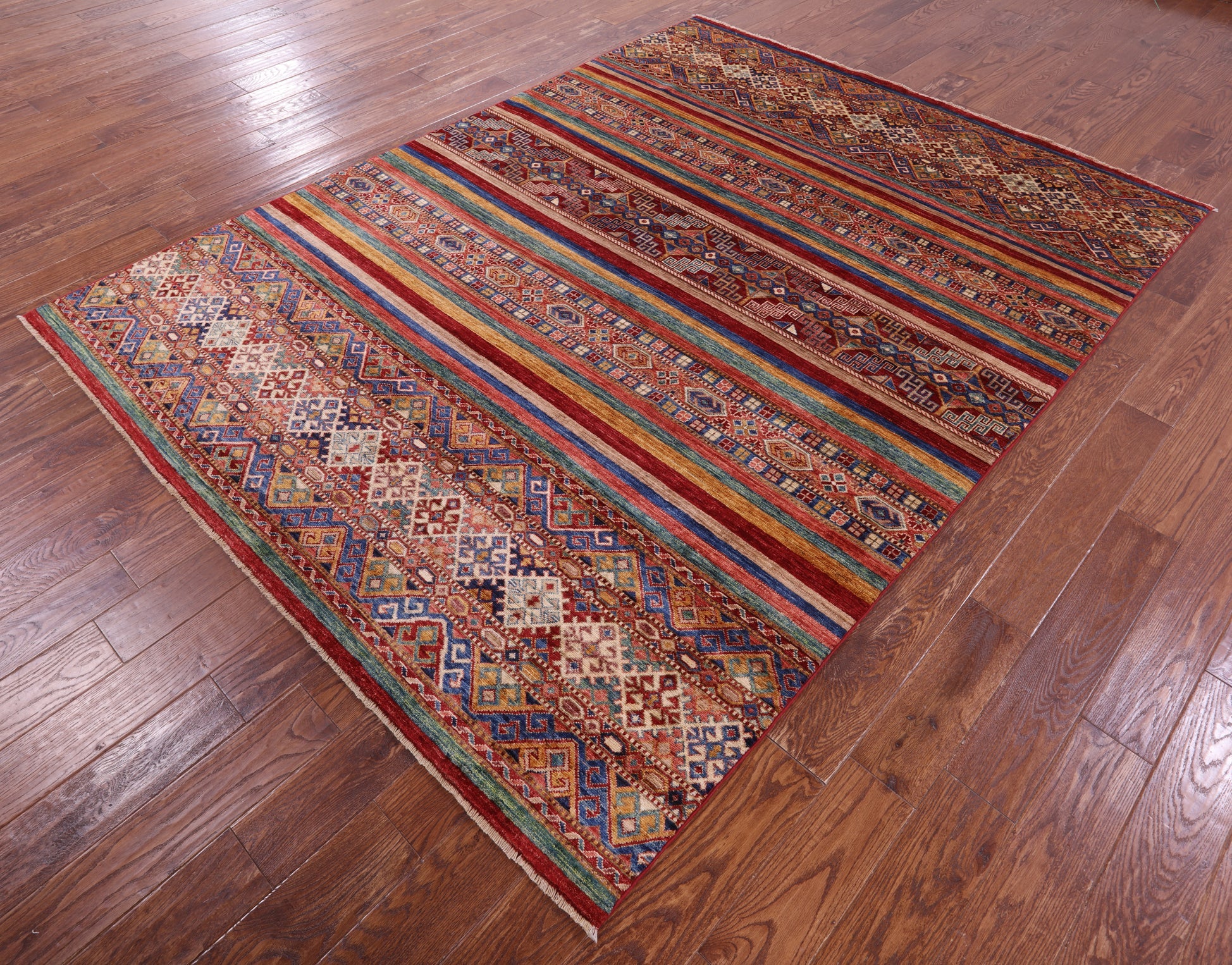 6' 7" X 8' 9" Khorjin Super Kazak Handmade Wool Rug - Q16673 is backordered and will ship as soon as it is back in stock.