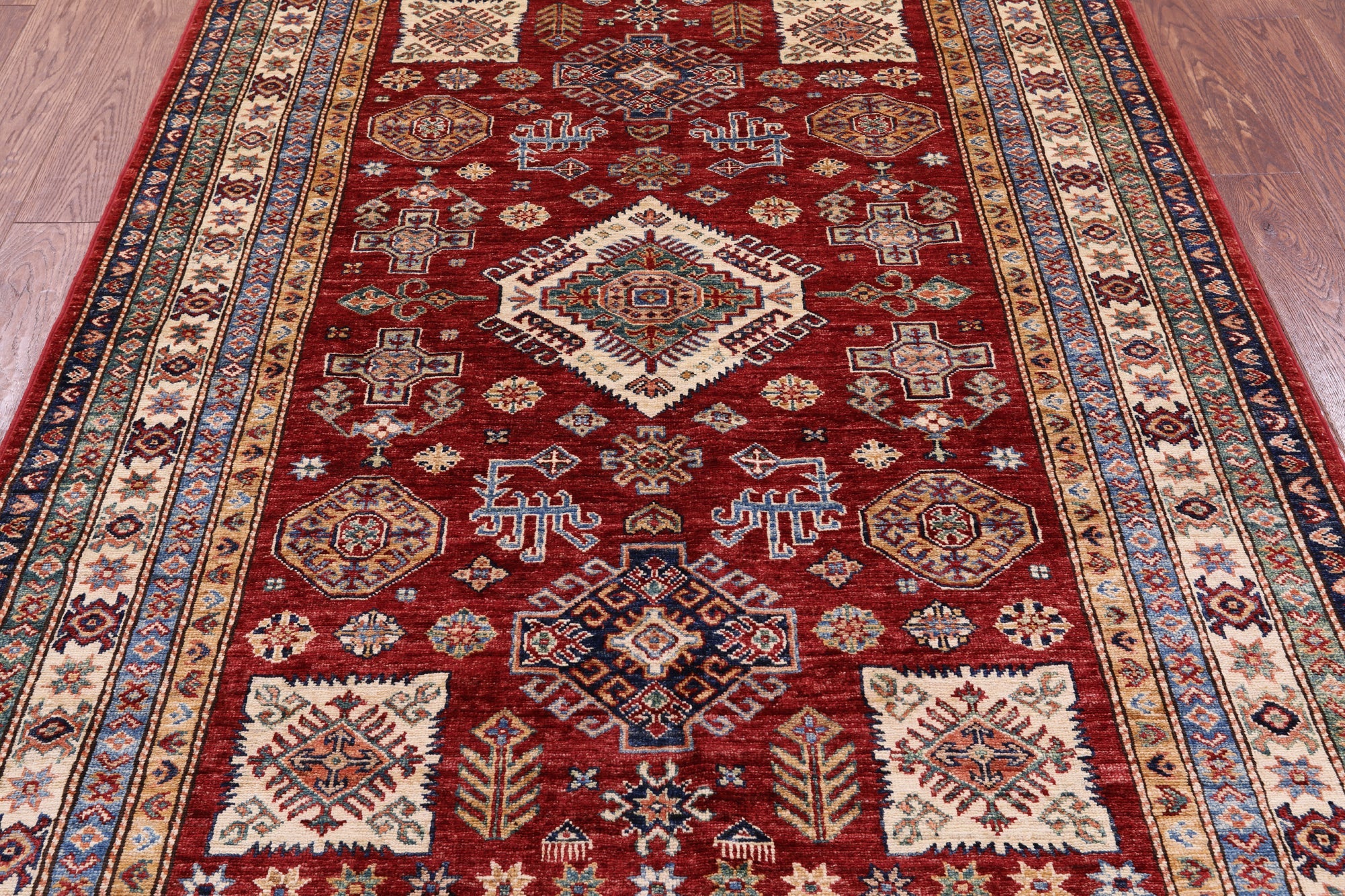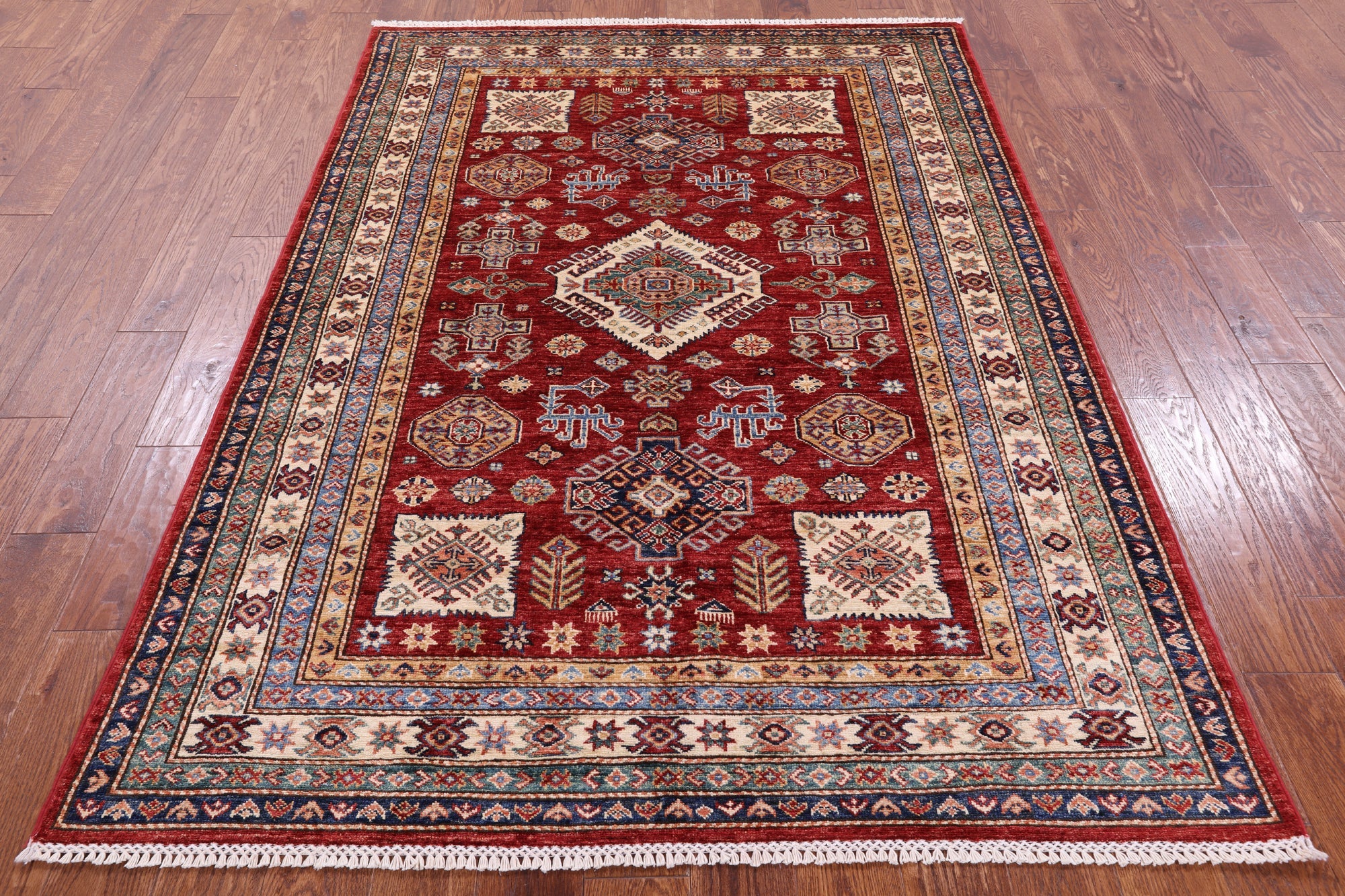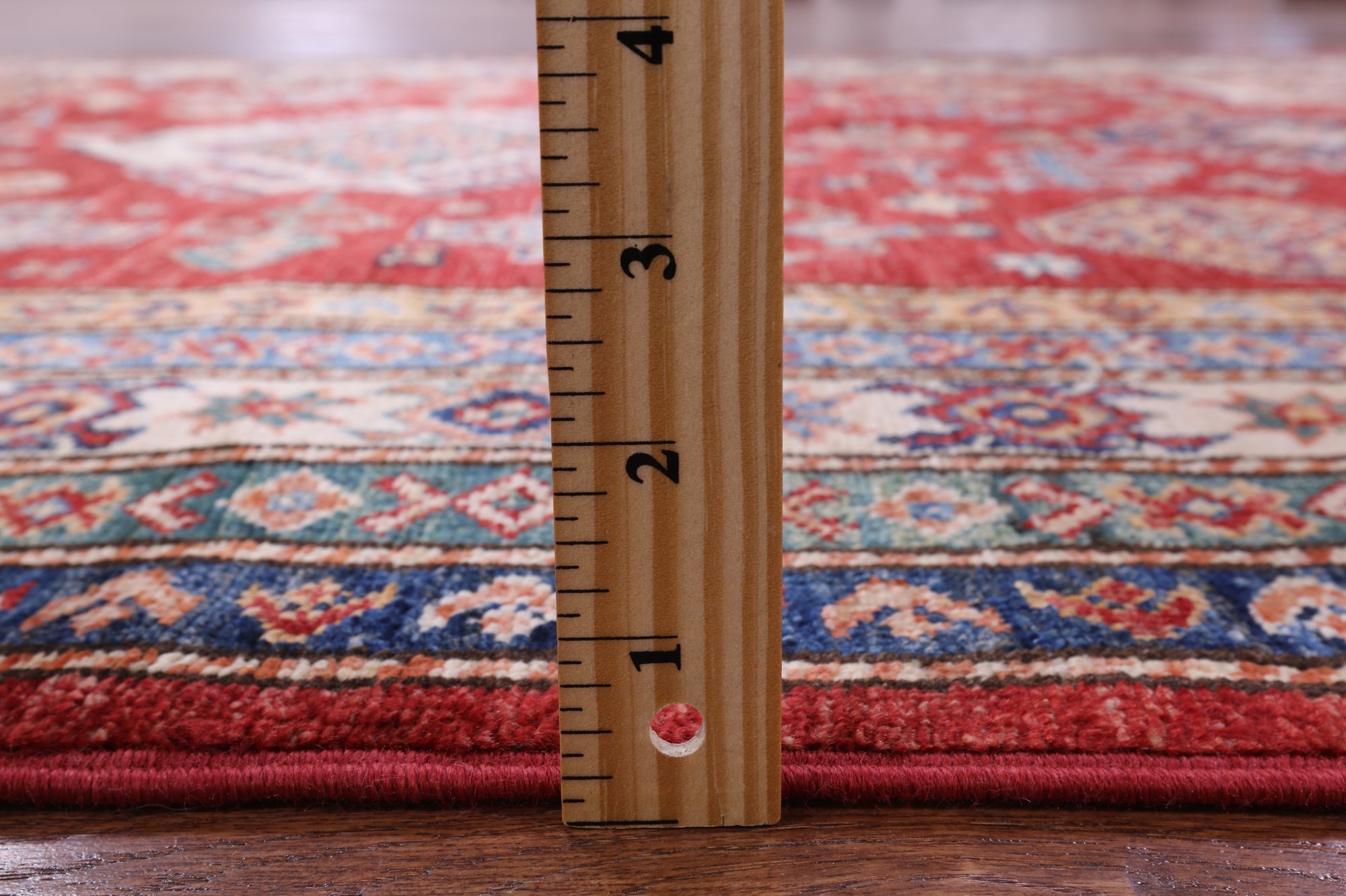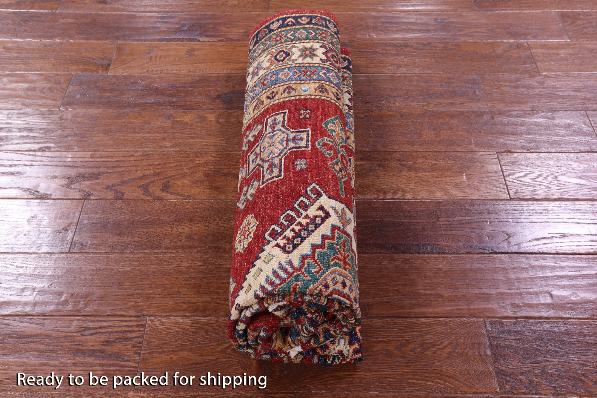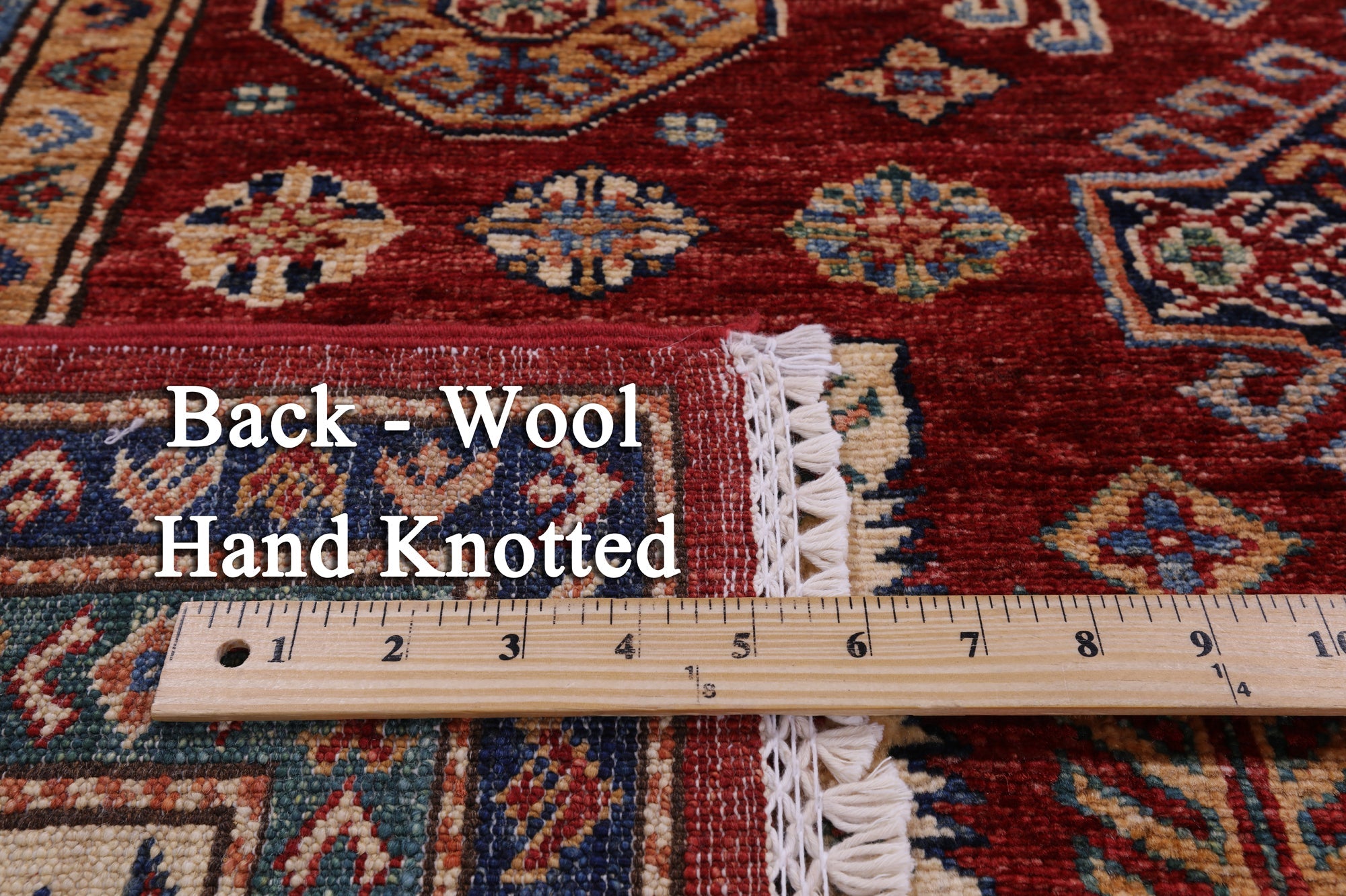 Red Geometric Super Kazak Handmade Wool Rug 5' 0" X 6' 11" - Q12942 is backordered and will ship as soon as it is back in stock.