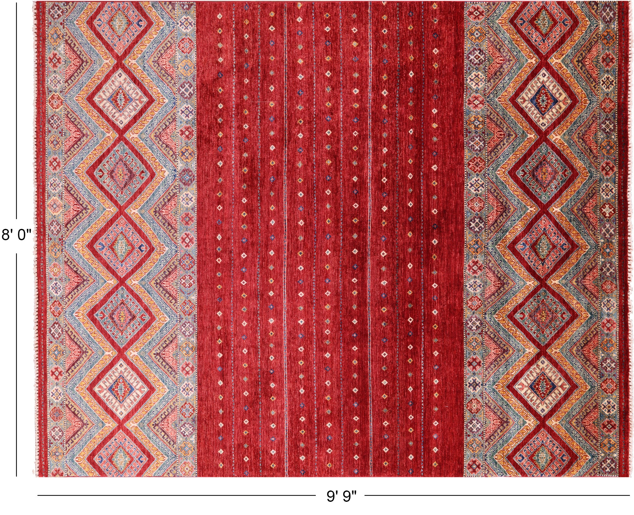 Red 8' 0" X 9' 9" Hand-Knotted Khorjin Super Kazak Wool Rug - Q10744