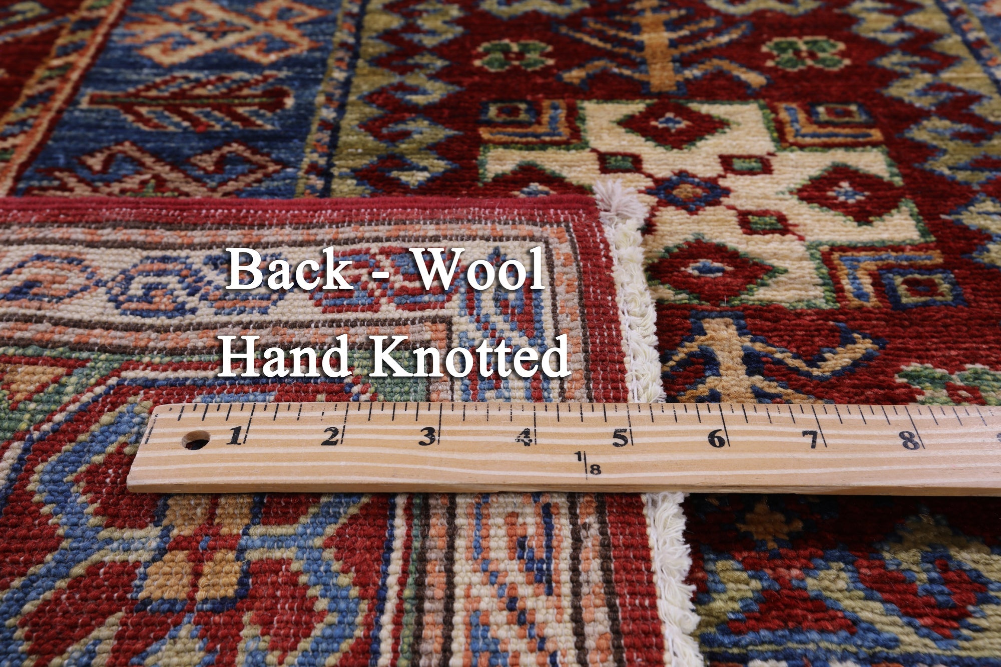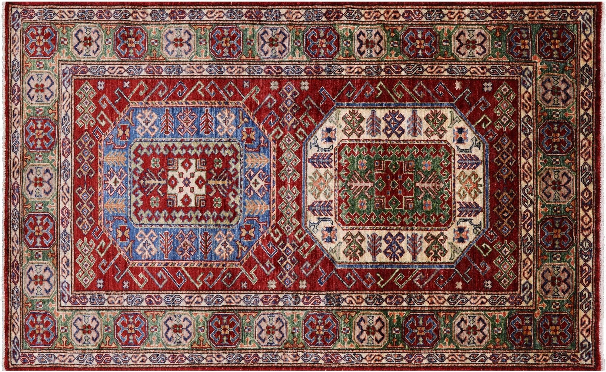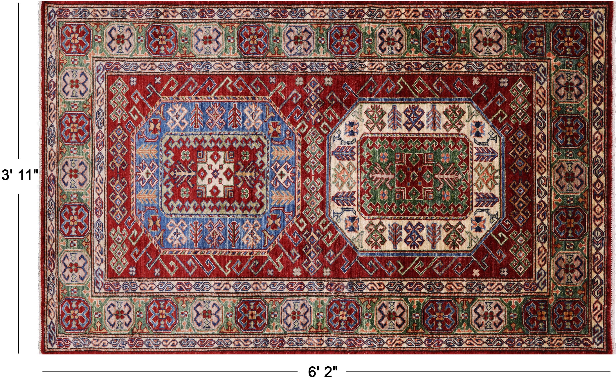 Red Hand Knotted Super Kazak Geometric Rug 3' 11" X 6' 2" - Q14540