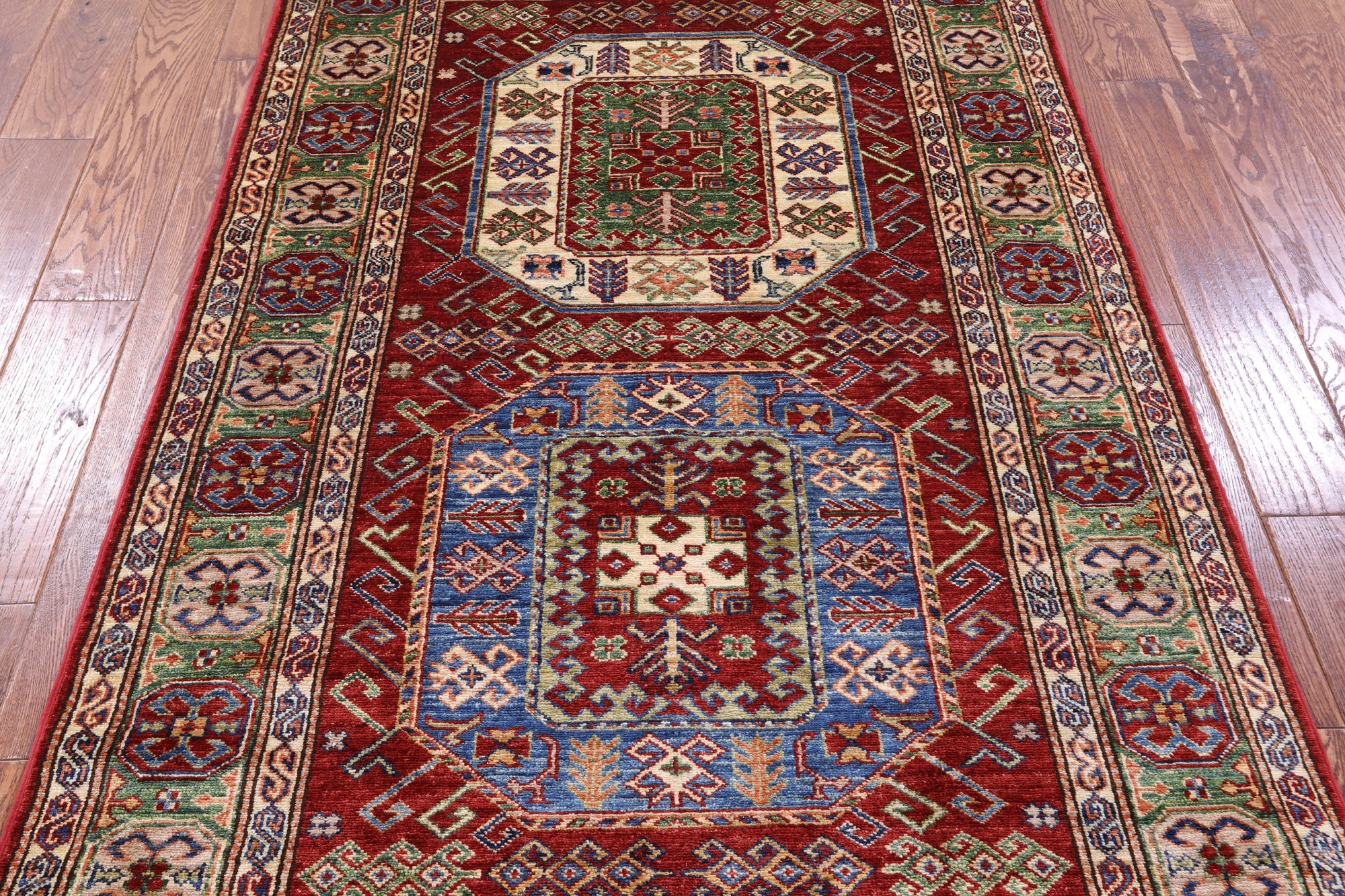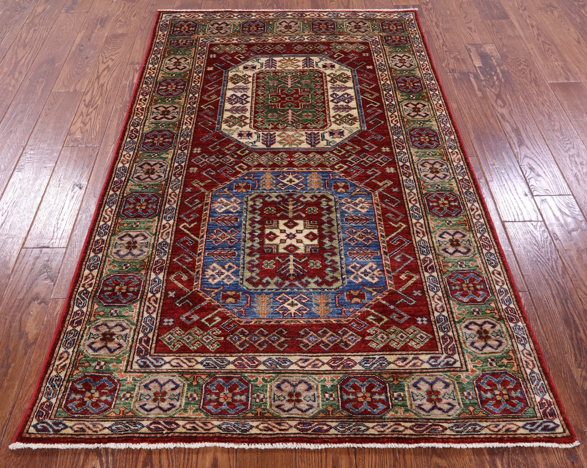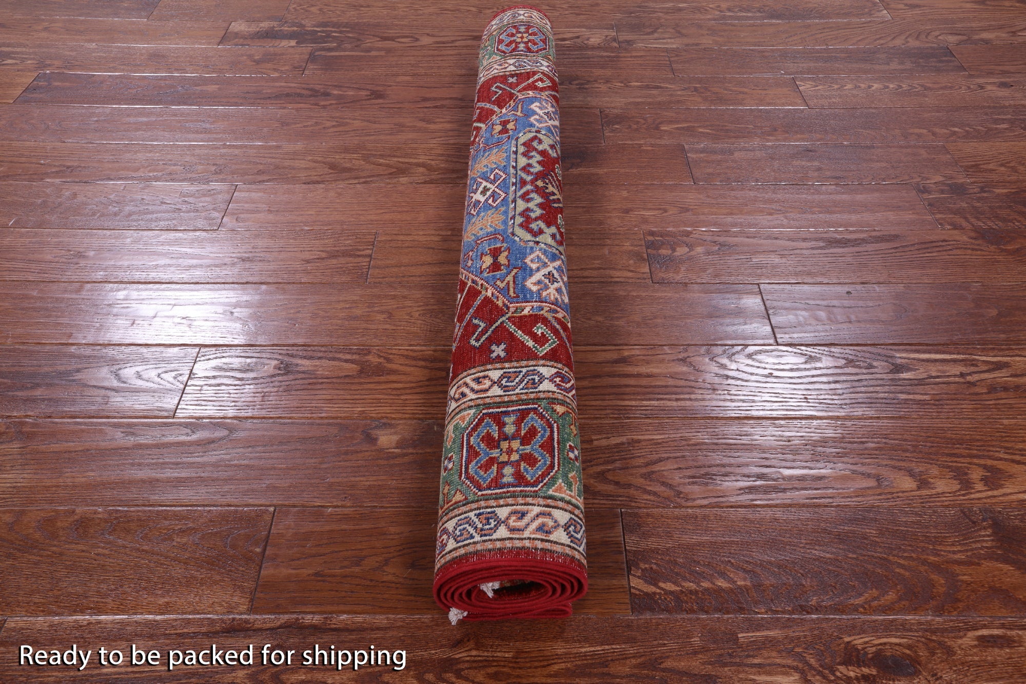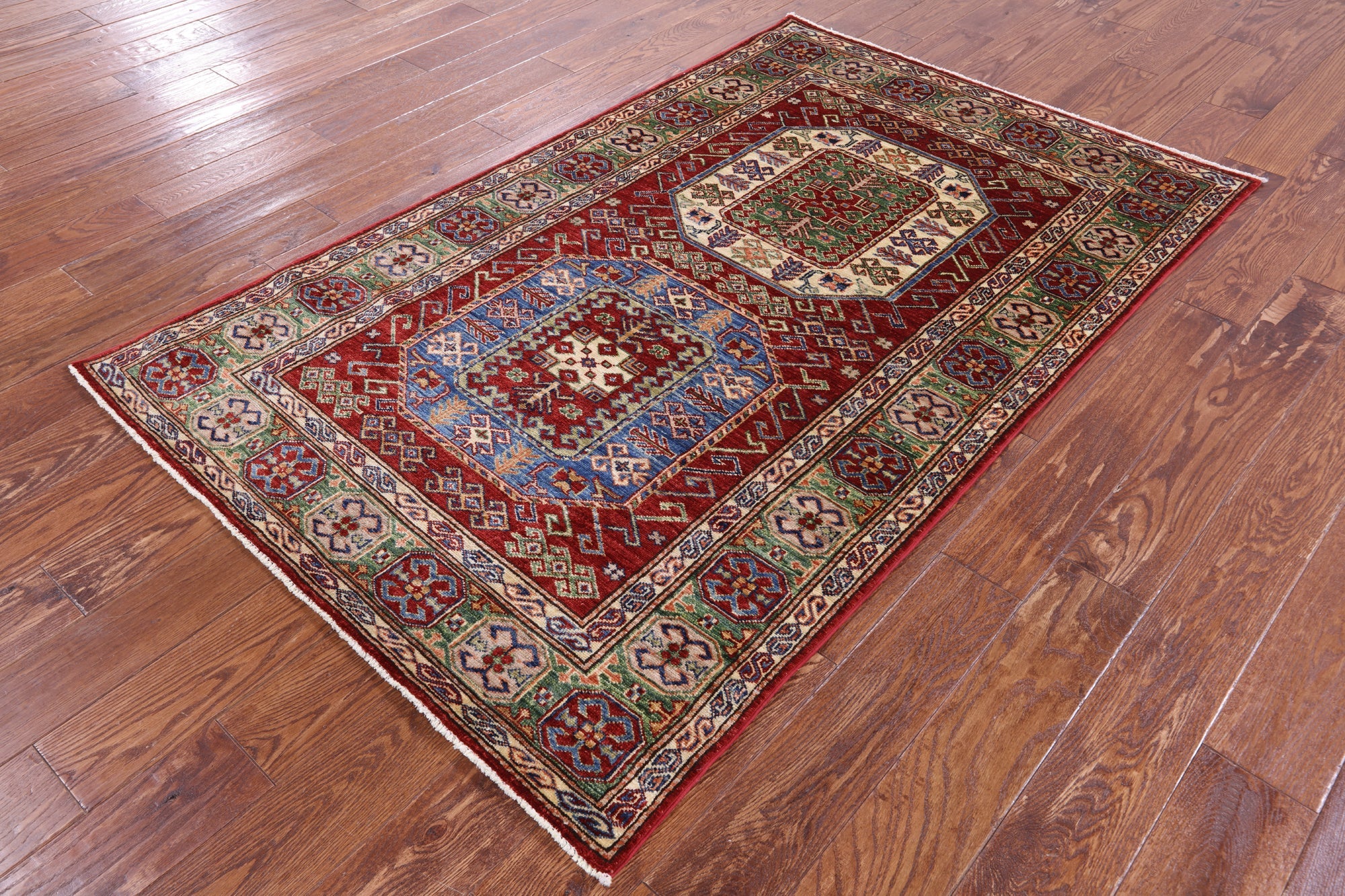 Red Hand Knotted Super Kazak Geometric Rug 3' 11" X 6' 2" - Q14540