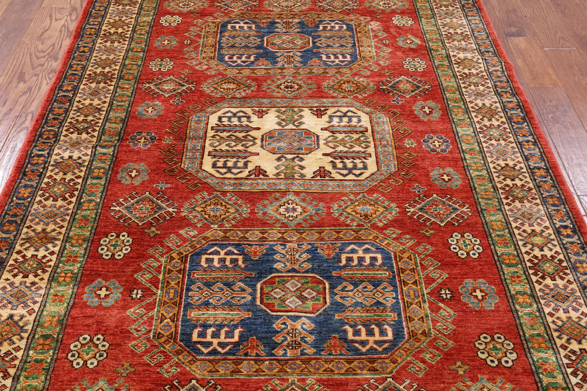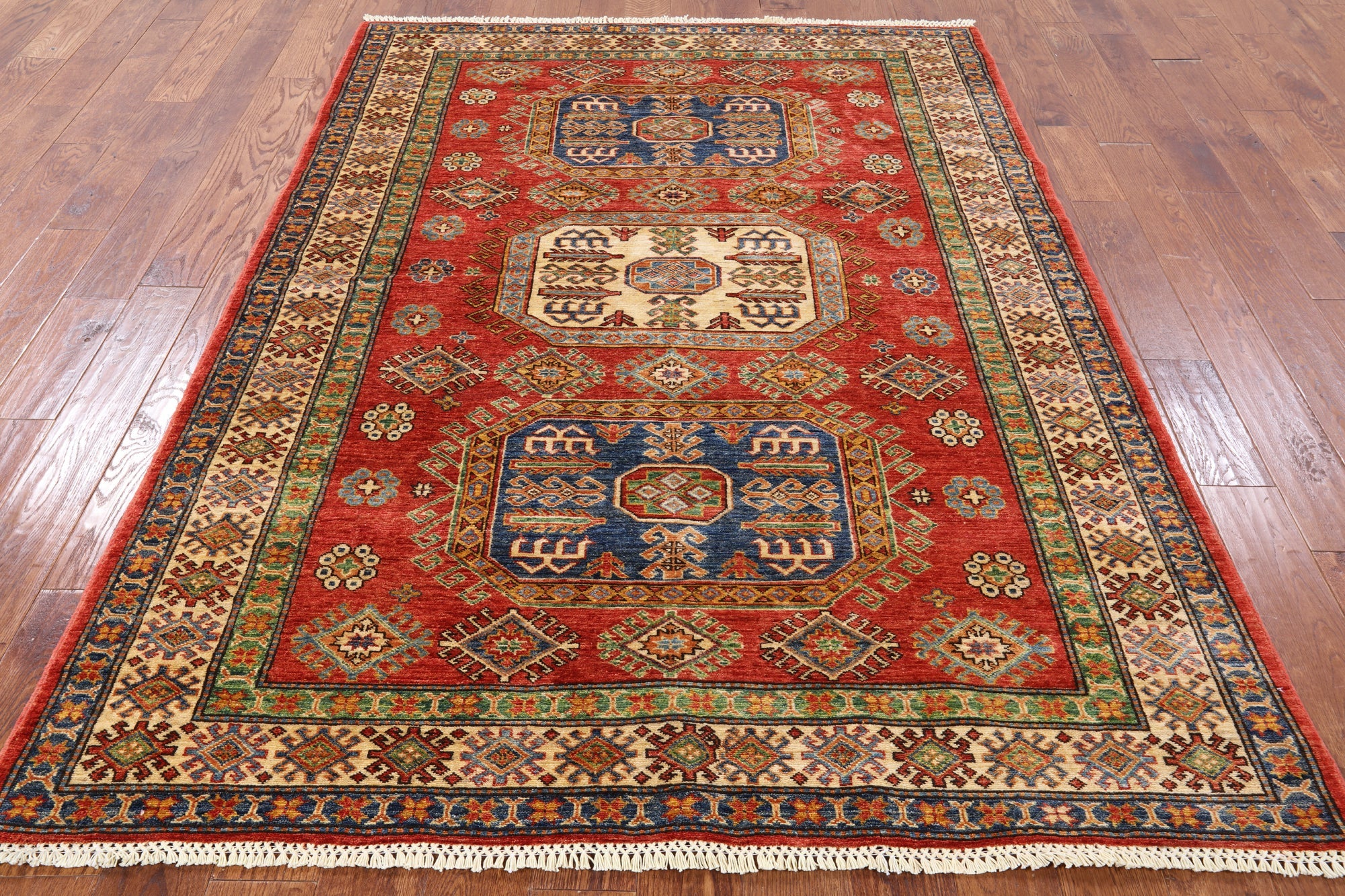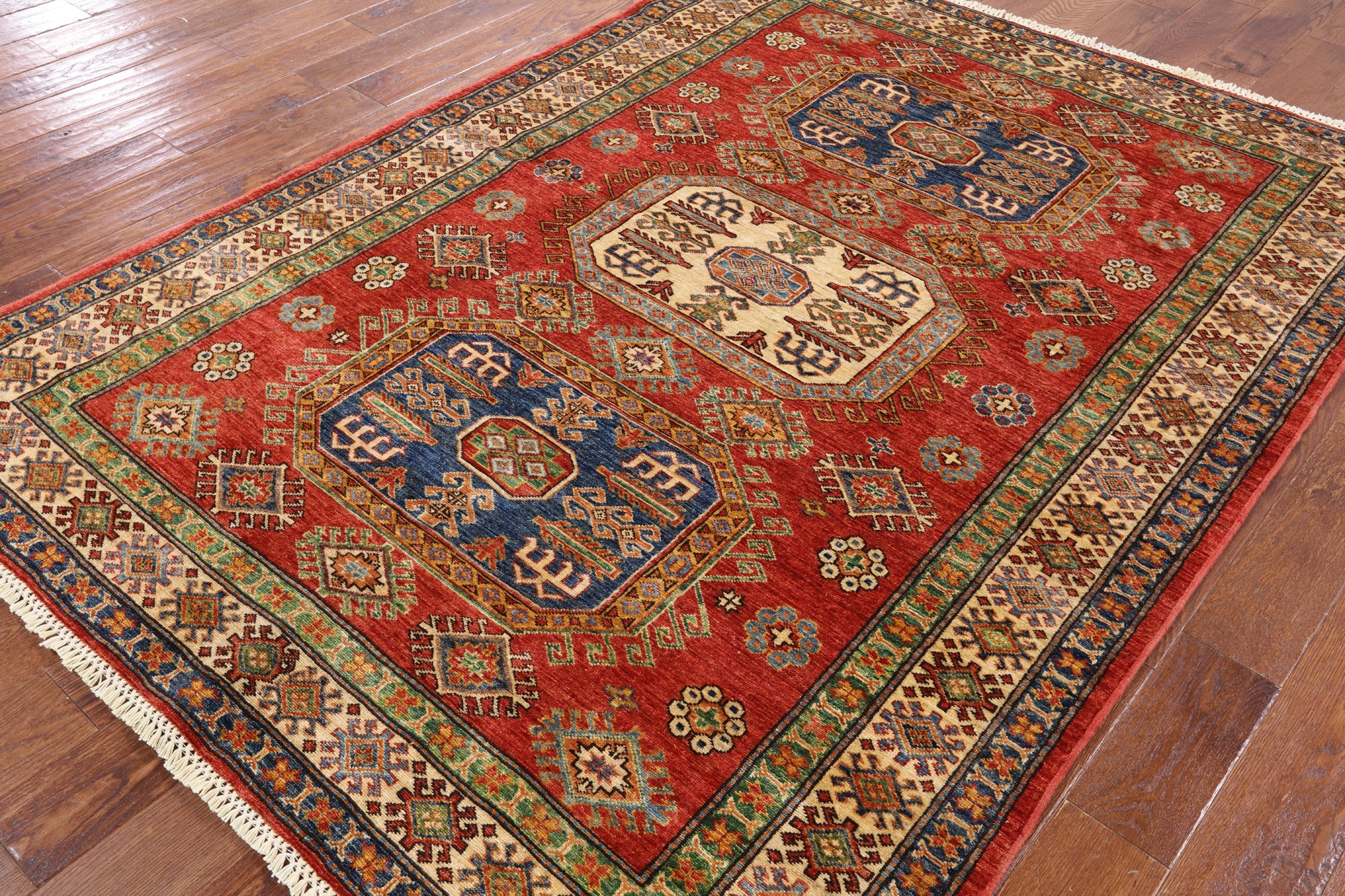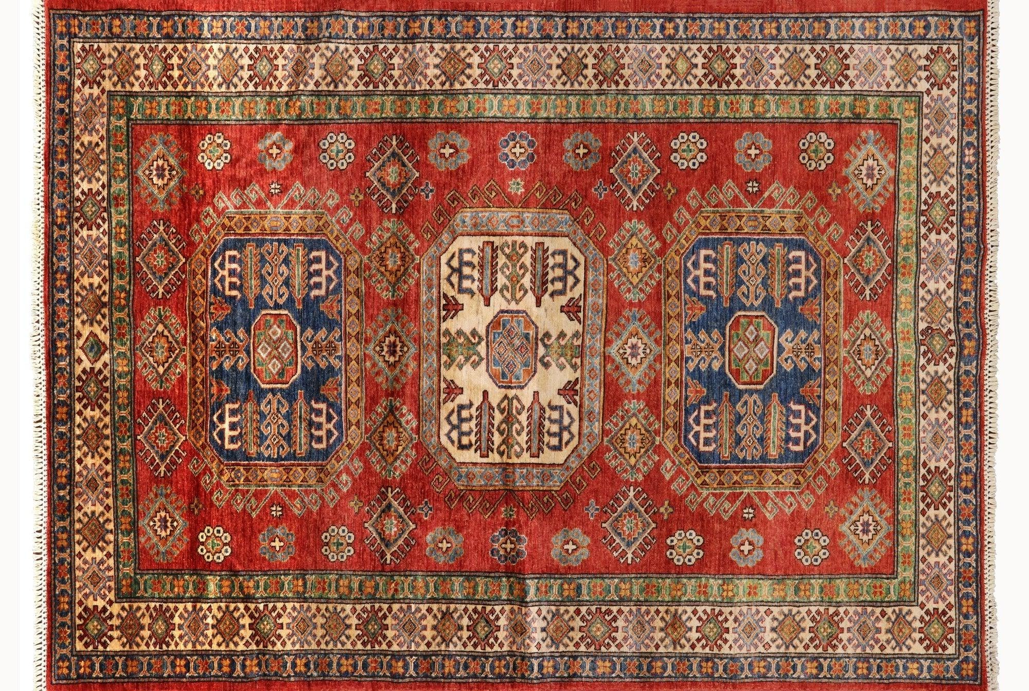 Kazak Rugs are popular for their stunning geometric designs & high quality dyes. Kazak patterns tend to be red, yellow/gold and blue. Designs include, but are not limited to animals, flowers, medallions, & iconic figures such as geometric people/ and animals & symbolic motifs.