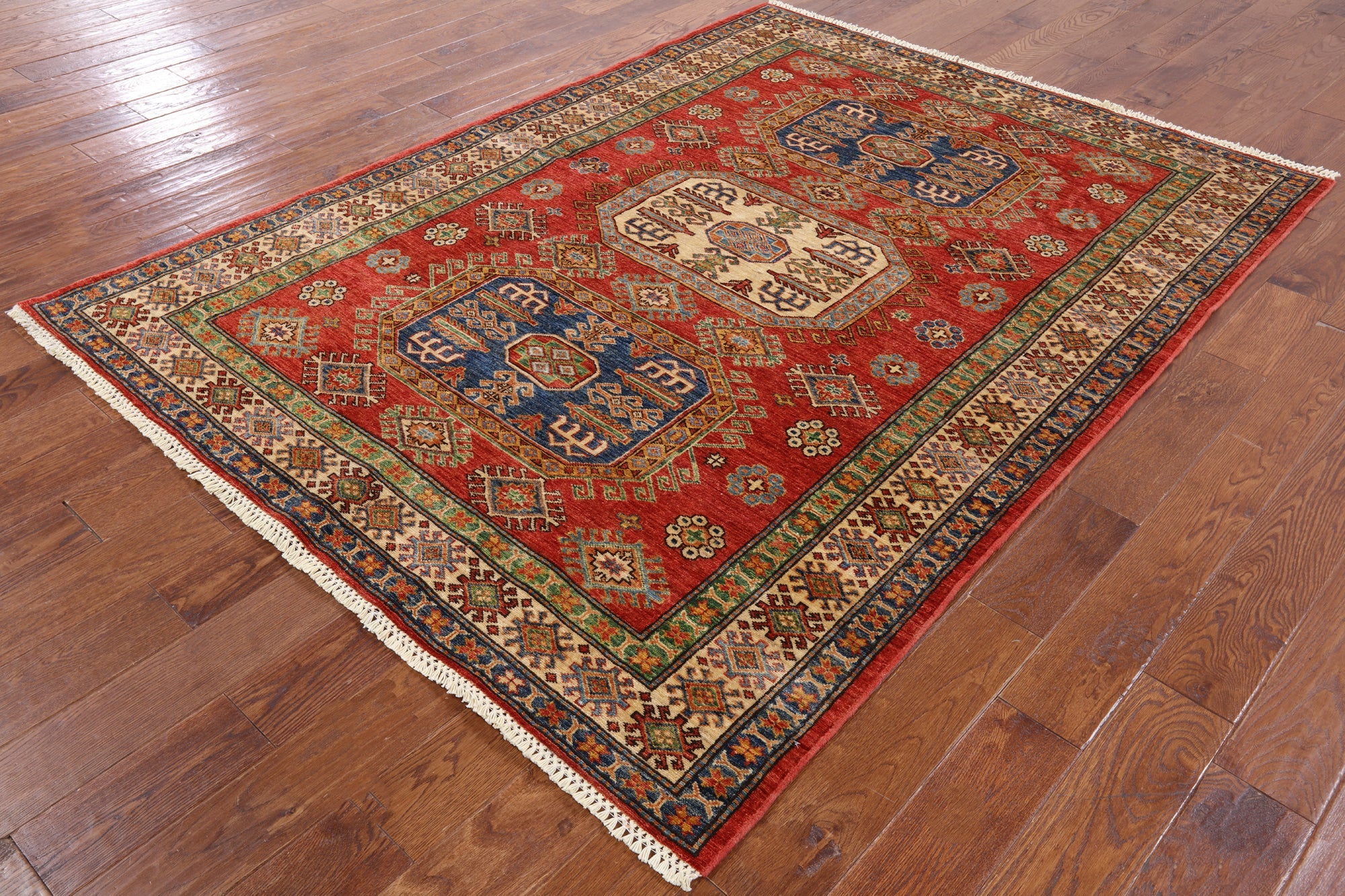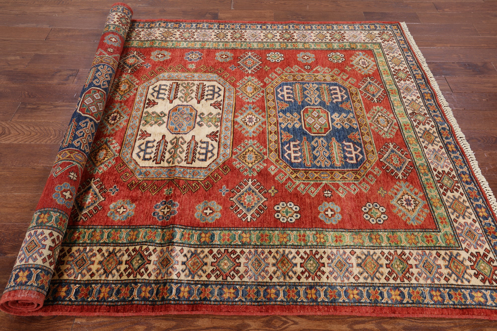 Red 5' 7" X 7' 8" Hand Knotted Super Kazak Wool Rug - P8952