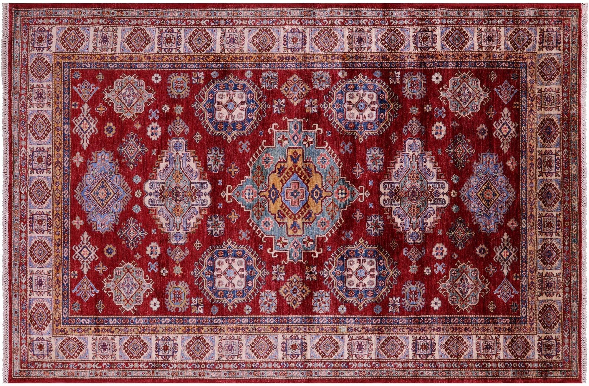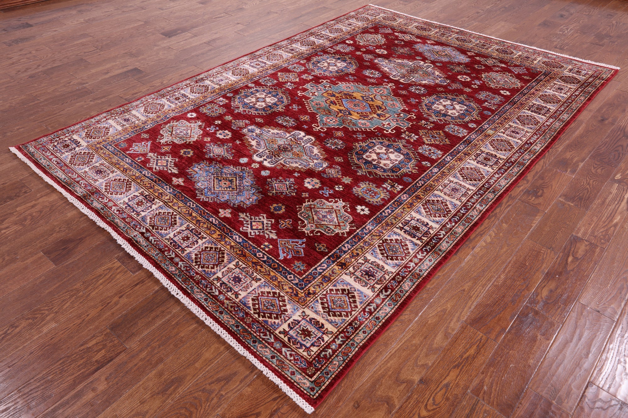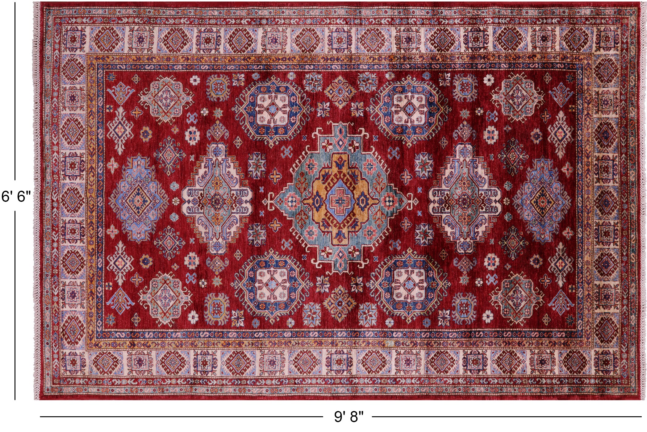 Red Hand Knotted Super Kazak Wool Rug 6' 6" X 9' 8" - Q10250