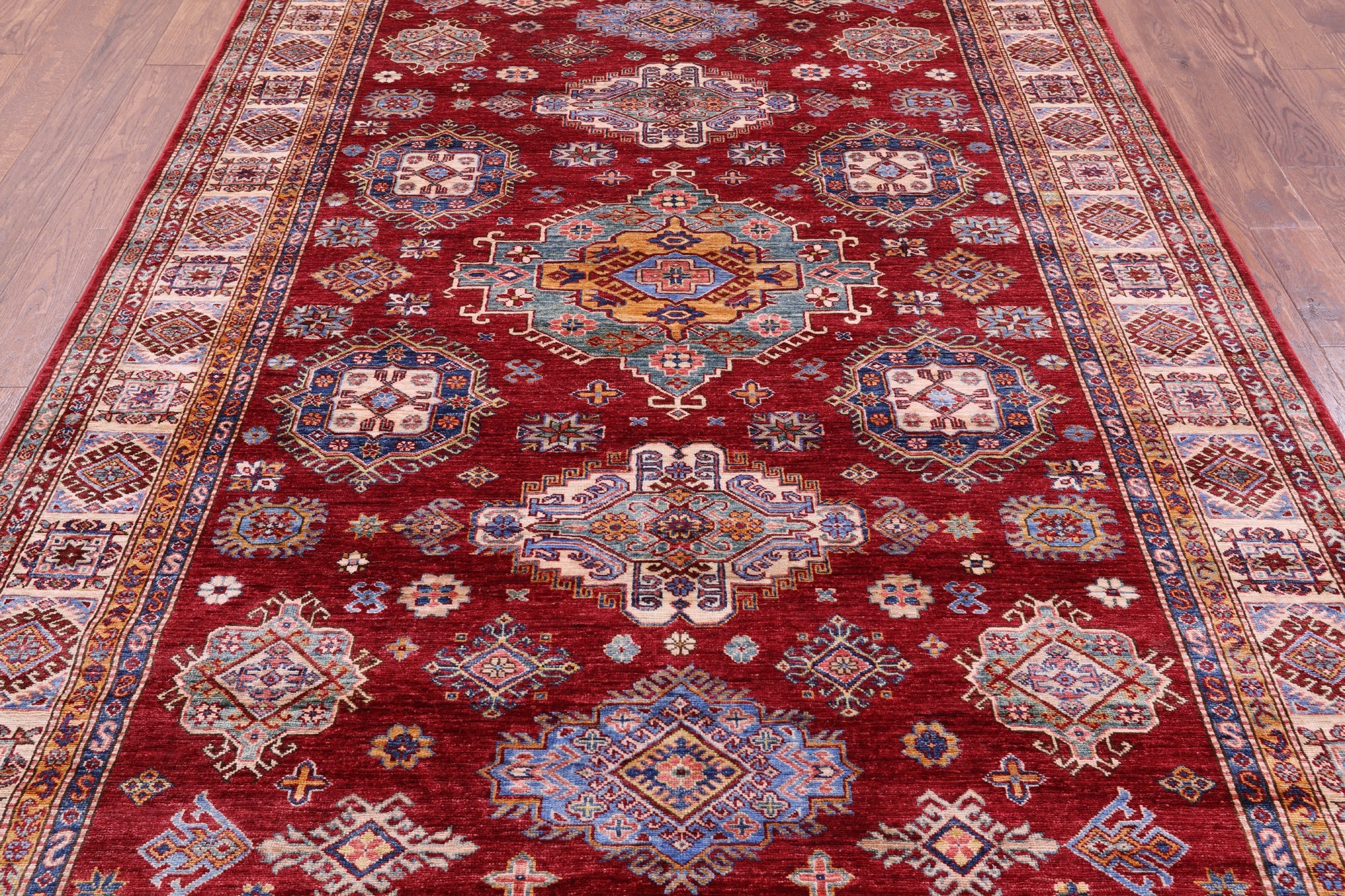 Super Kazak rugs were woven in the south of Caucasus and are very regional in their designs. Super Kazak rugs are very traditional in look and the patterns can vary from geometric shapes, tribal designs like people and animals, and symbolic medallions. They are beautifully intricate and heavy in design. These rugs come in varieties of rich, warm, jewel tones that can liven up any space.