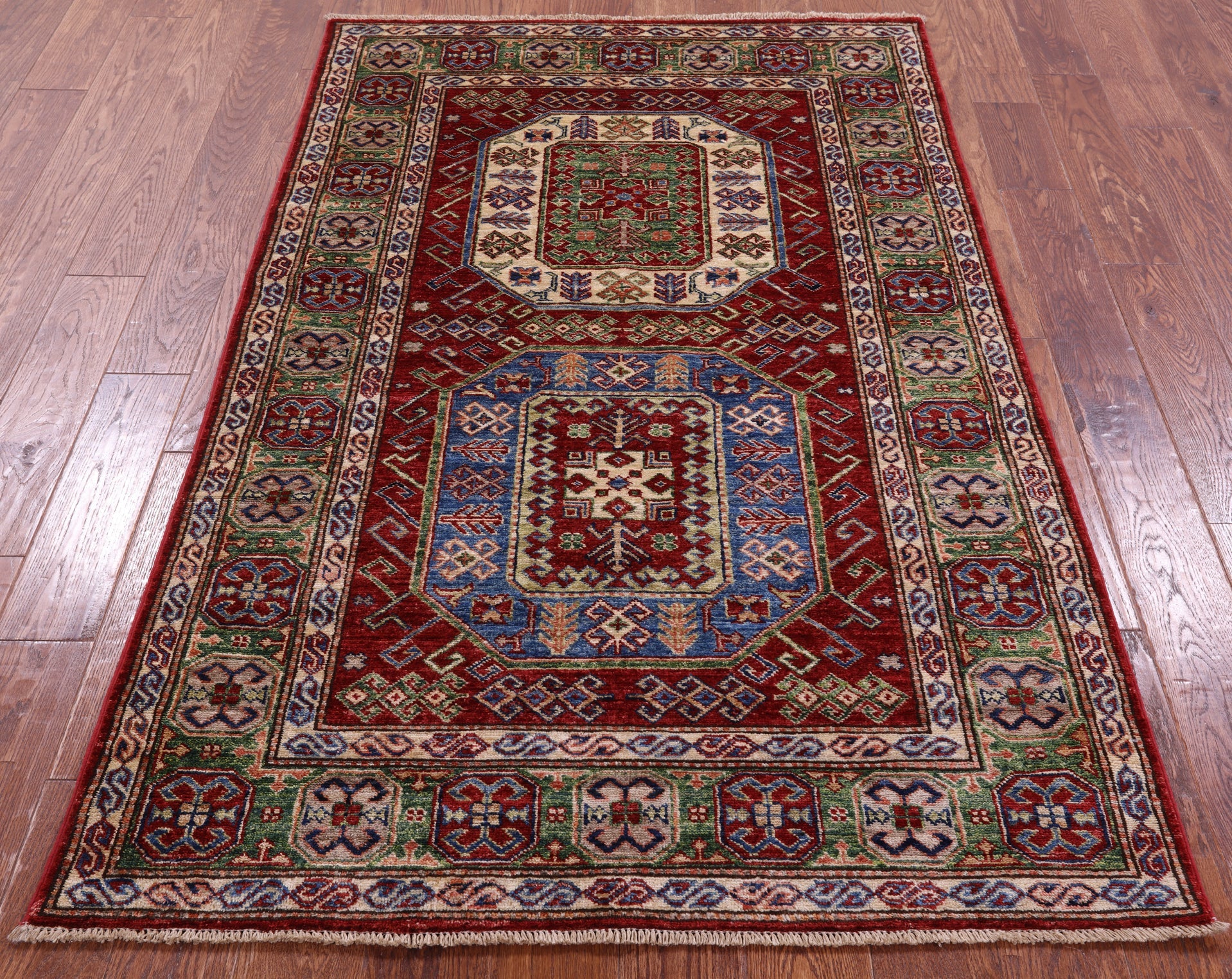 Red 4' 0" X 6' 1" Hand-Knotted Super Kazak Wool Rug - Q18183 is backordered and will ship as soon as it is back in stock.