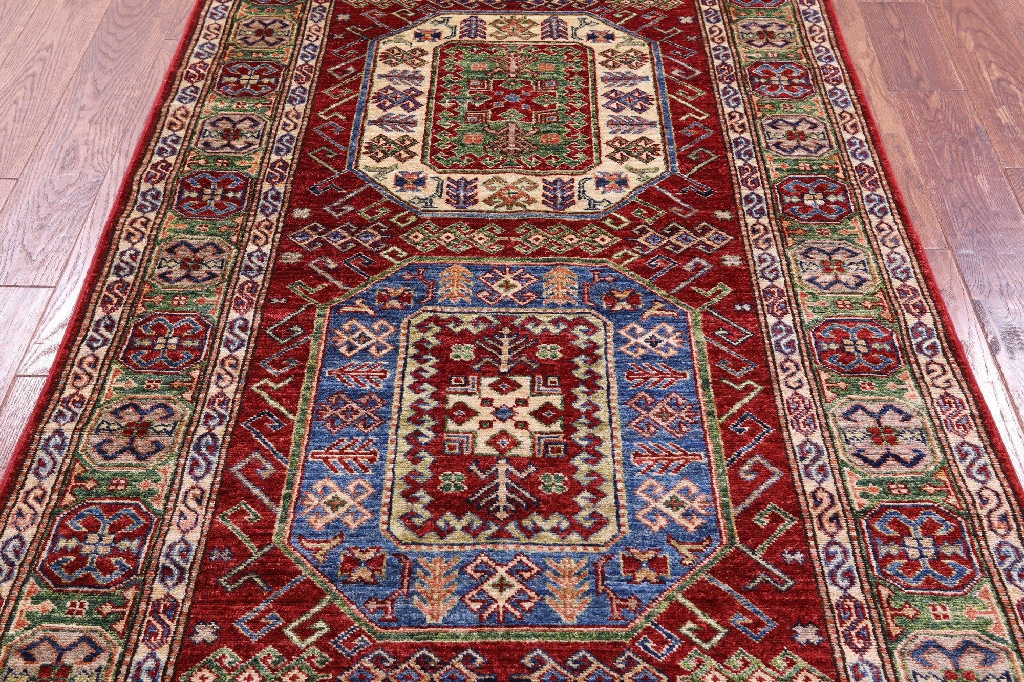 Super Kazak rugs were woven in the south of Caucasus and are very regional in their designs. Super Kazak rugs are very traditional in look and the patterns can vary from geometric shapes, tribal designs like people and animals, and symbolic medallions. They are beautifully intricate and heavy in design. These rugs come in varieties of rich, warm, jewel tones that can liven up any space.