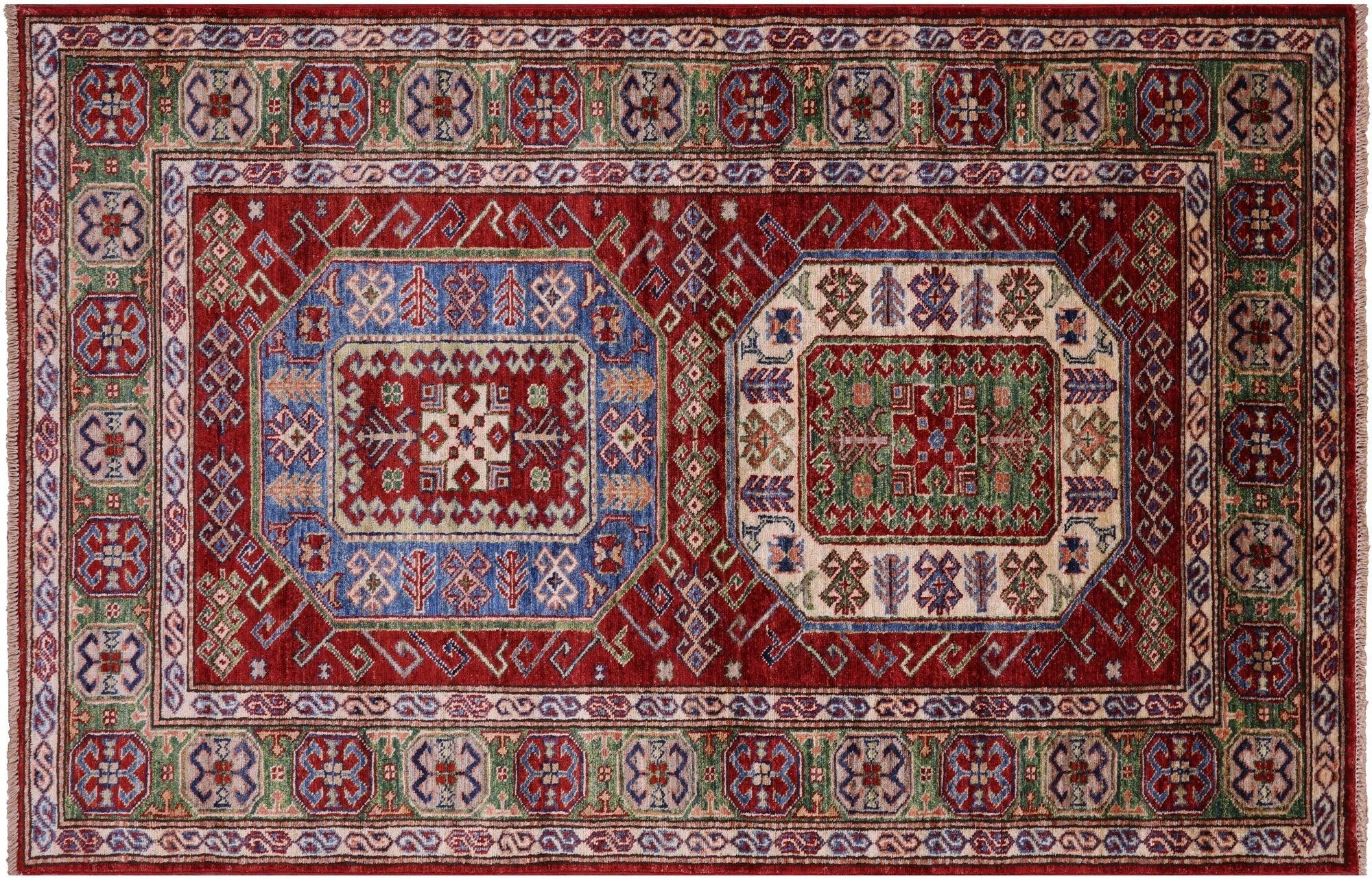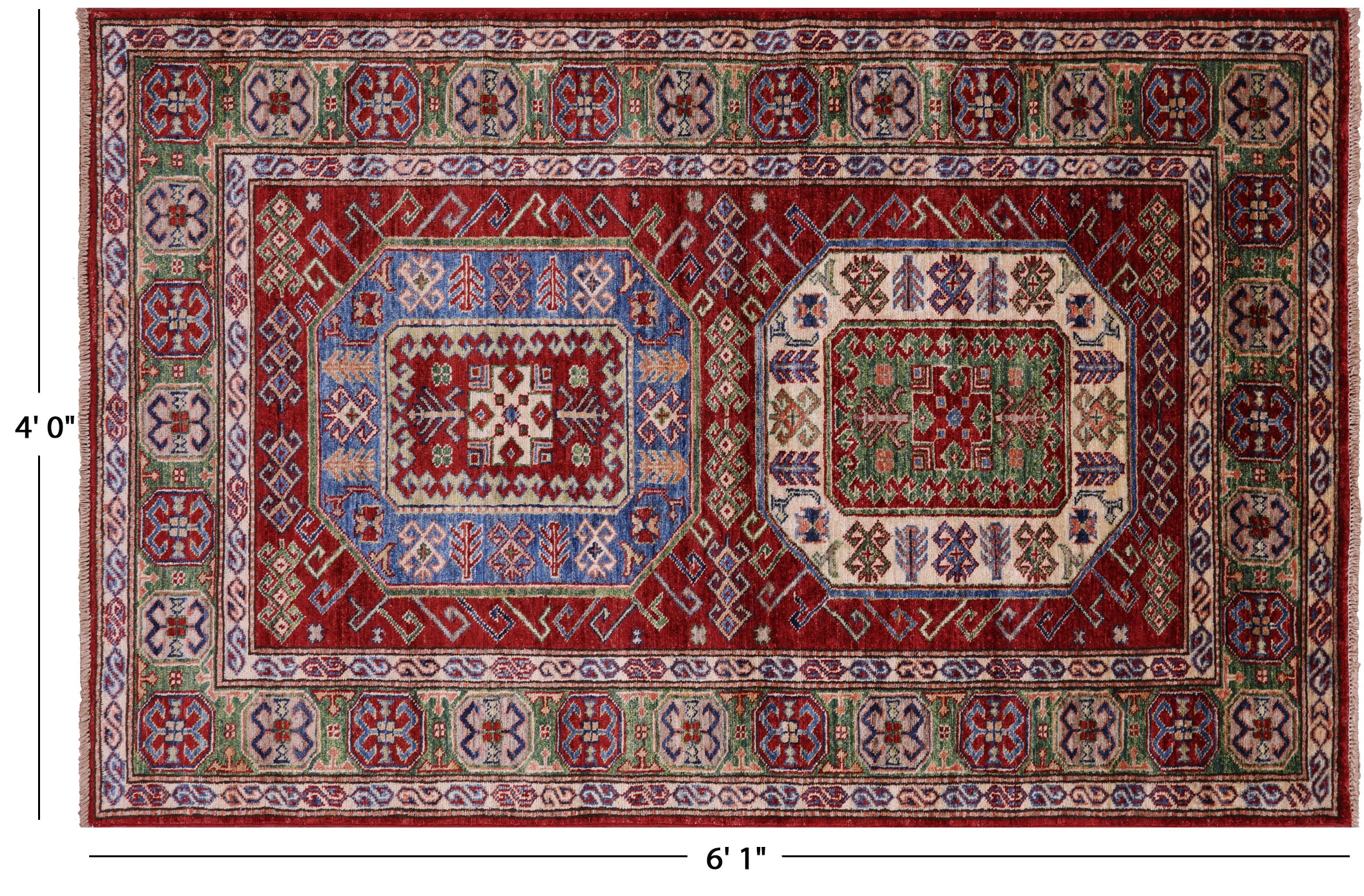 Red 4' 0" X 6' 1" Hand-Knotted Super Kazak Wool Rug - Q18183