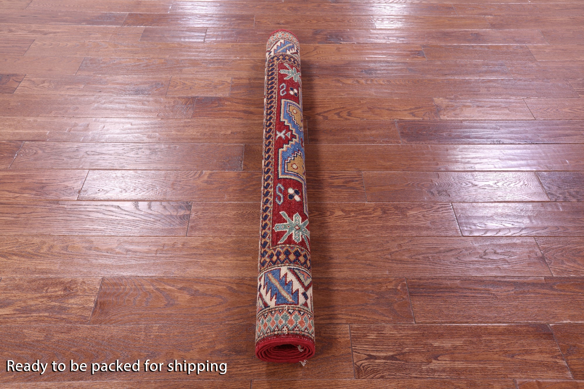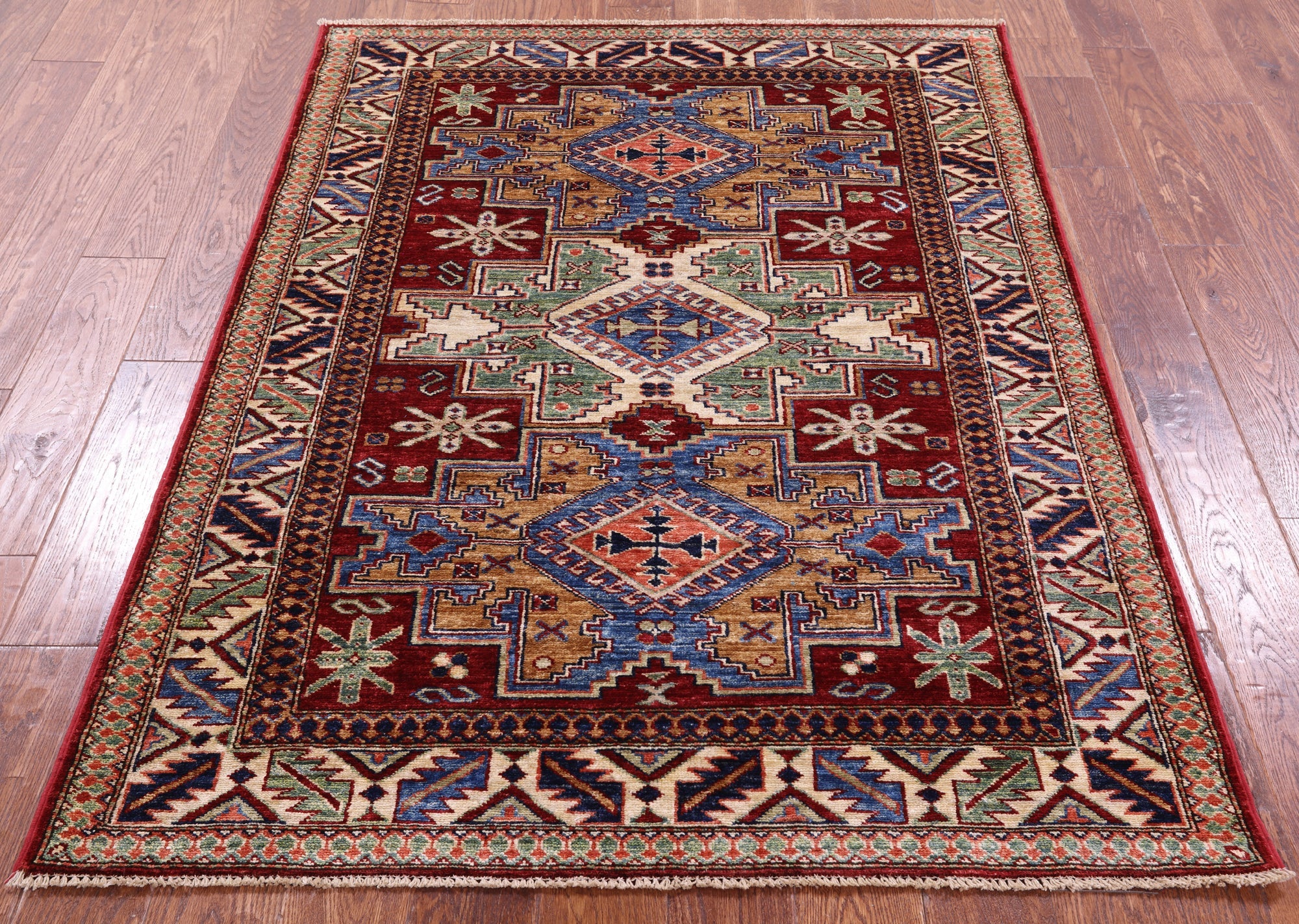Red Handmade Super Kazak Wool Rug 4' 2" X 5' 6" - Q18194 is backordered and will ship as soon as it is back in stock.