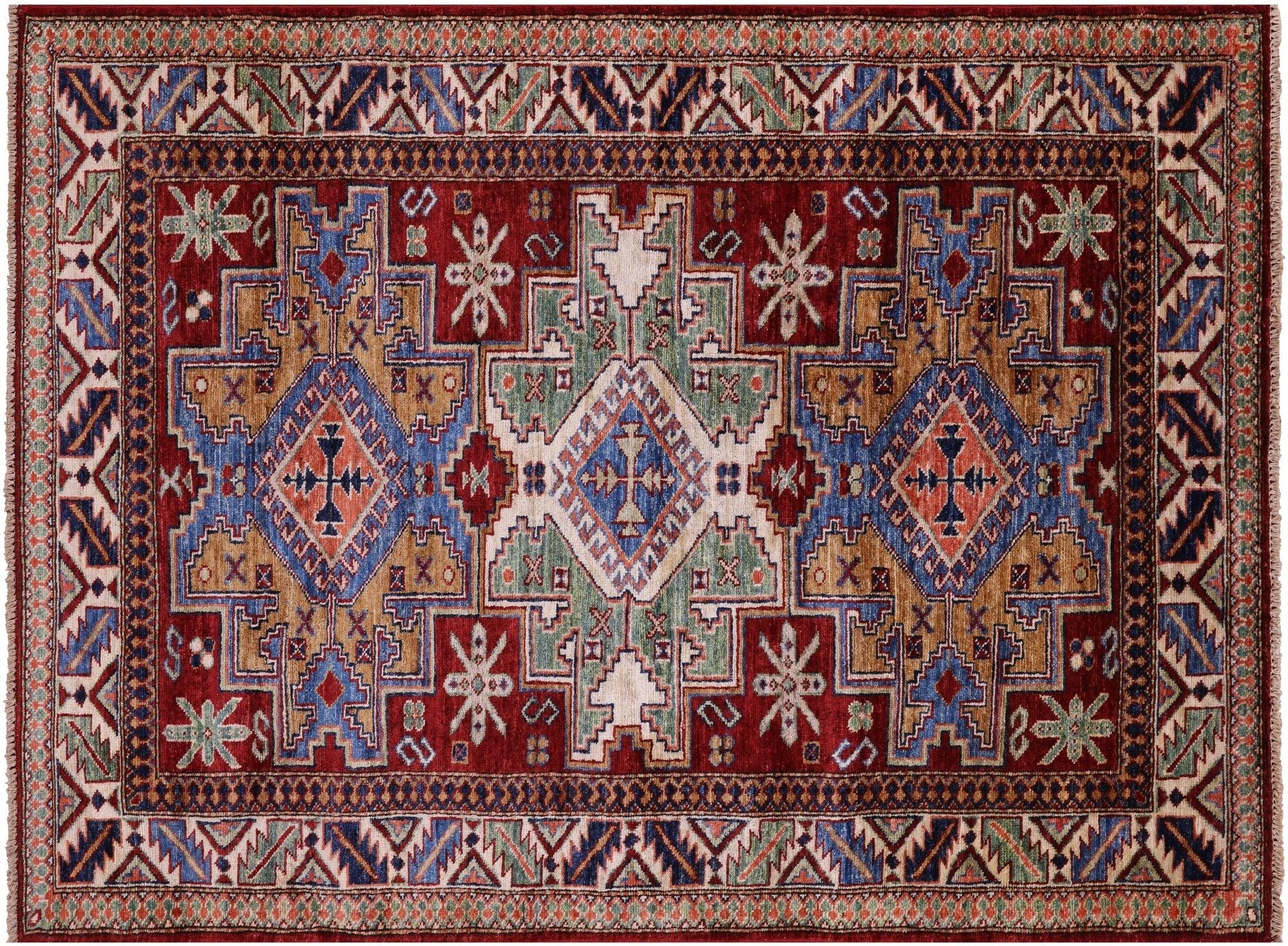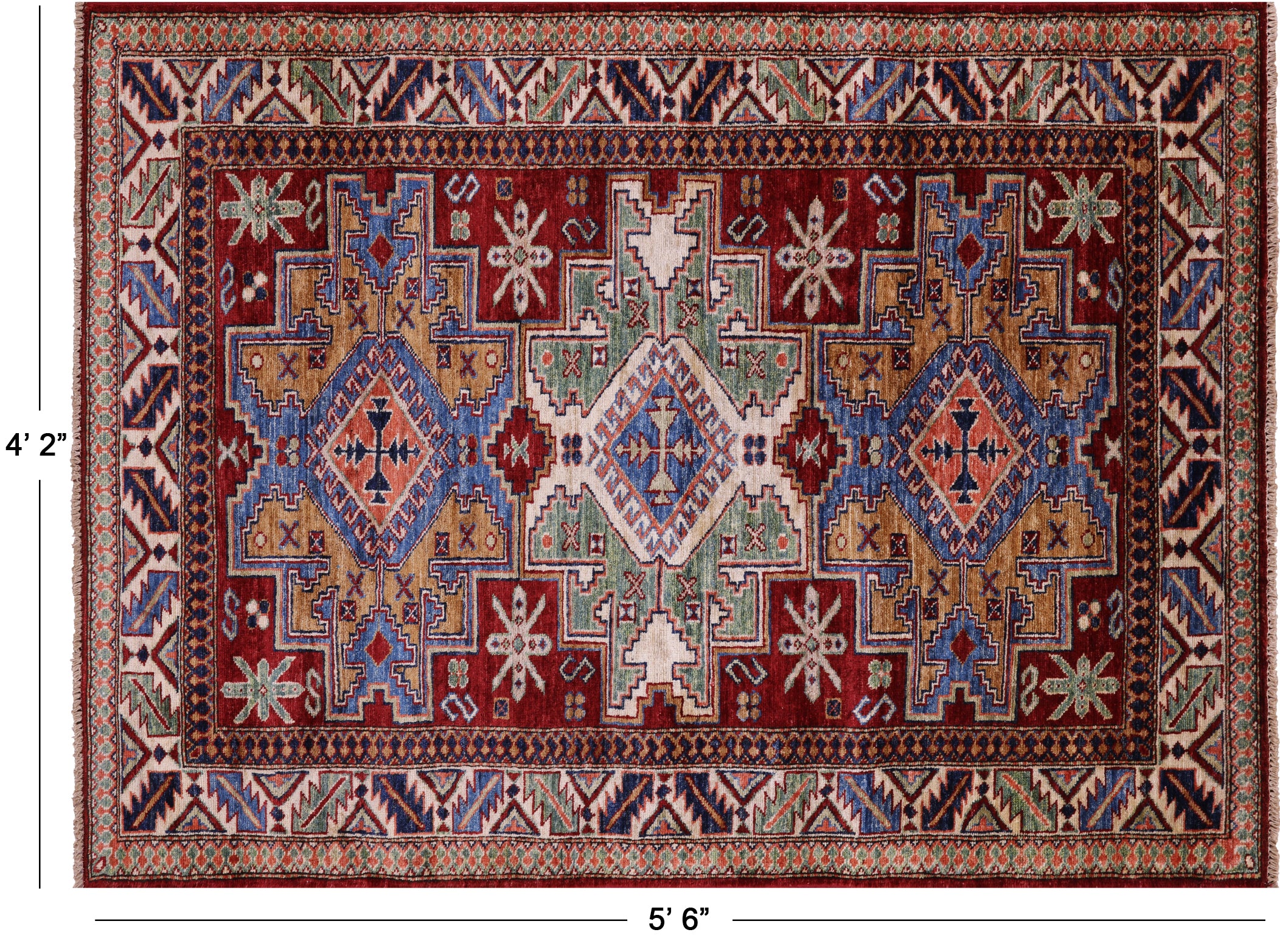 Red Handmade Super Kazak Wool Rug 4' 2" X 5' 6" - Q18194