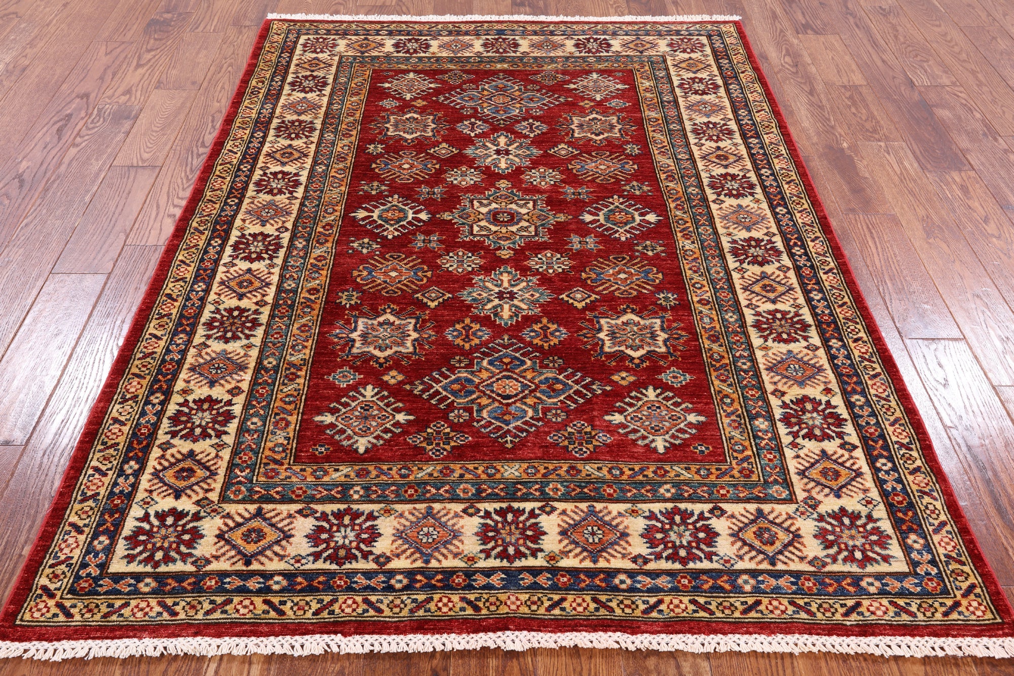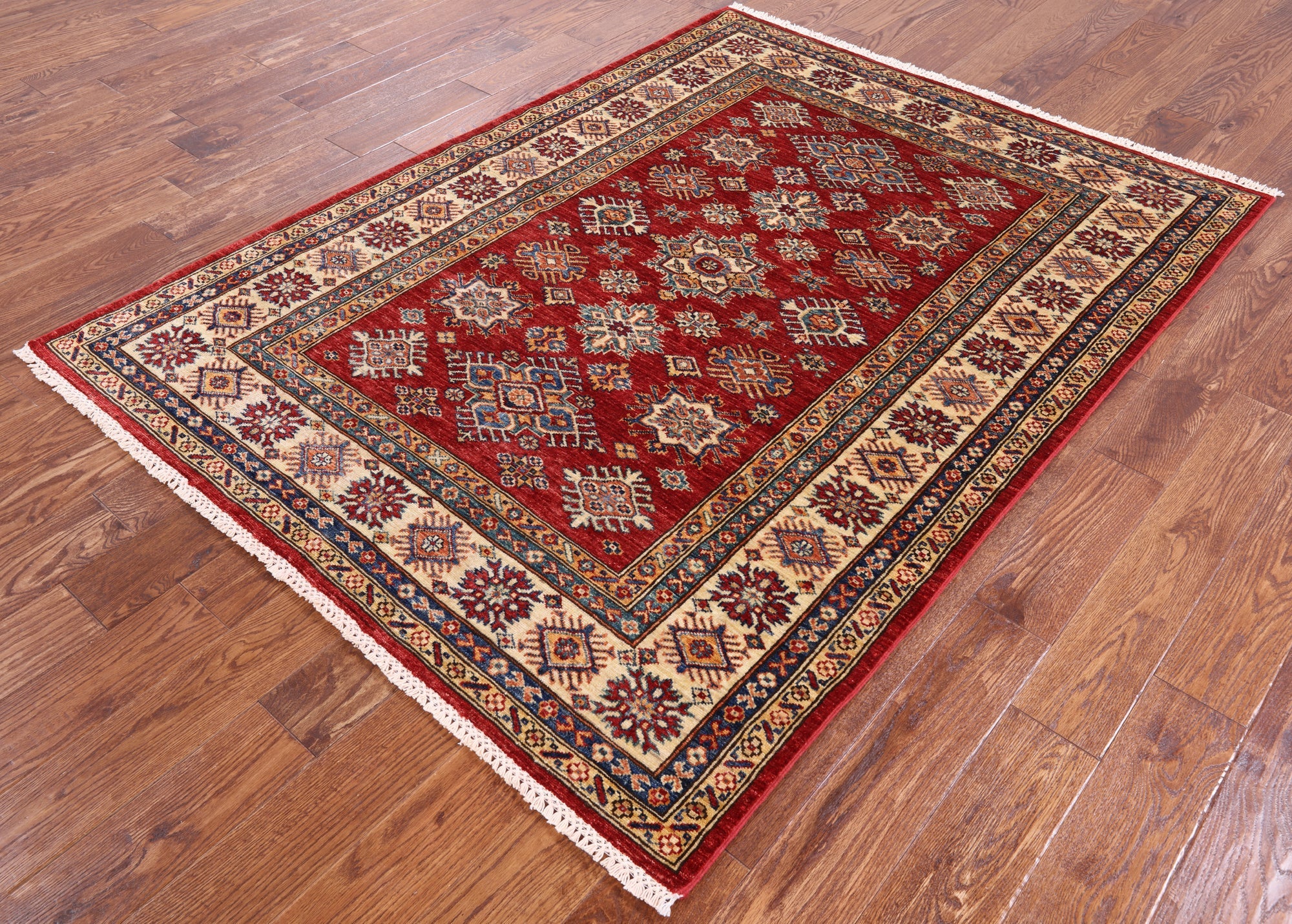 Red Super Kazak Geometric Hand Knotted Wool Area Rug 5' 0" X 6' 9" - P9045