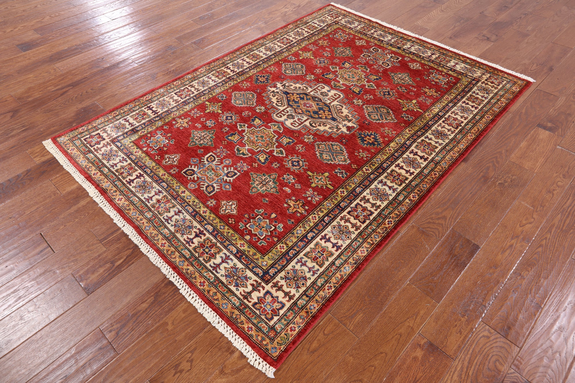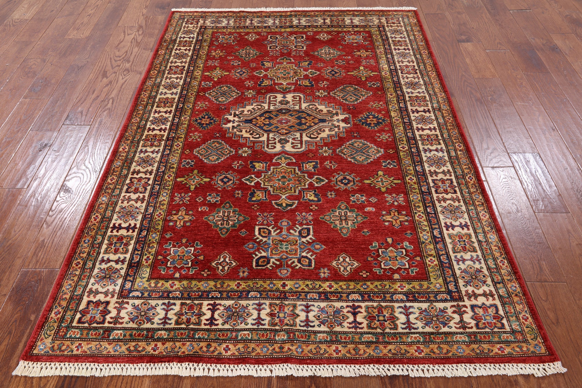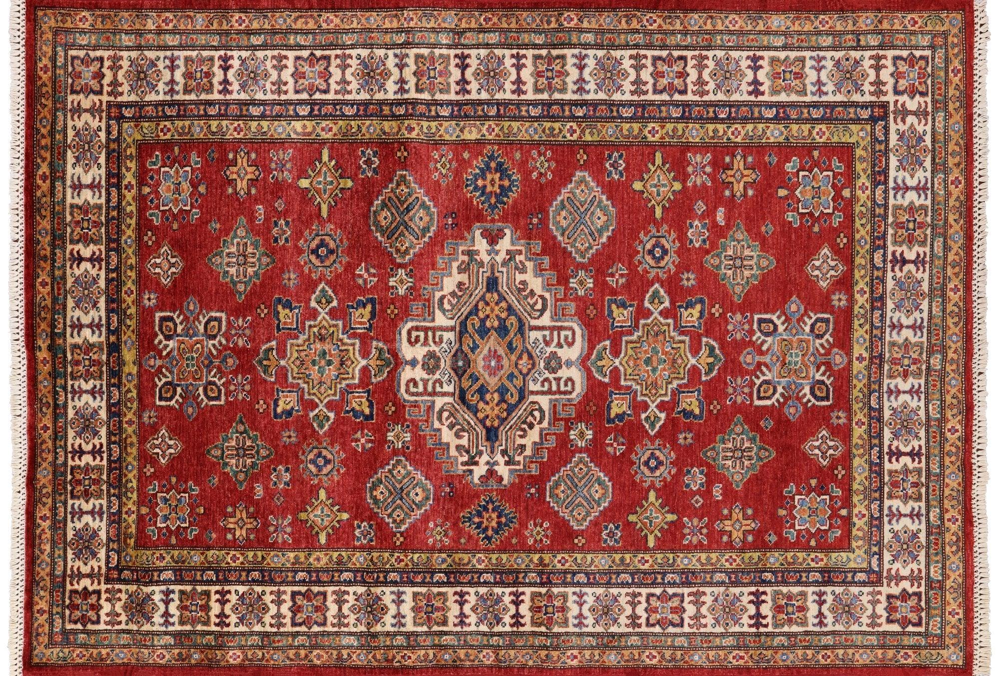 Red 4' 11" X 6' 10" Super Kazak Hand Knotted Area Rug - P9032