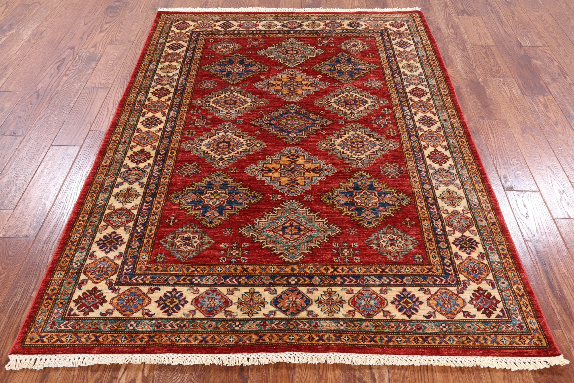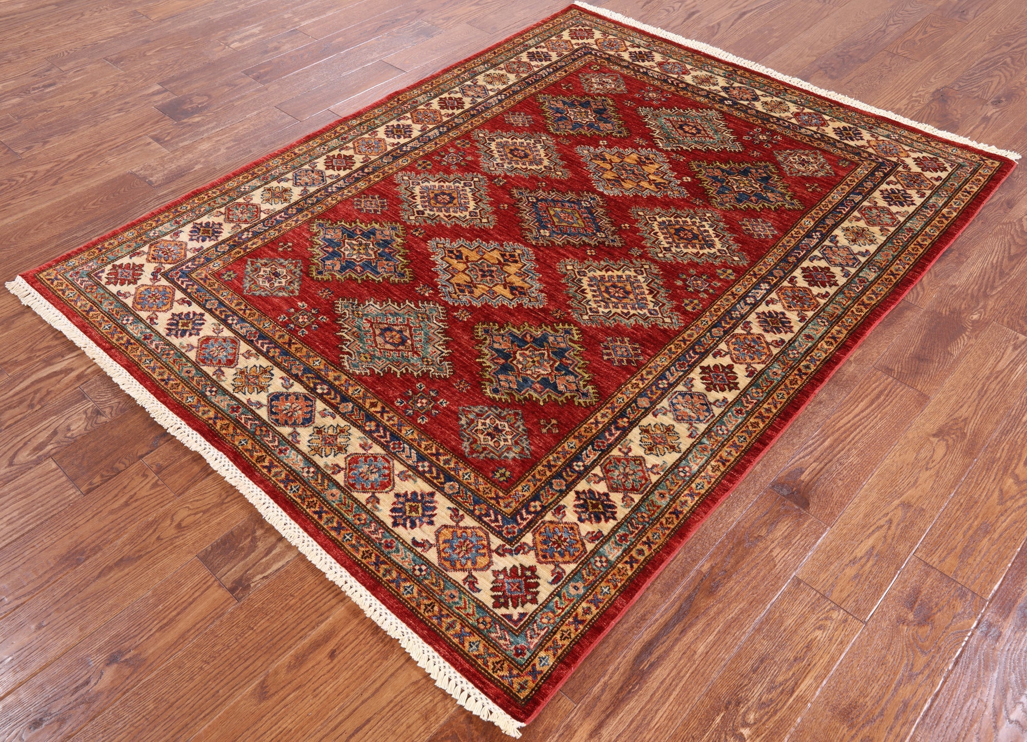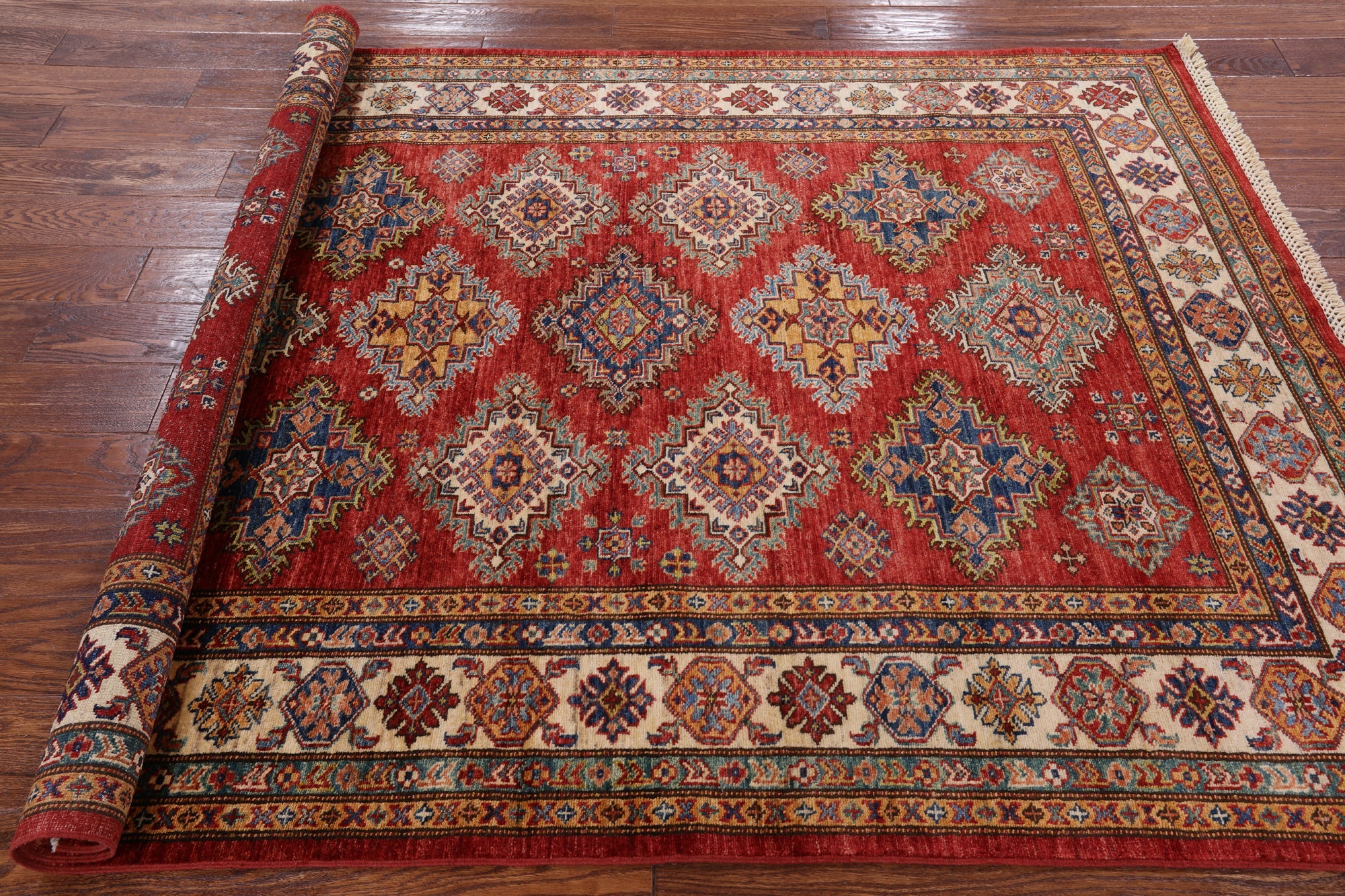 Red Super Kazak Hand Knotted Wool Area Rug 5' 0" X 6' 7" - P9025