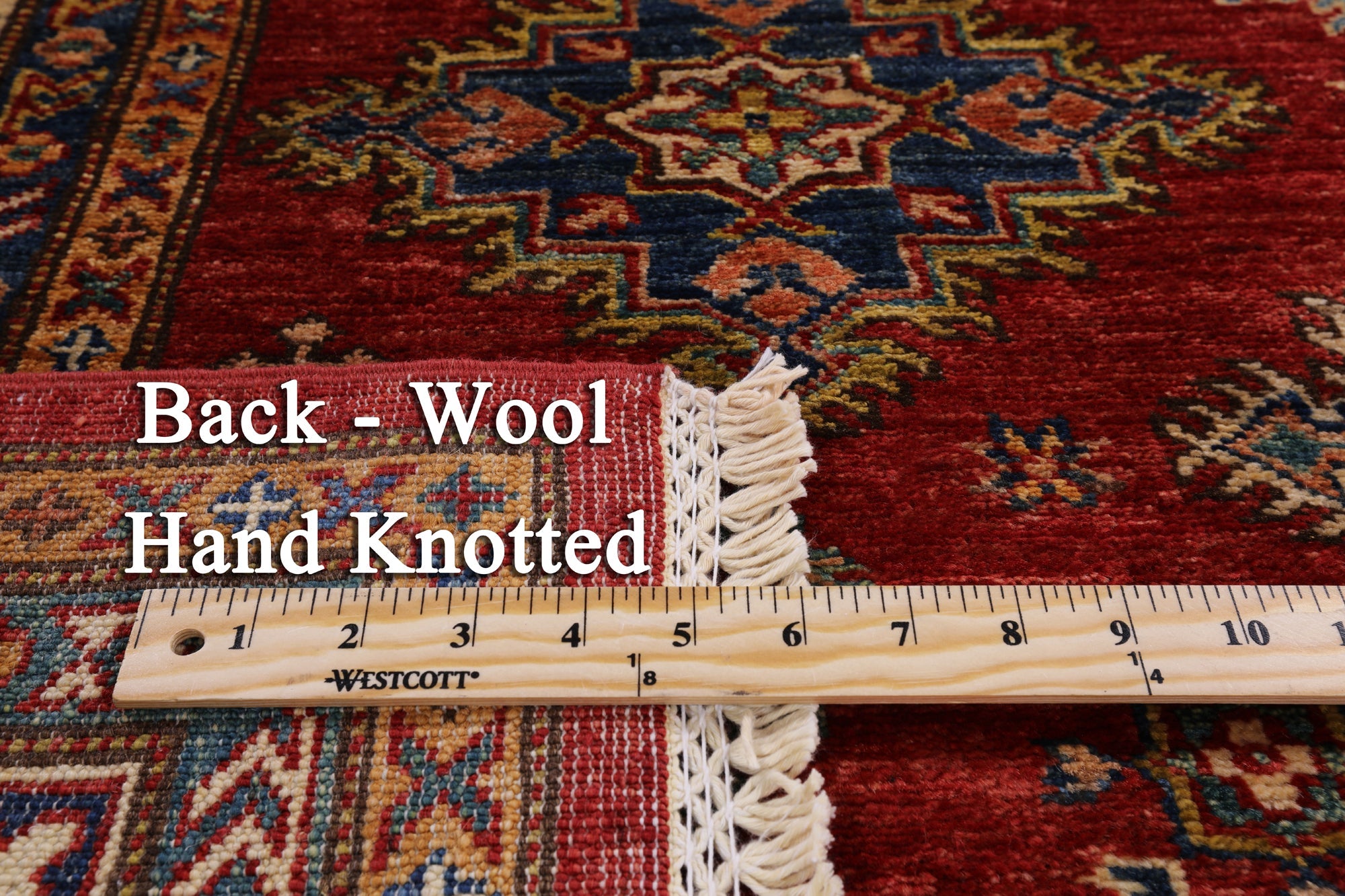 Red Super Kazak Hand Knotted Wool Area Rug 5' 0" X 6' 7" - P9025 is backordered and will ship as soon as it is back in stock.