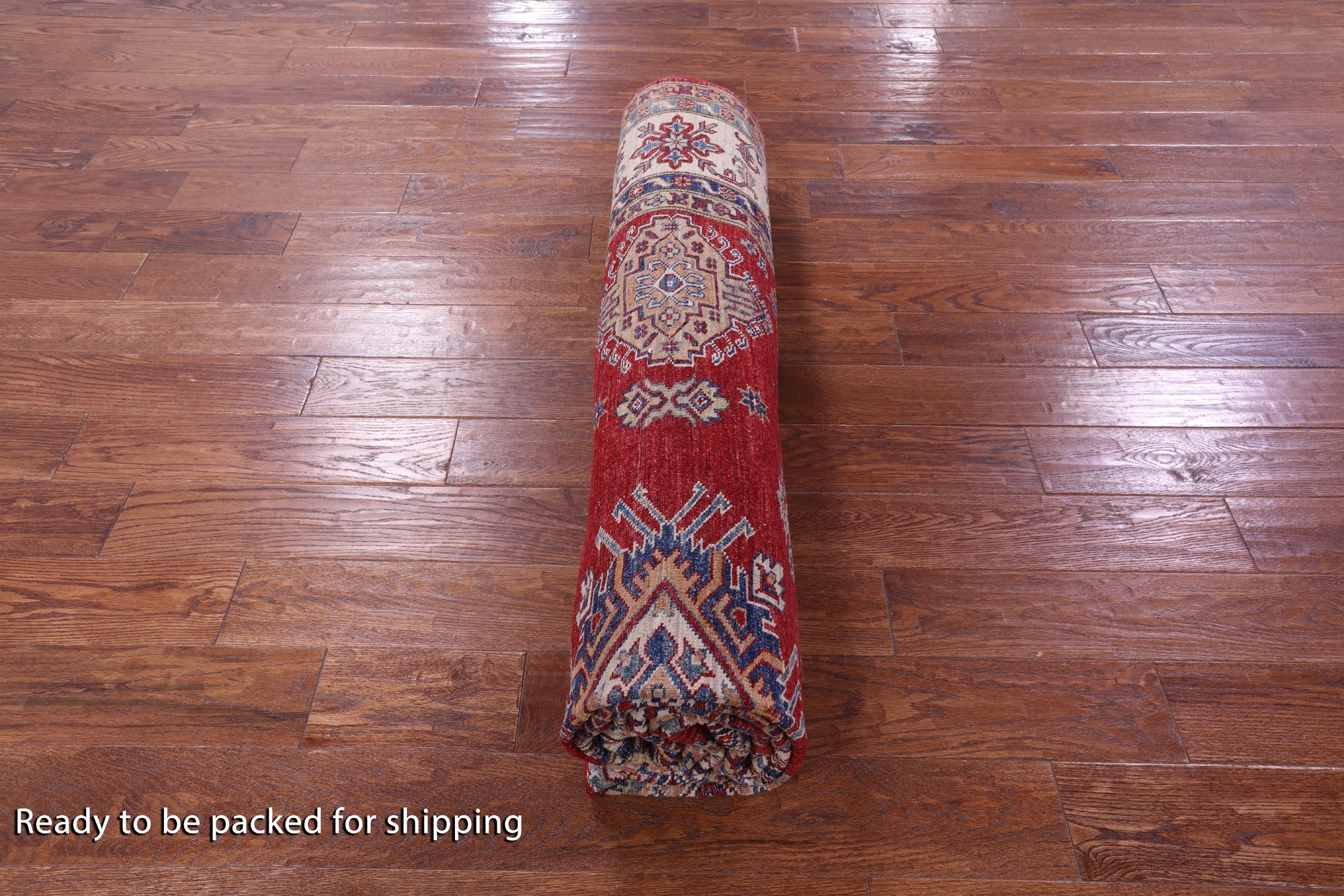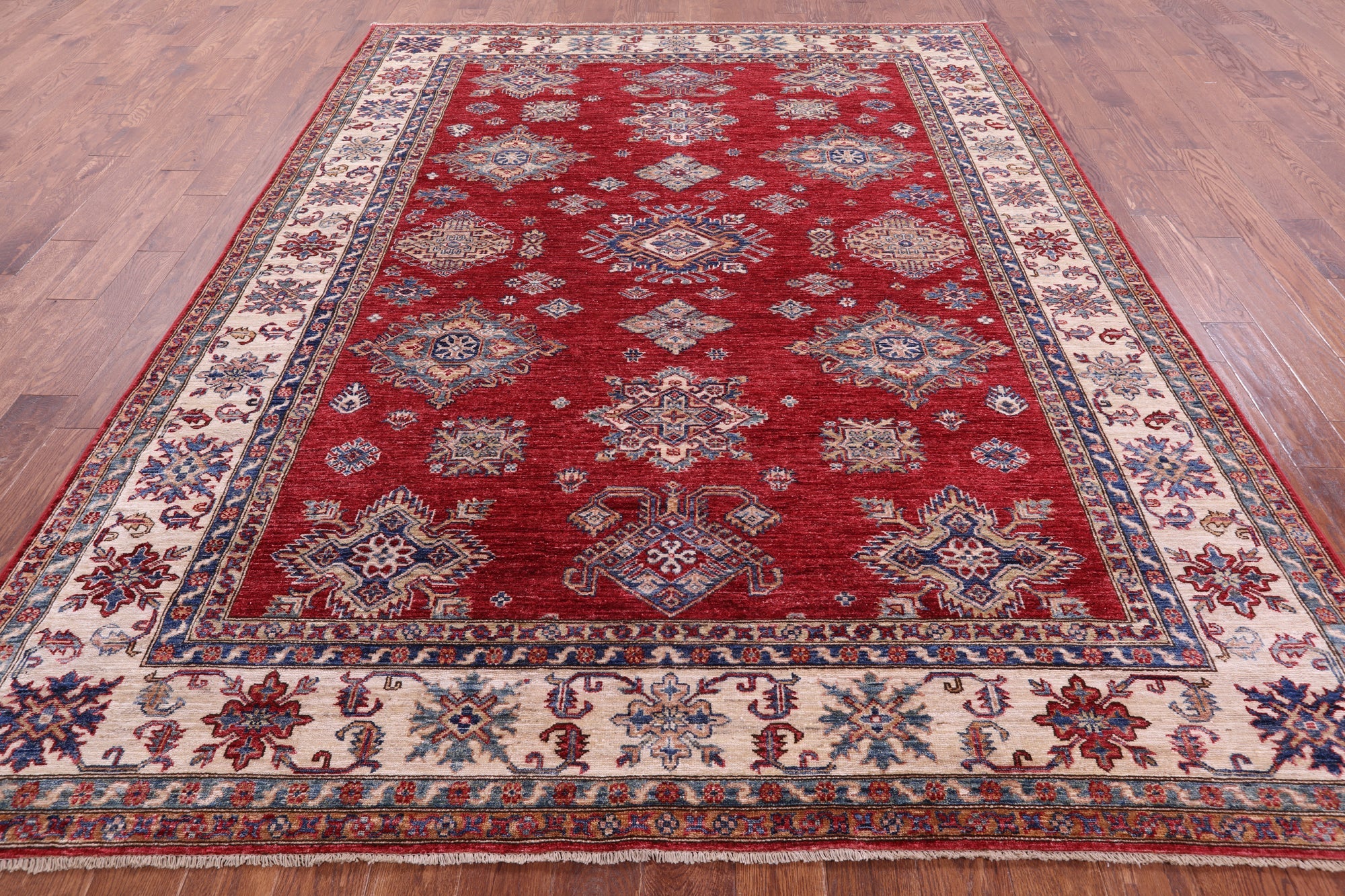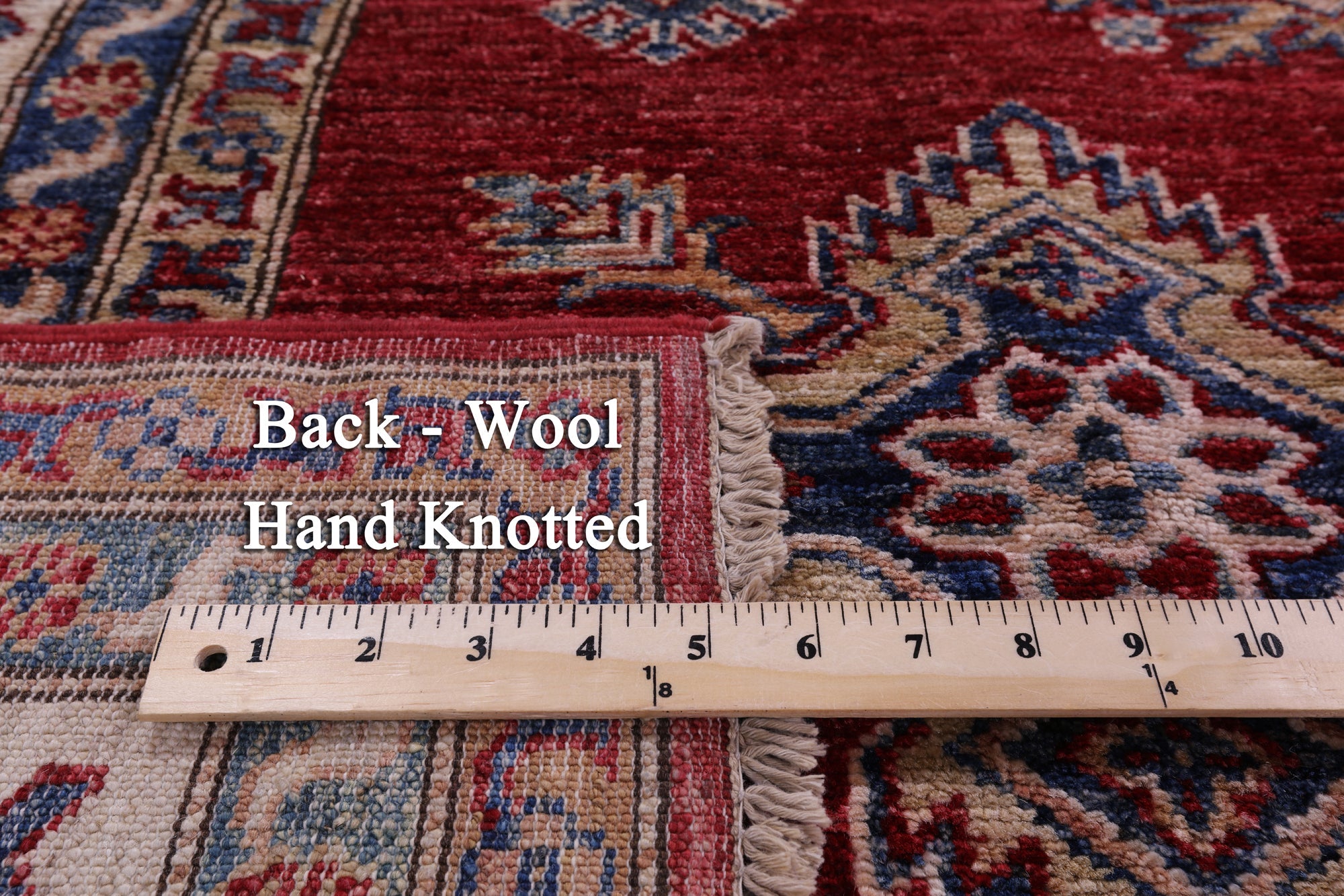 Red 7' 11" X 10' 0" Super Kazak Hand Knotted Wool Rug - Q18241 is backordered and will ship as soon as it is back in stock.