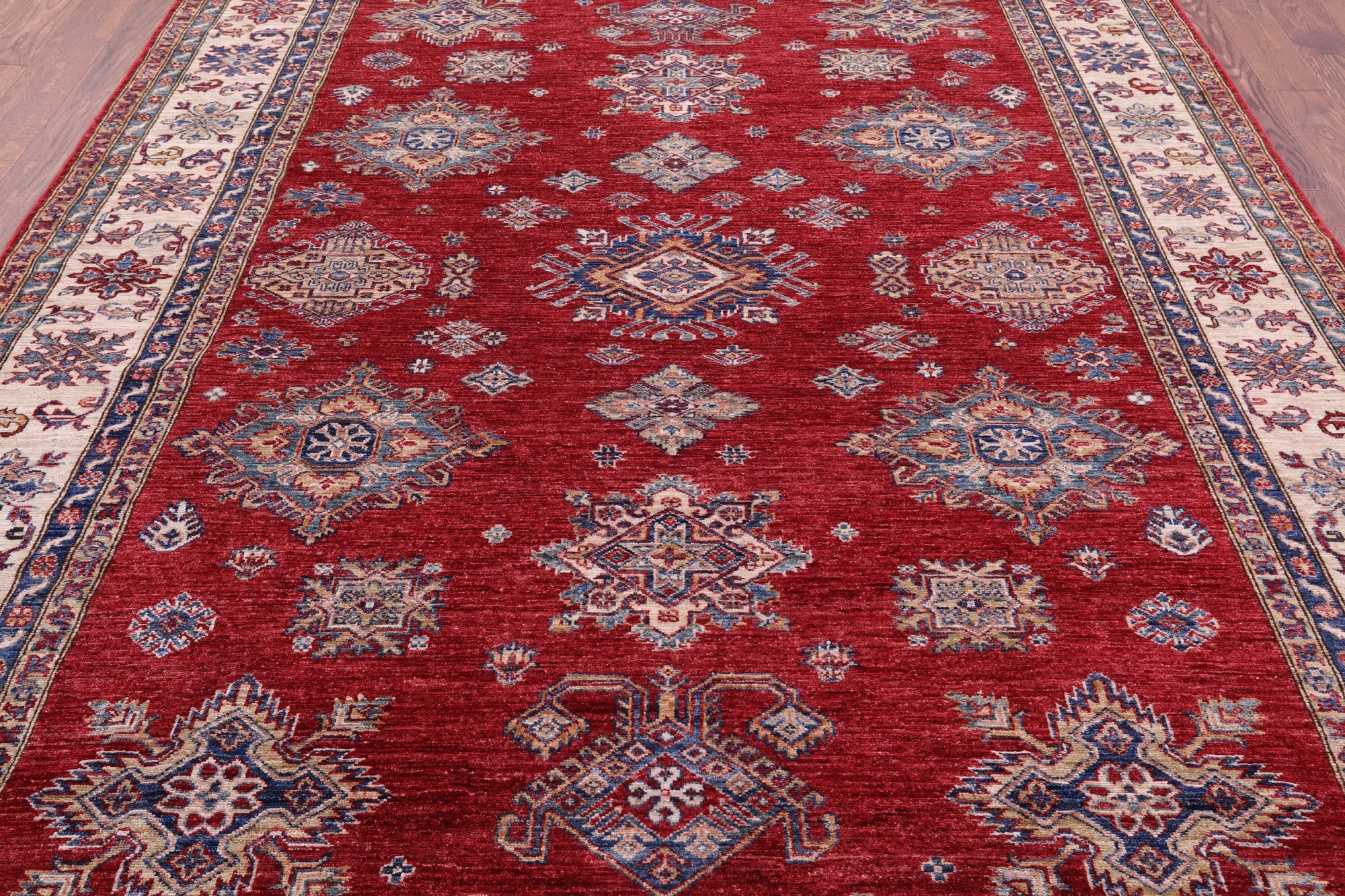 Super Kazak rugs were woven in the south of Caucasus and are very regional in their designs. Super Kazak rugs are very traditional in look and the patterns can vary from geometric shapes, tribal designs like people and animals, and symbolic medallions. They are beautifully intricate and heavy in design. These rugs come in varieties of rich, warm, jewel tones that can liven up any space.