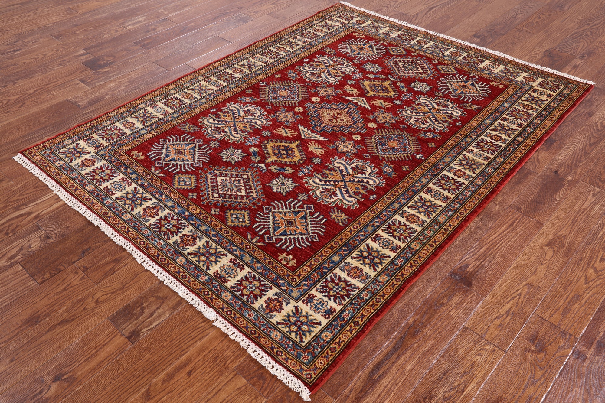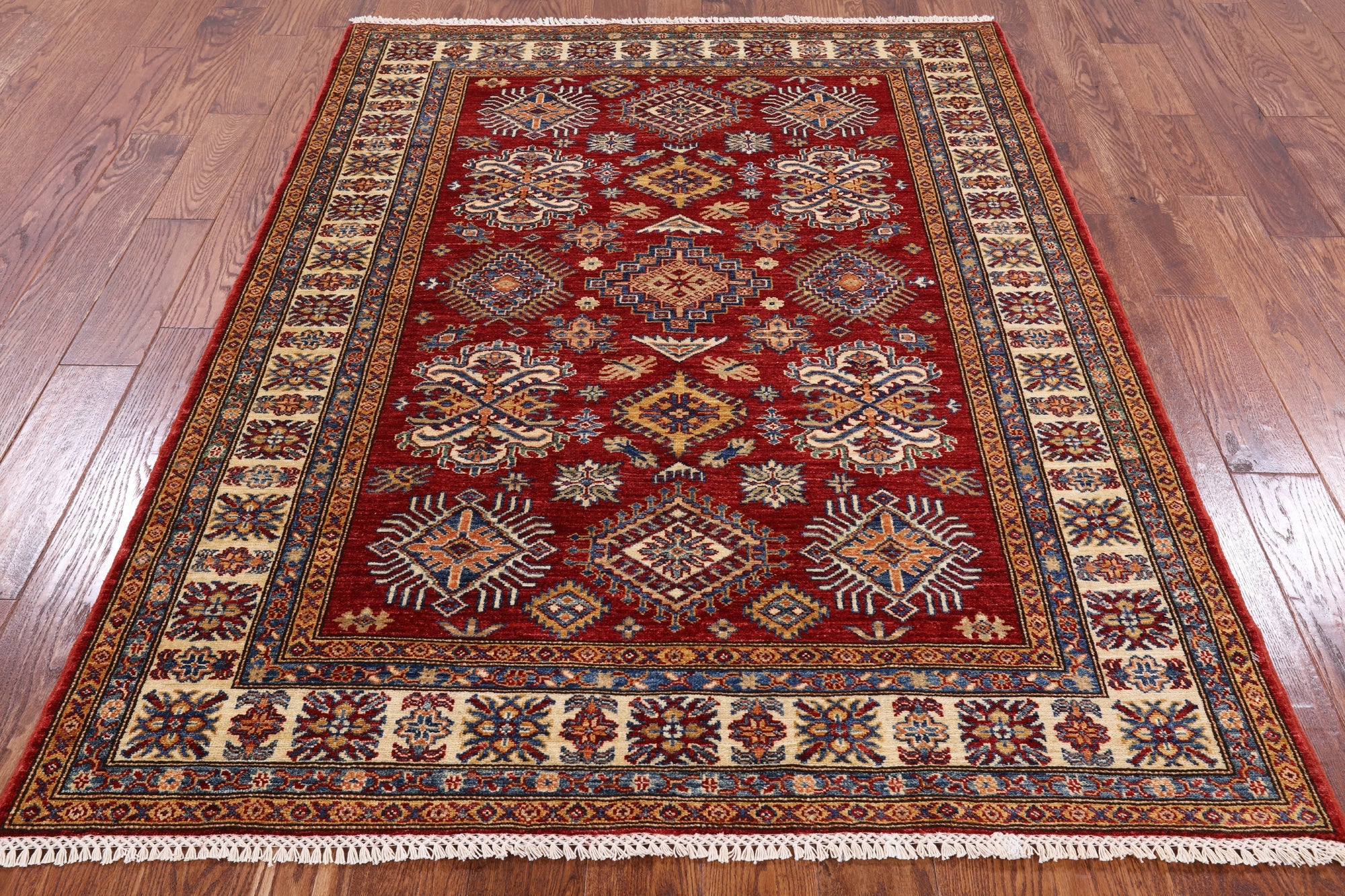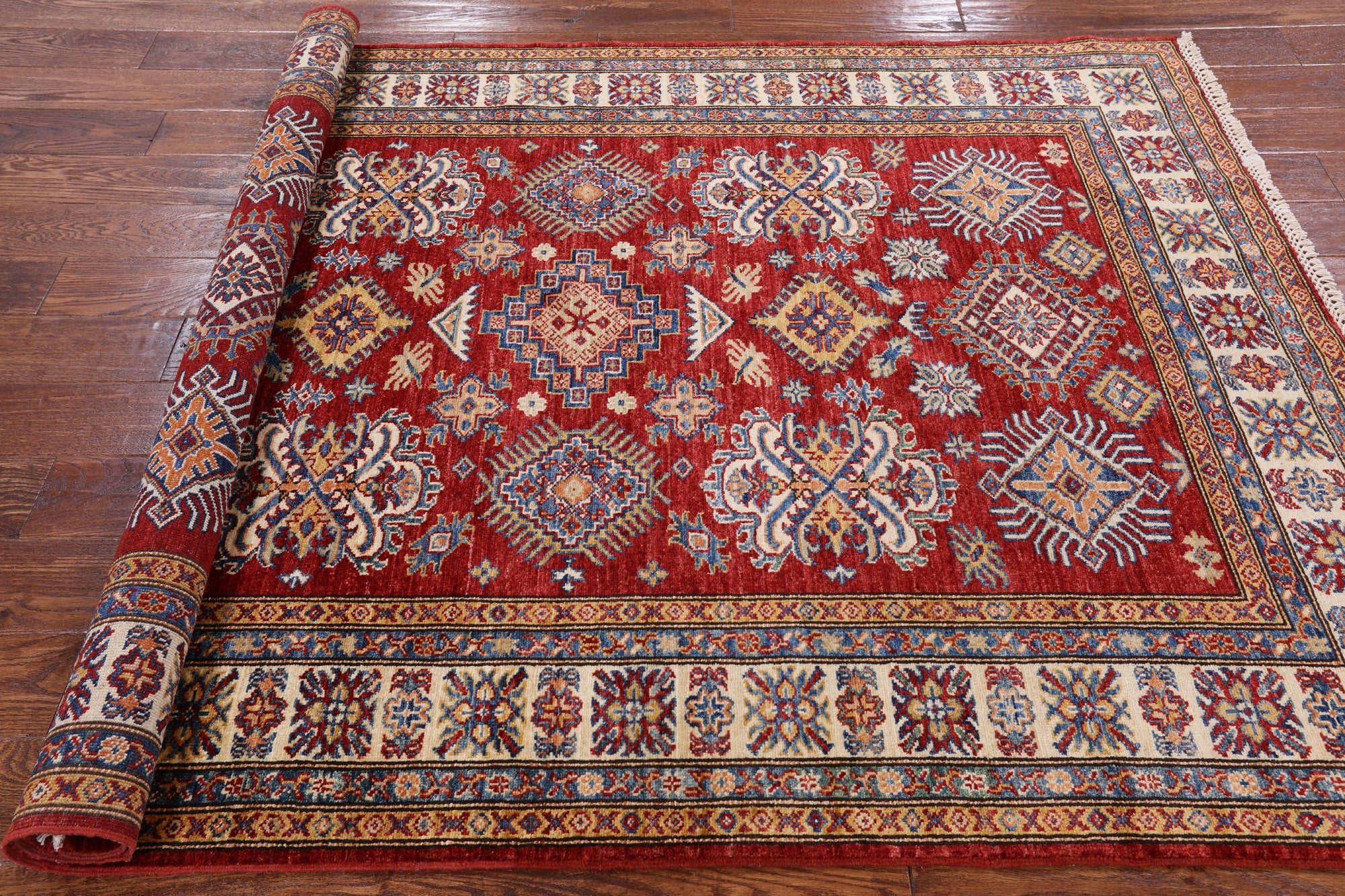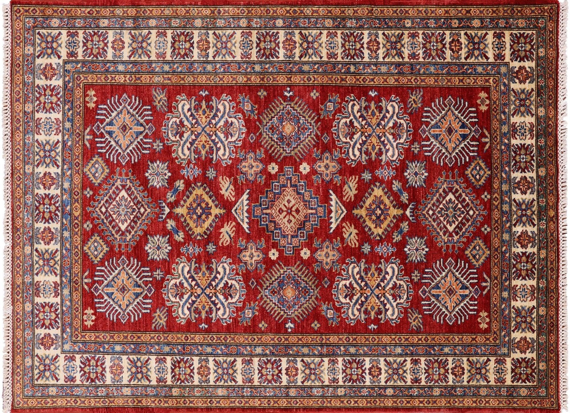 Red 4' 11" X 6' 7" Super Kazak Handmade Rug - P9026